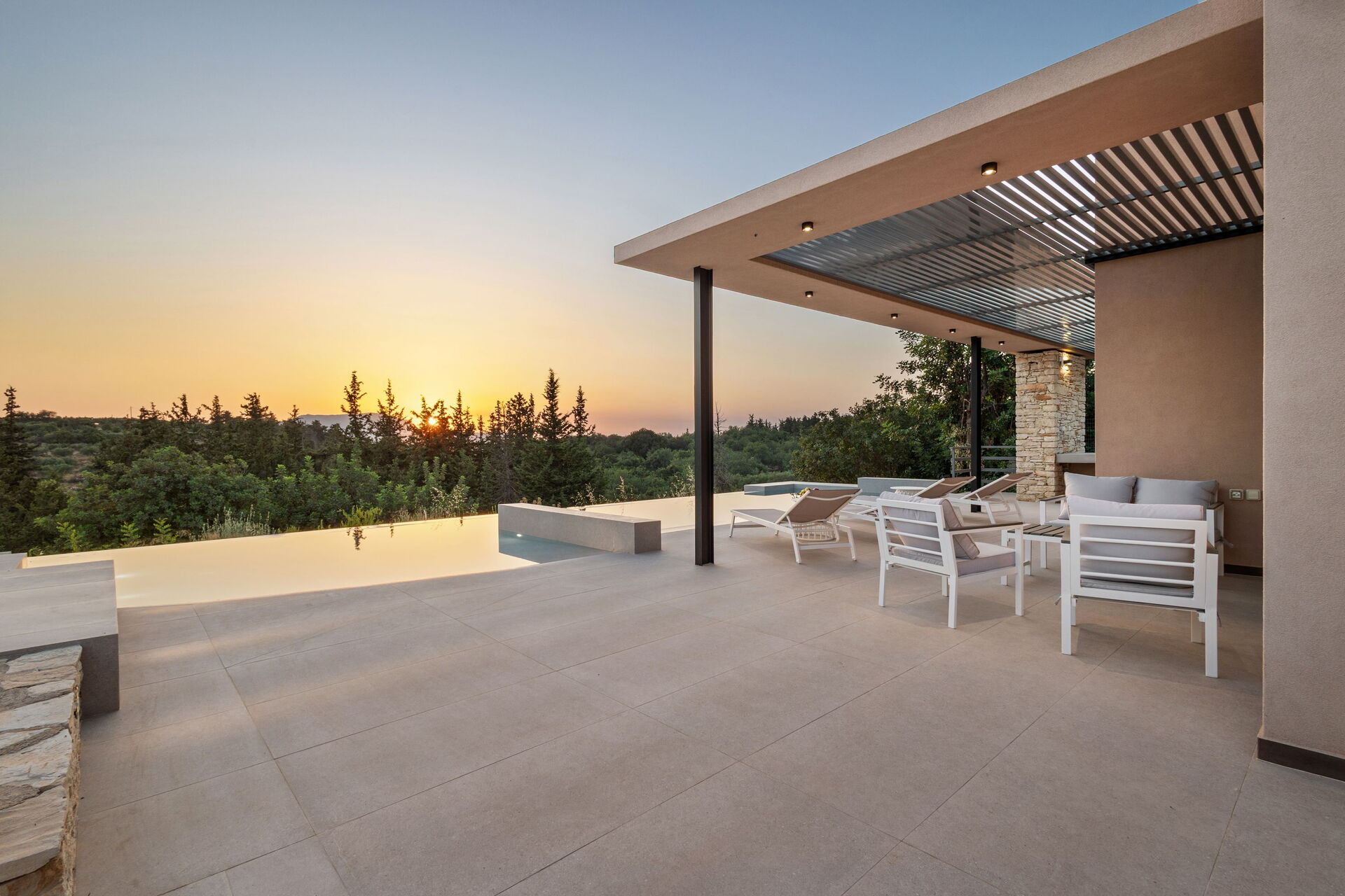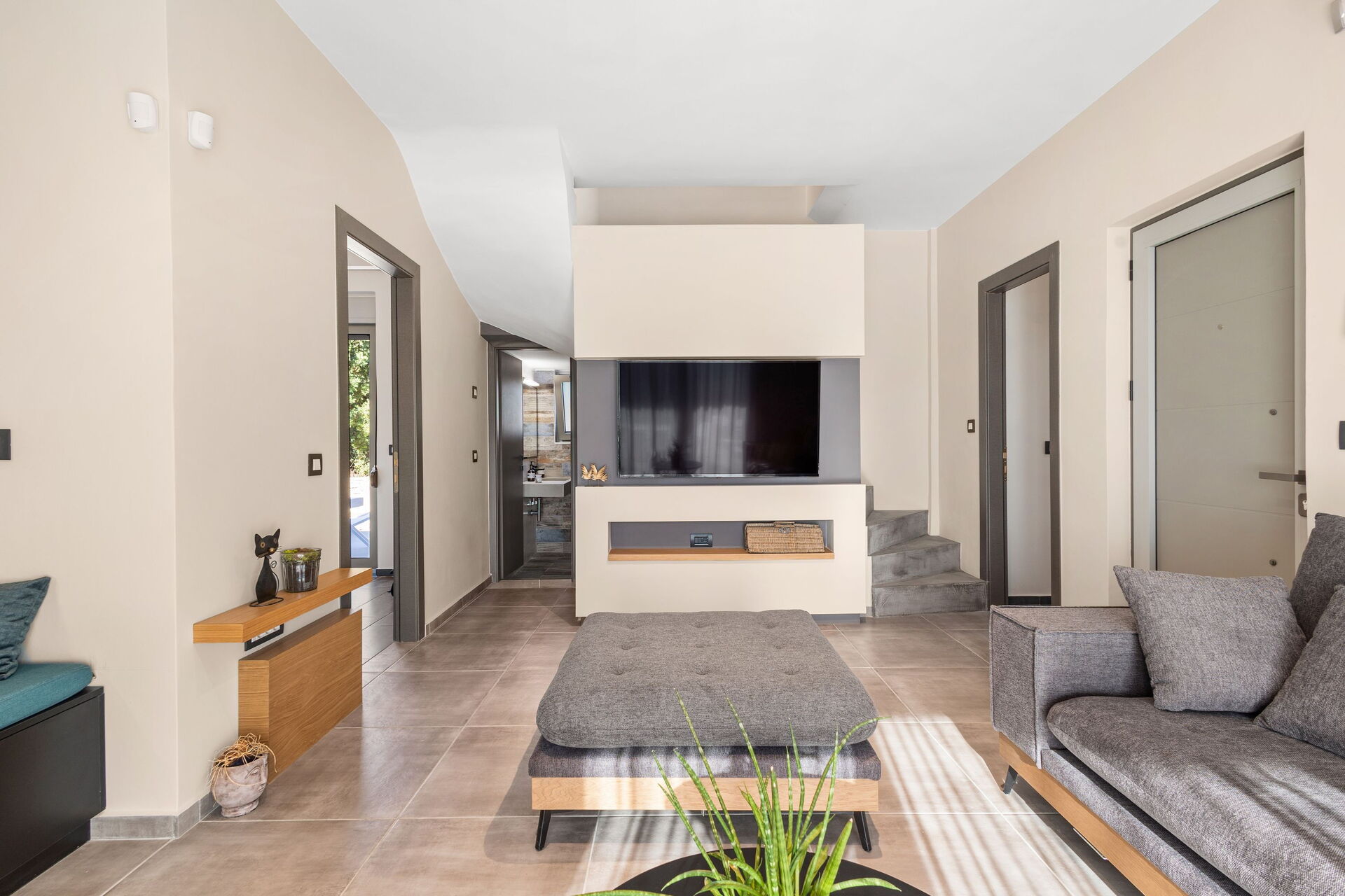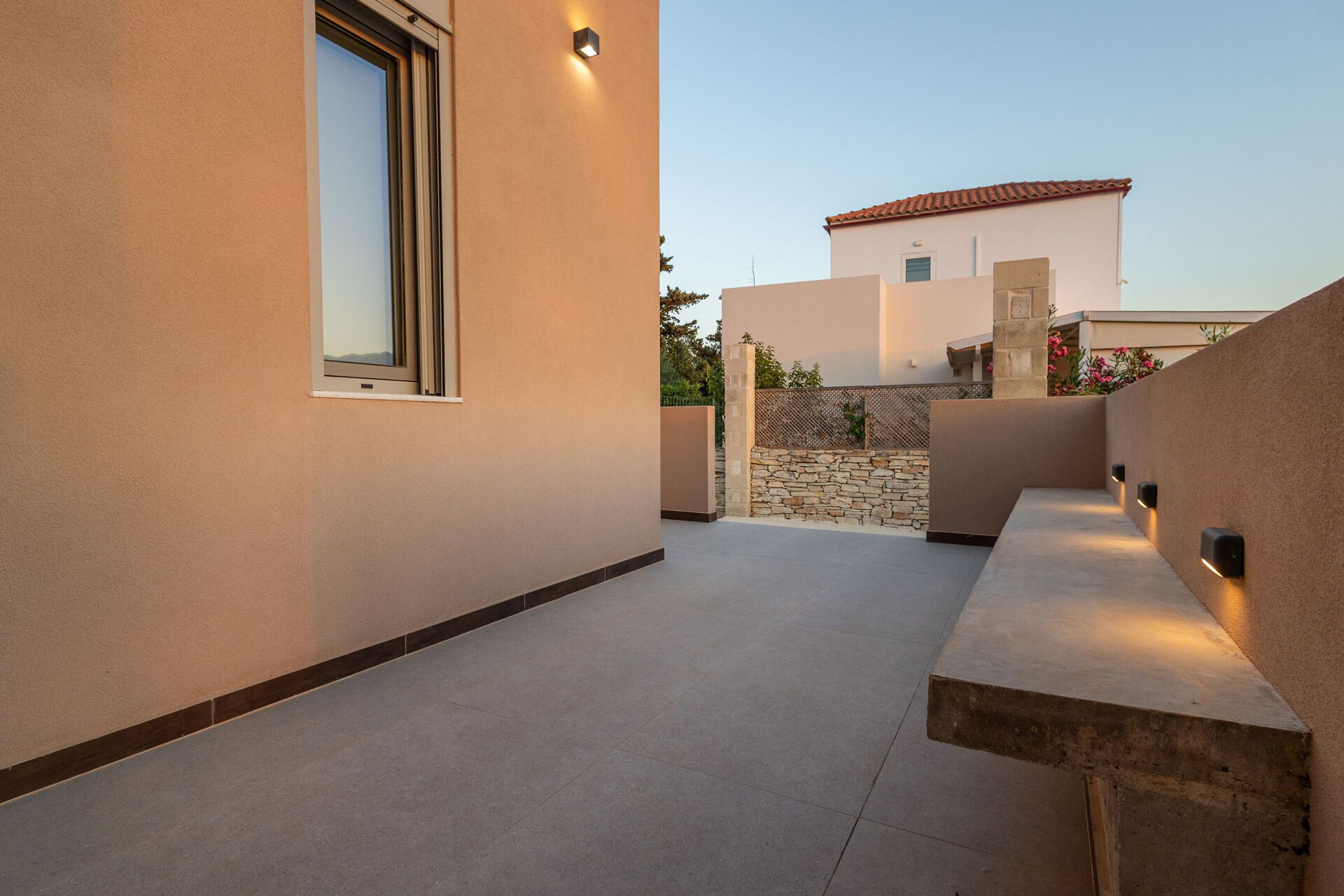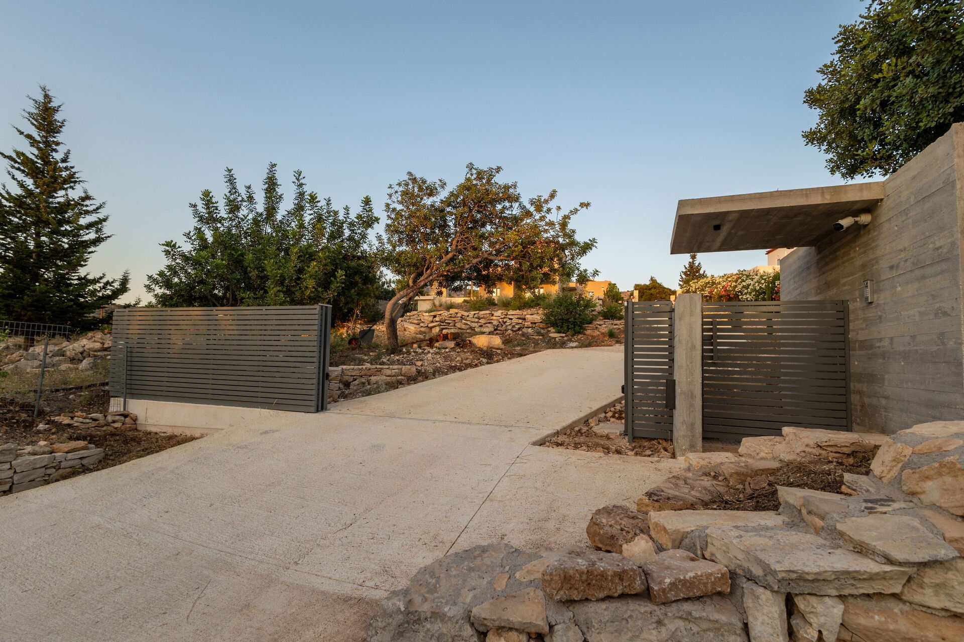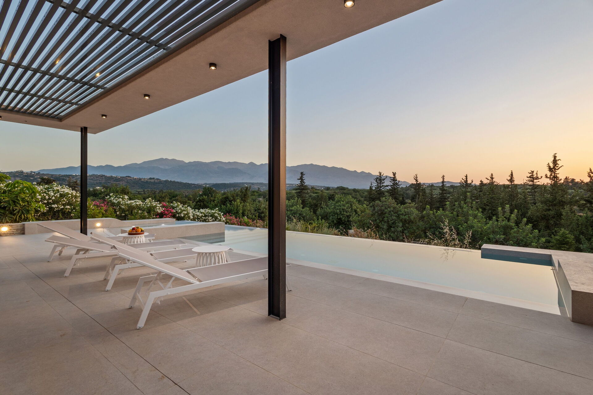 Im Außenbereich bietet sie einen Panorama-Bereich mit Grill und Esstisch für Mahlzeiten im Freien sowie einen wunderschönen privaten Pool, um sich an sonnigen kretischen Sommertagen abzukühlen. Ein herrlicher Panoramablick auf die umliegende Landschaft wird Ihre Tage verschönern: Olivenhaine, Zypressen und mediterrane Macchia bilden den Rahmen für unvergessliche Momente unter der Sonne Griechenlands.