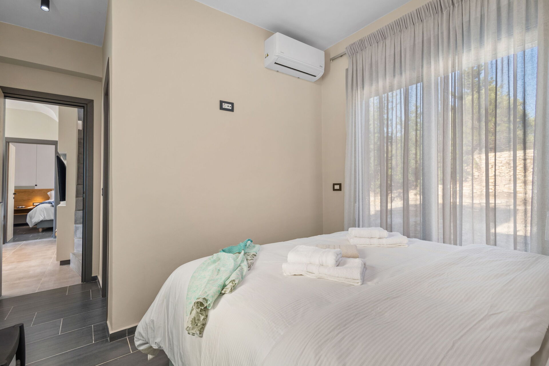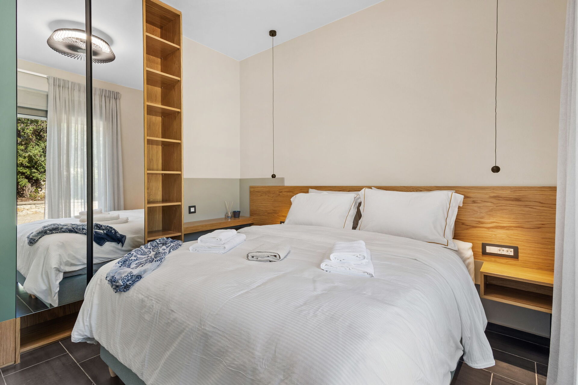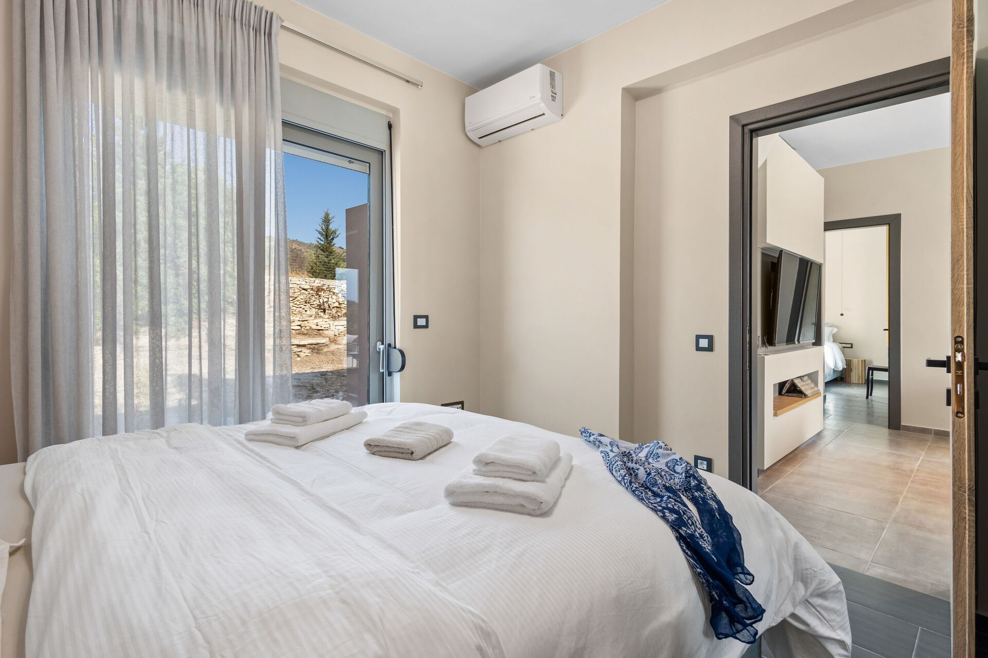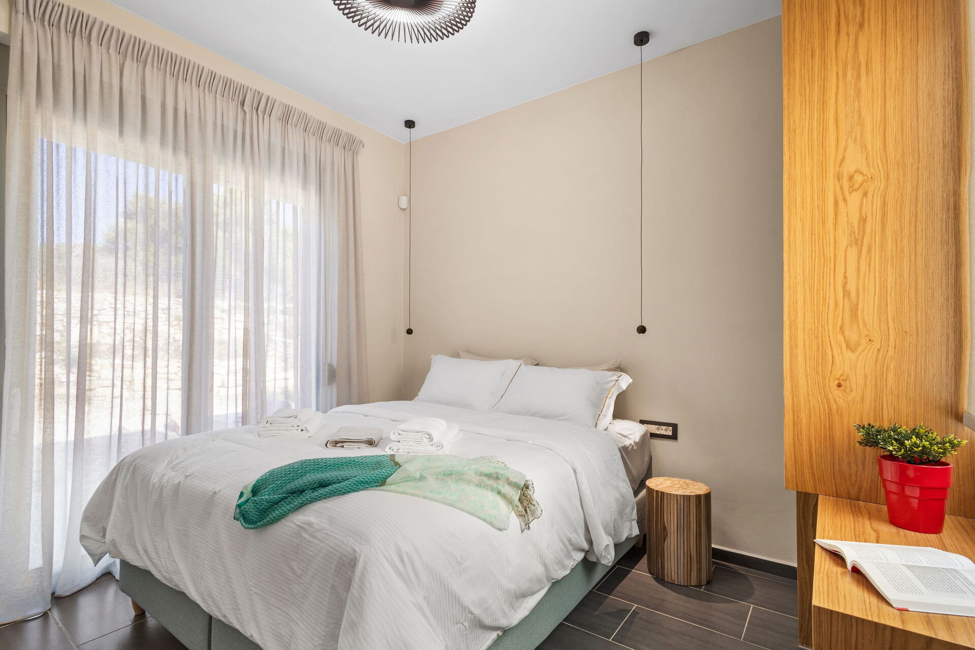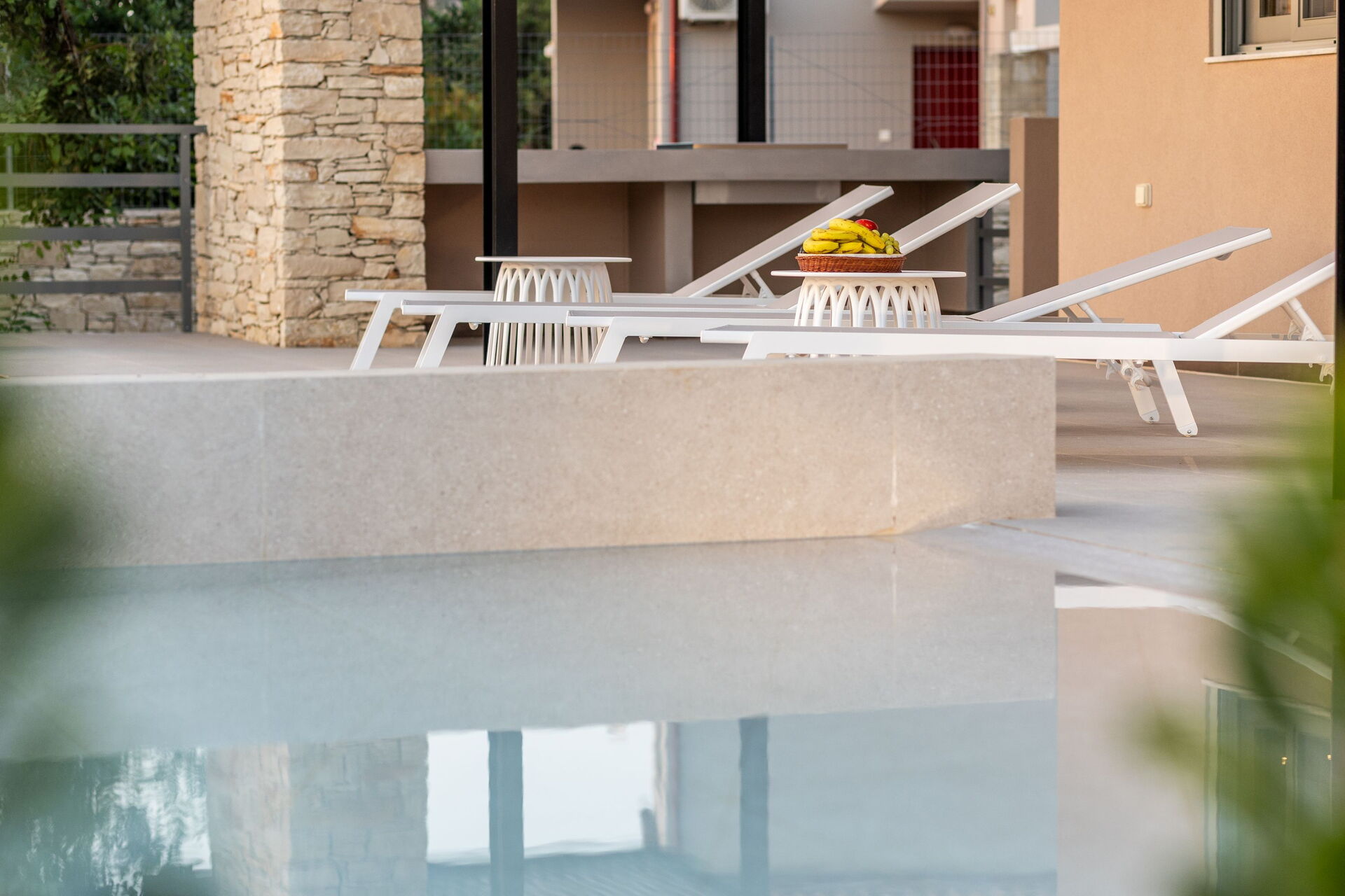 Im Außenbereich bietet sie einen Panorama-Bereich mit Grill und Esstisch für Mahlzeiten im Freien sowie einen wunderschönen privaten Pool, um sich an sonnigen kretischen Sommertagen abzukühlen. Ein herrlicher Panoramablick auf die umliegende Landschaft wird Ihre Tage verschönern: Olivenhaine, Zypressen und mediterrane Macchia bilden den Rahmen für unvergessliche Momente unter der Sonne Griechenlands.