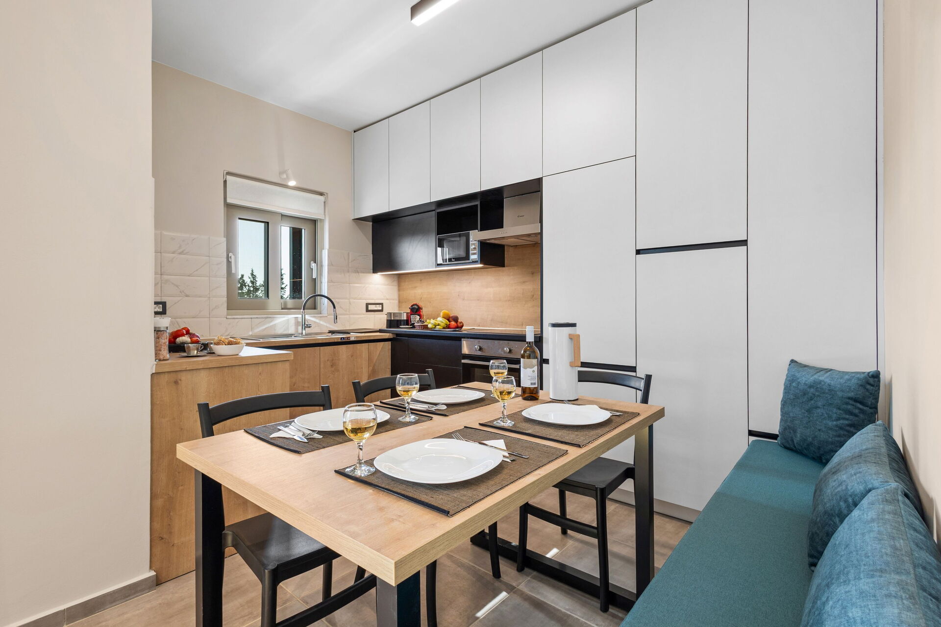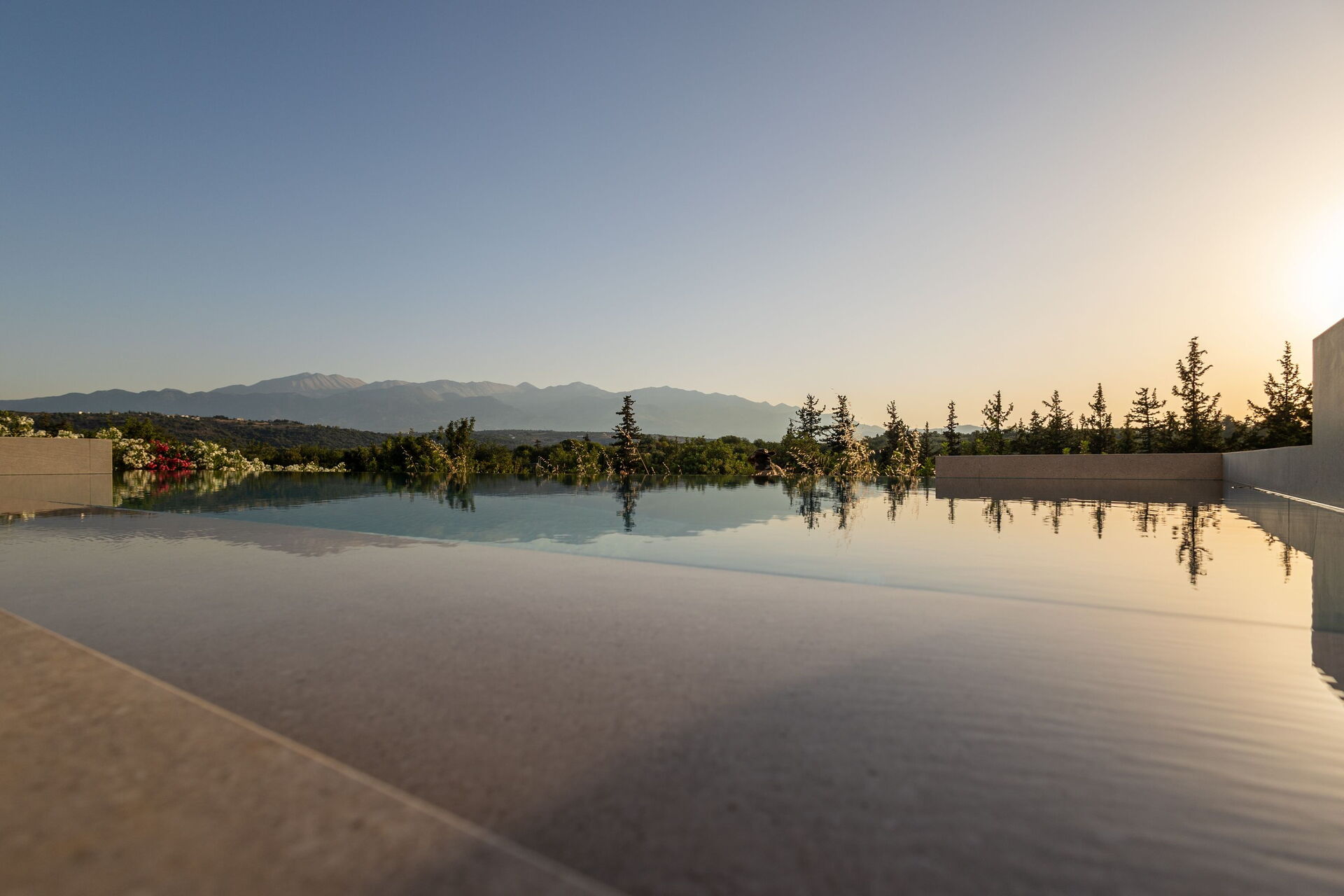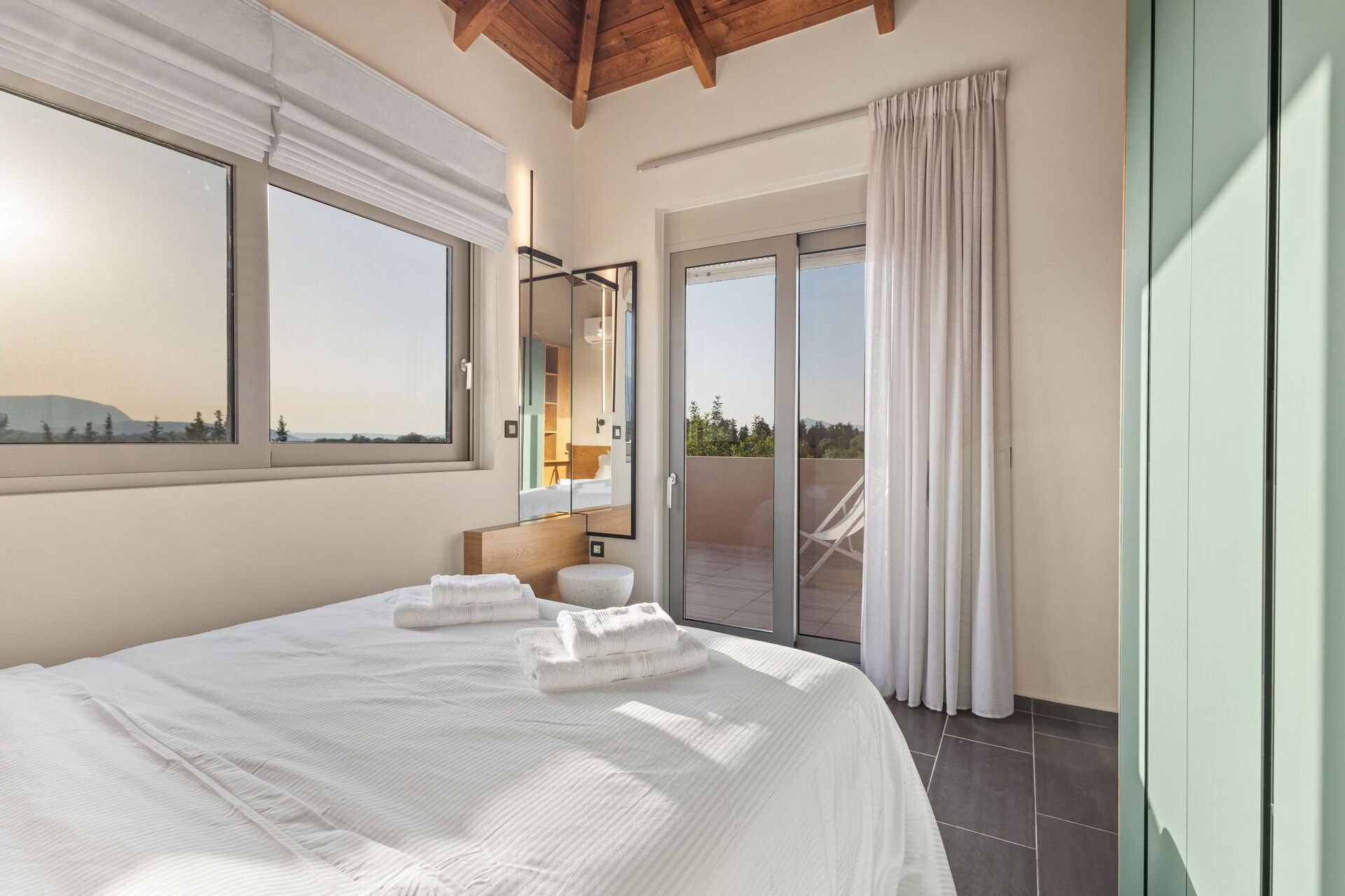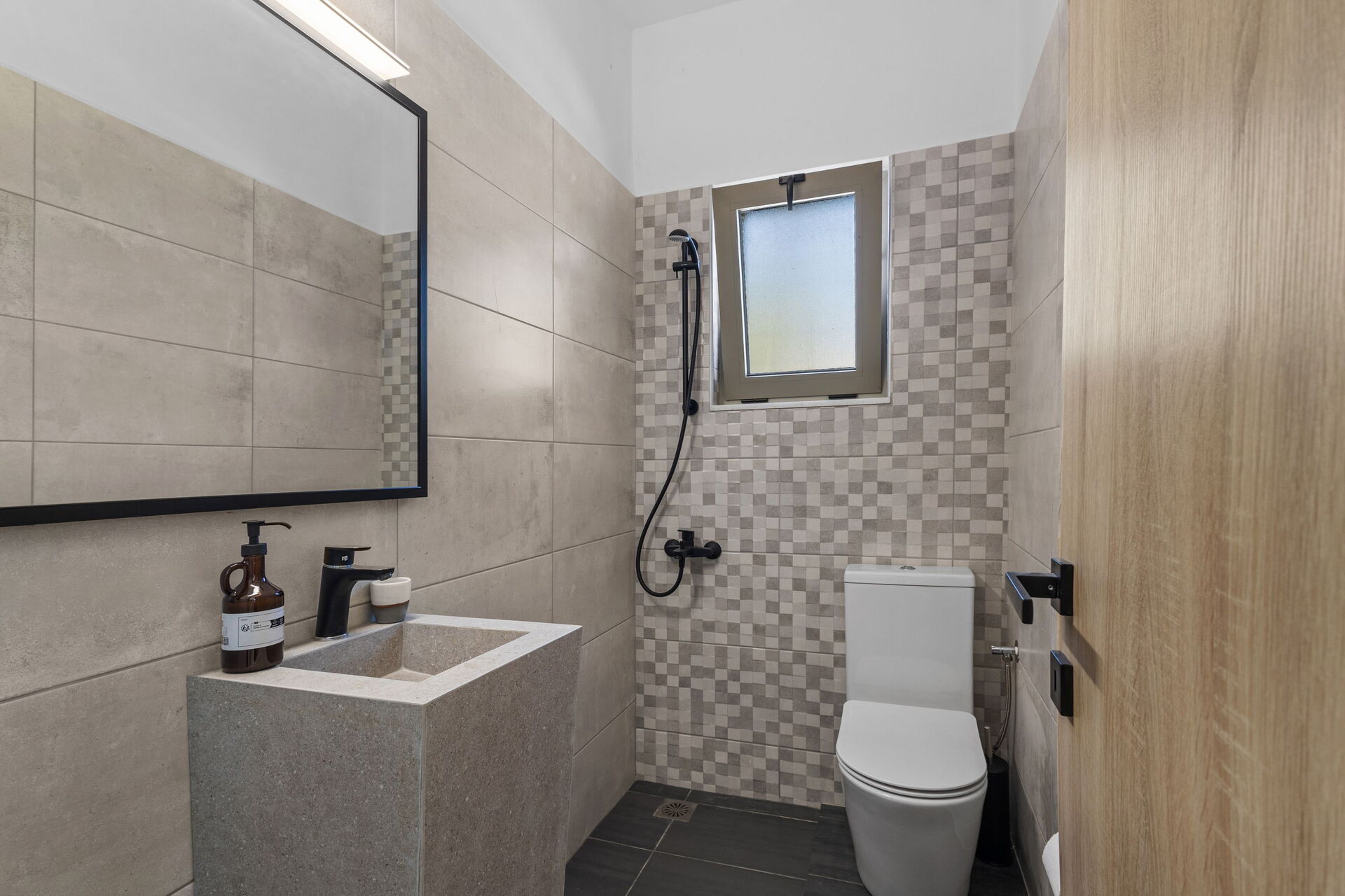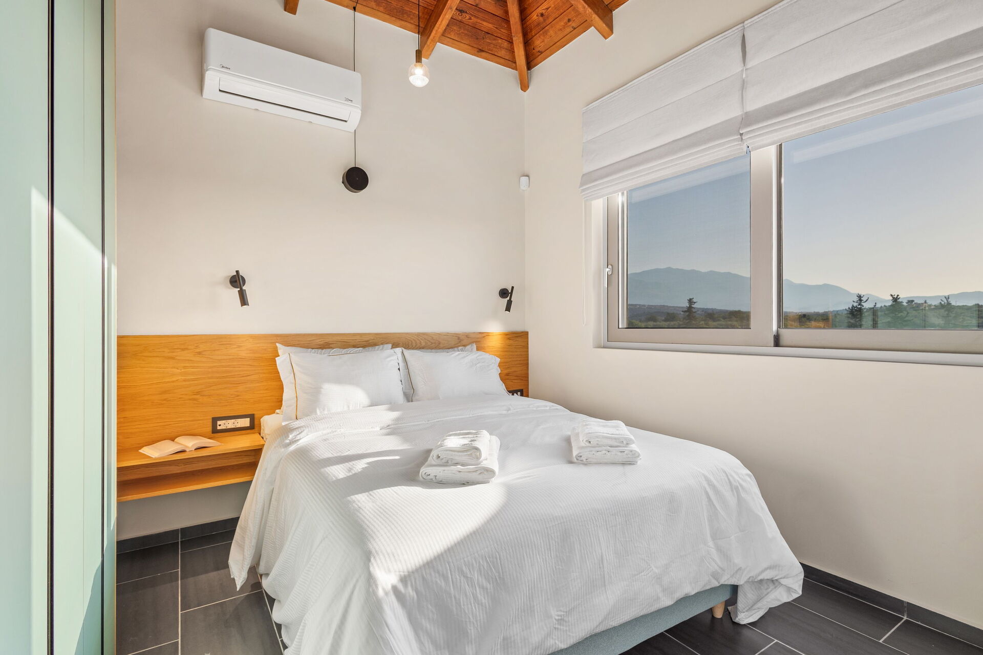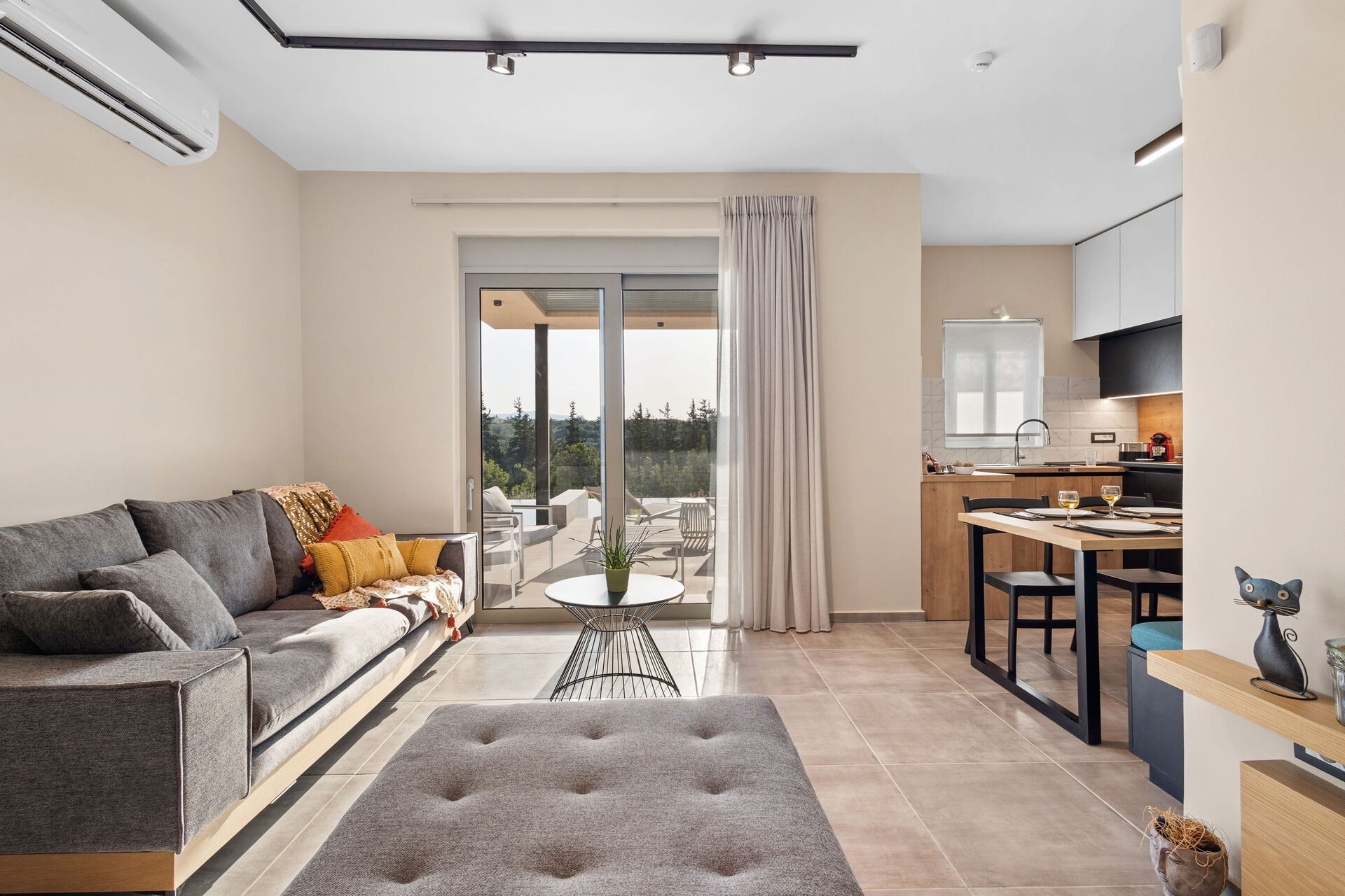 Im Außenbereich bietet sie einen Panorama-Bereich mit Grill und Esstisch für Mahlzeiten im Freien sowie einen wunderschönen privaten Pool, um sich an sonnigen kretischen Sommertagen abzukühlen. Ein herrlicher Panoramablick auf die umliegende Landschaft wird Ihre Tage verschönern: Olivenhaine, Zypressen und mediterrane Macchia bilden den Rahmen für unvergessliche Momente unter der Sonne Griechenlands.