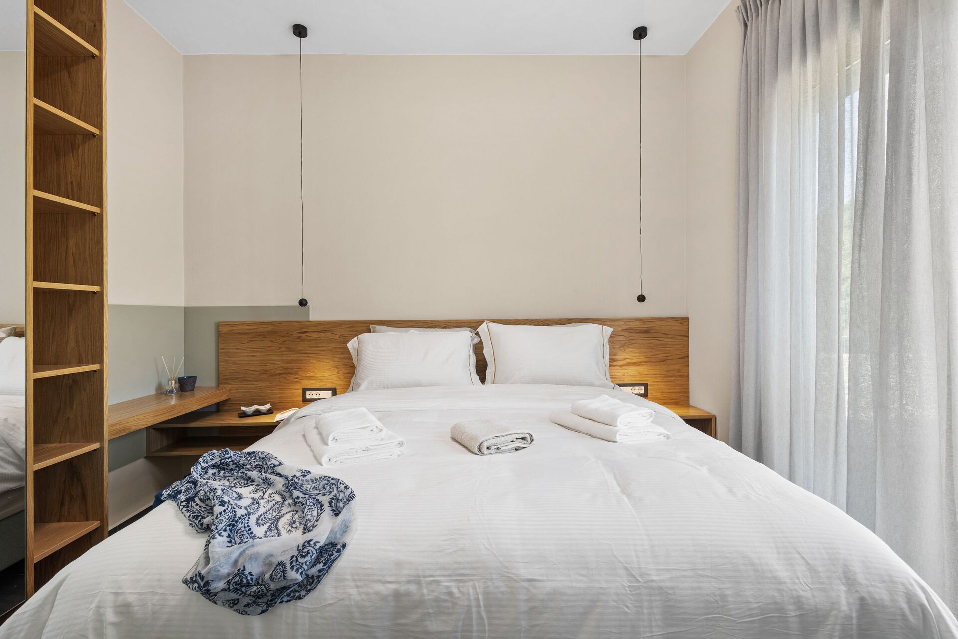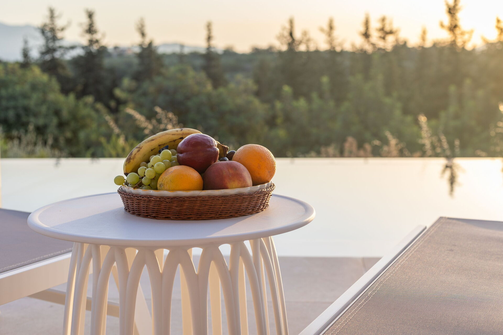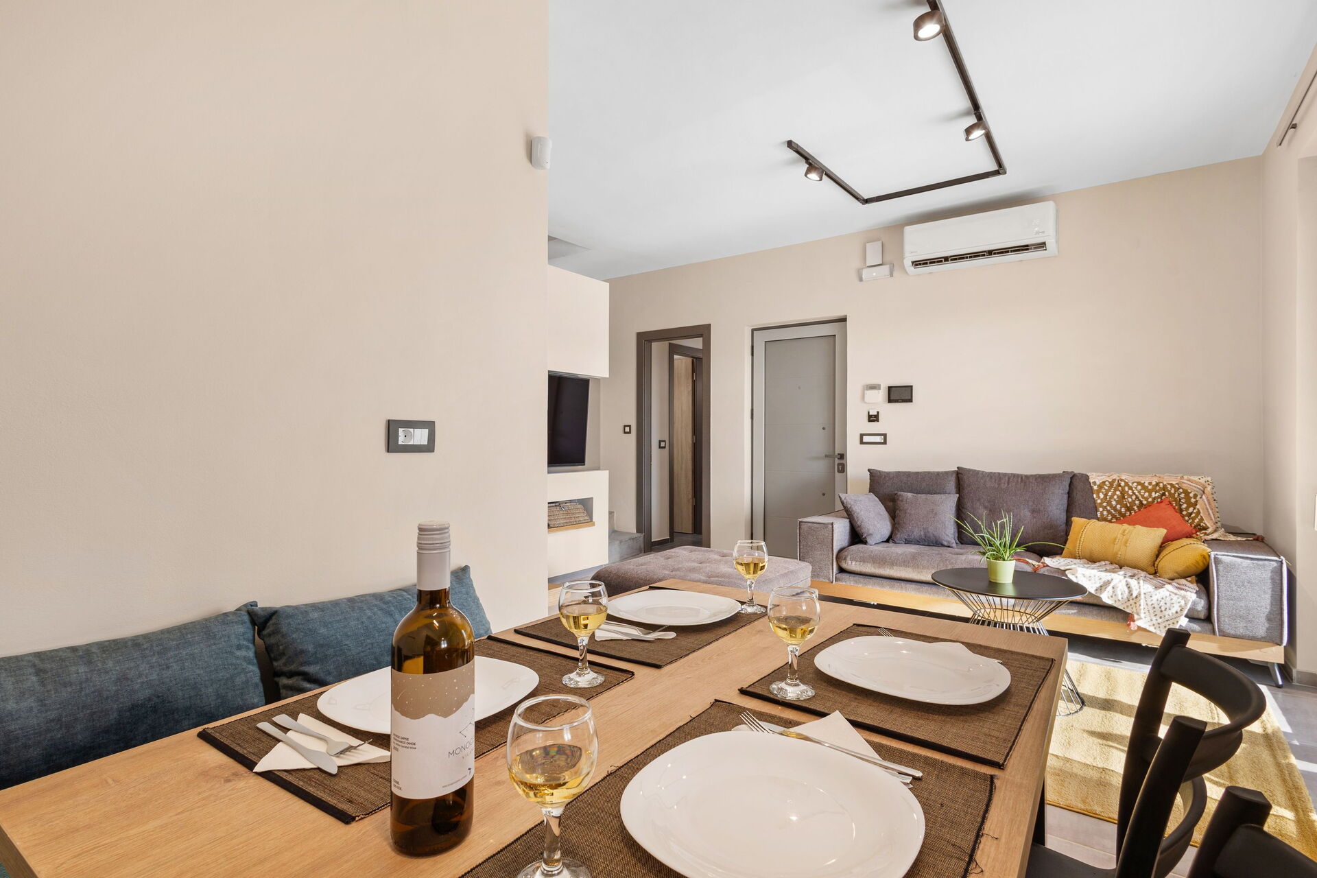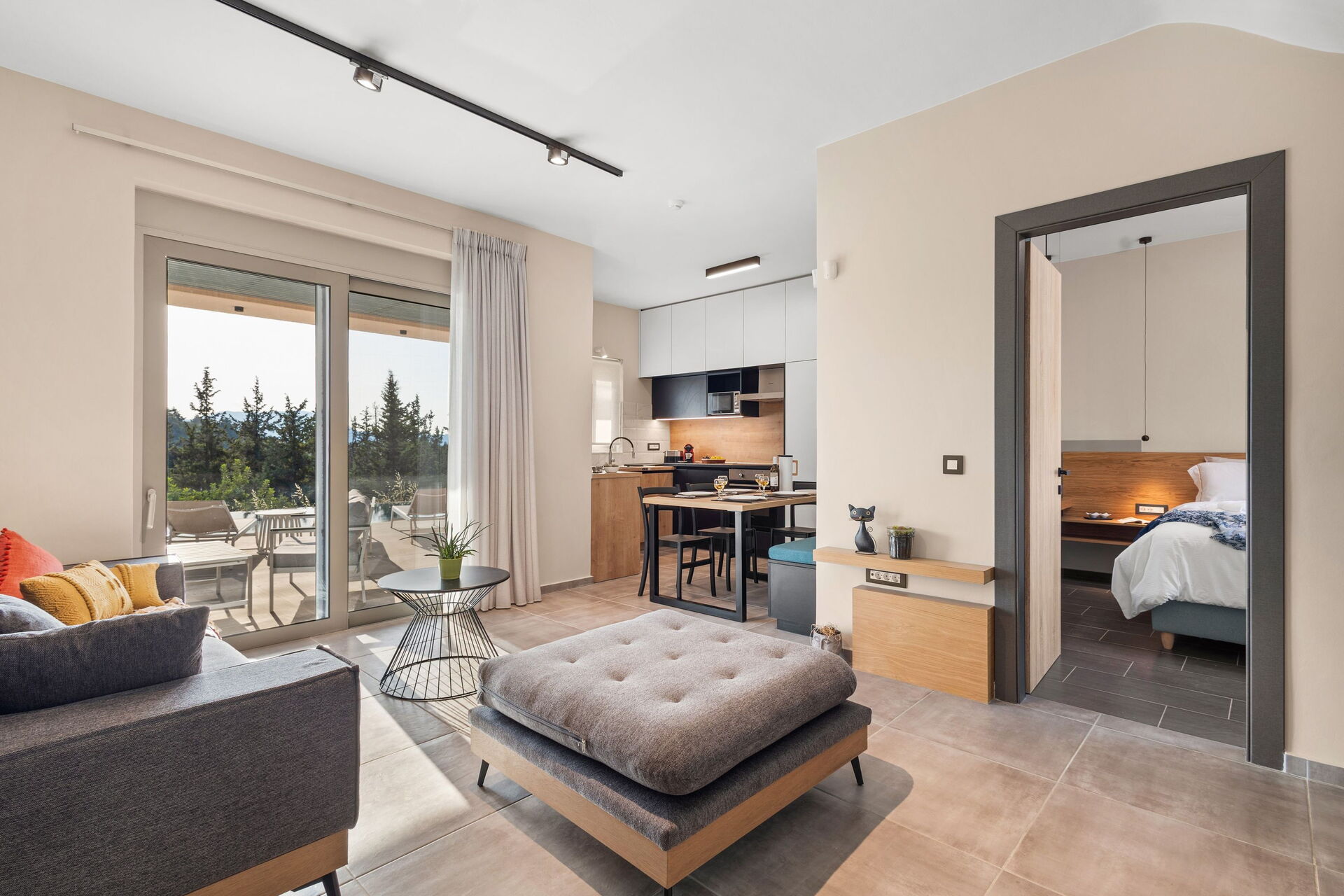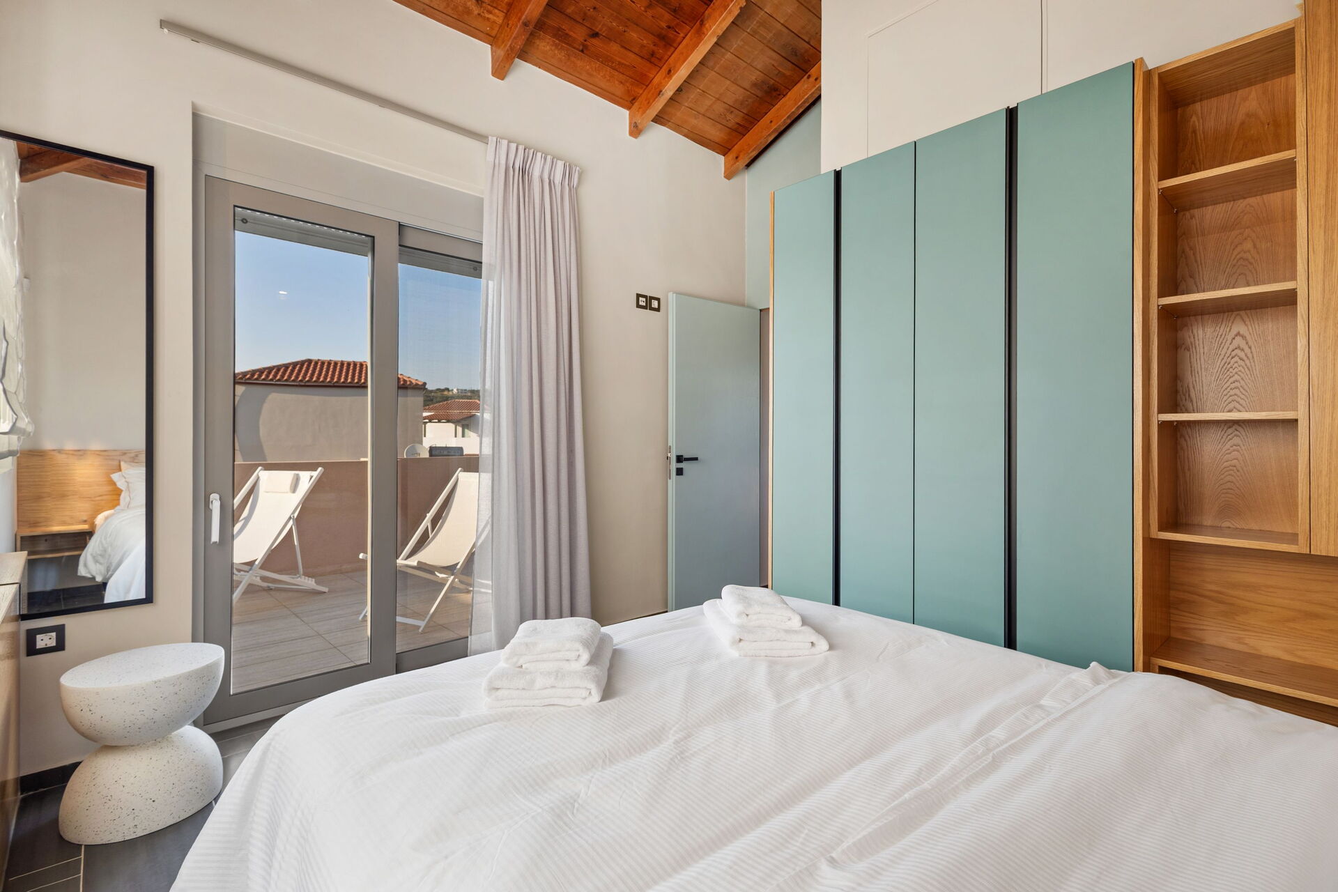 Im Außenbereich bietet sie einen Panorama-Bereich mit Grill und Esstisch für Mahlzeiten im Freien sowie einen wunderschönen privaten Pool, um sich an sonnigen kretischen Sommertagen abzukühlen. Ein herrlicher Panoramablick auf die umliegende Landschaft wird Ihre Tage verschönern: Olivenhaine, Zypressen und mediterrane Macchia bilden den Rahmen für unvergessliche Momente unter der Sonne Griechenlands.