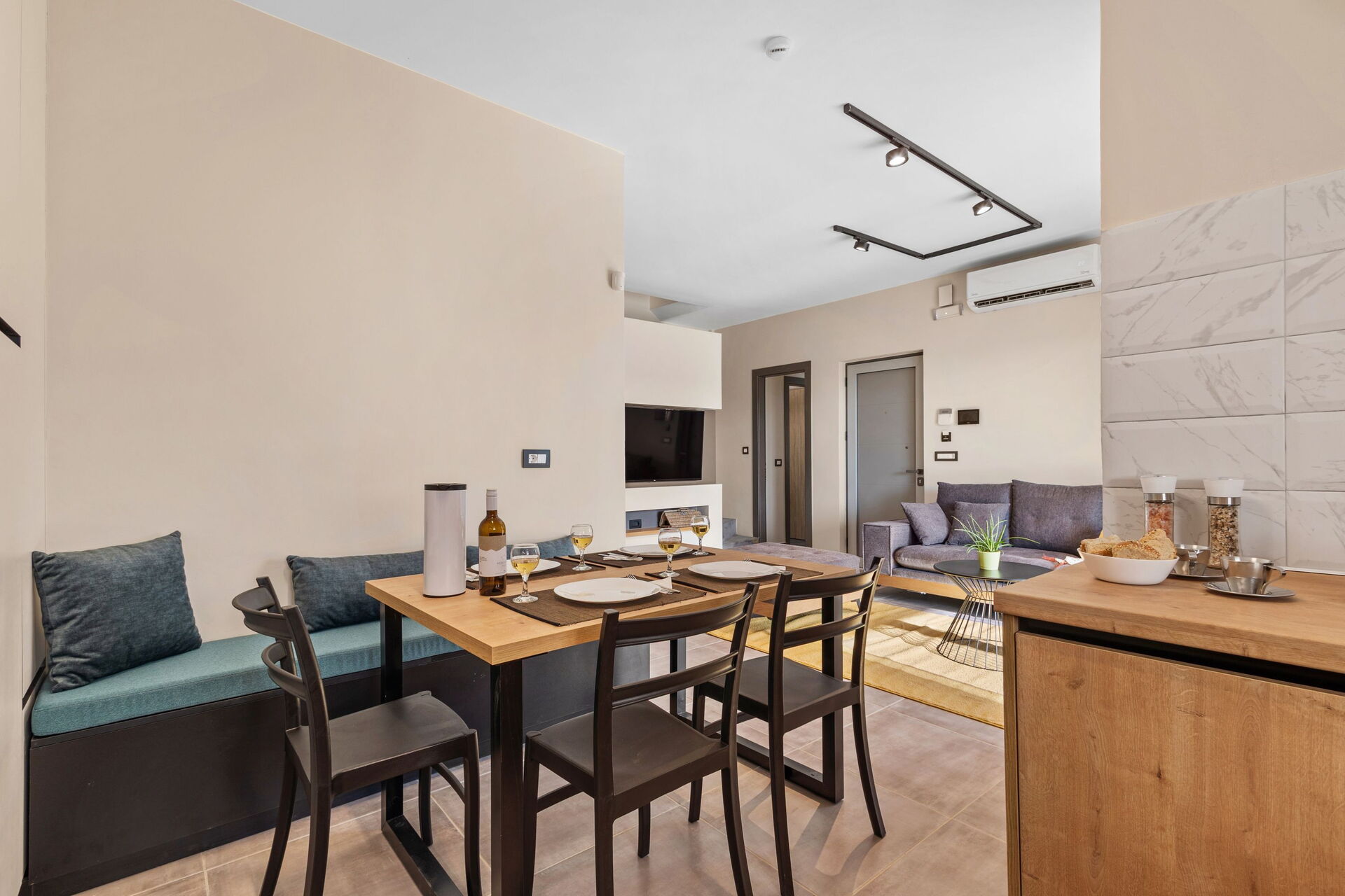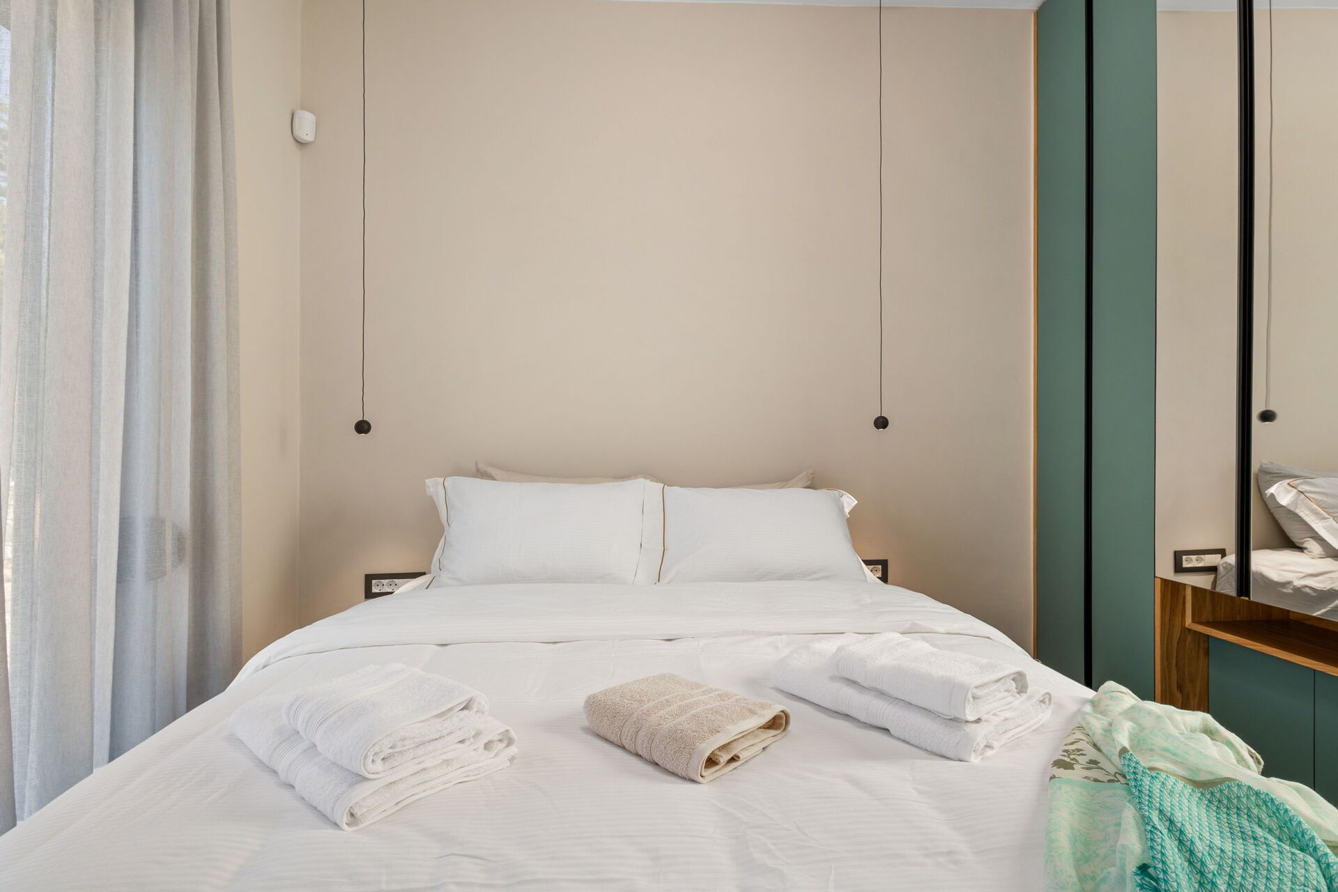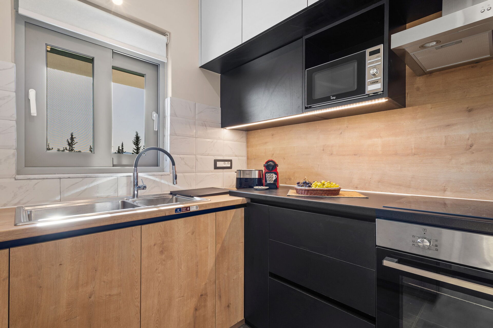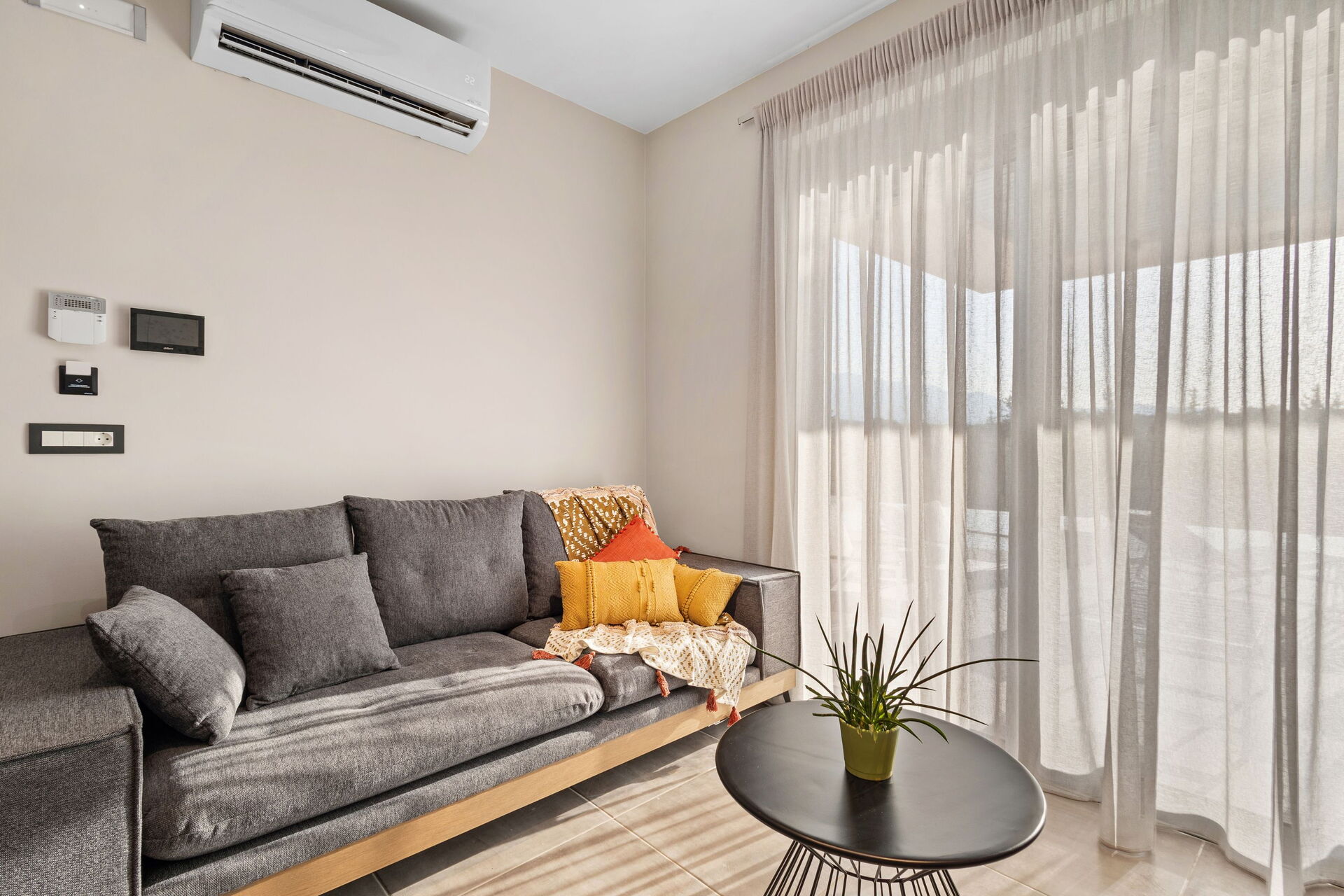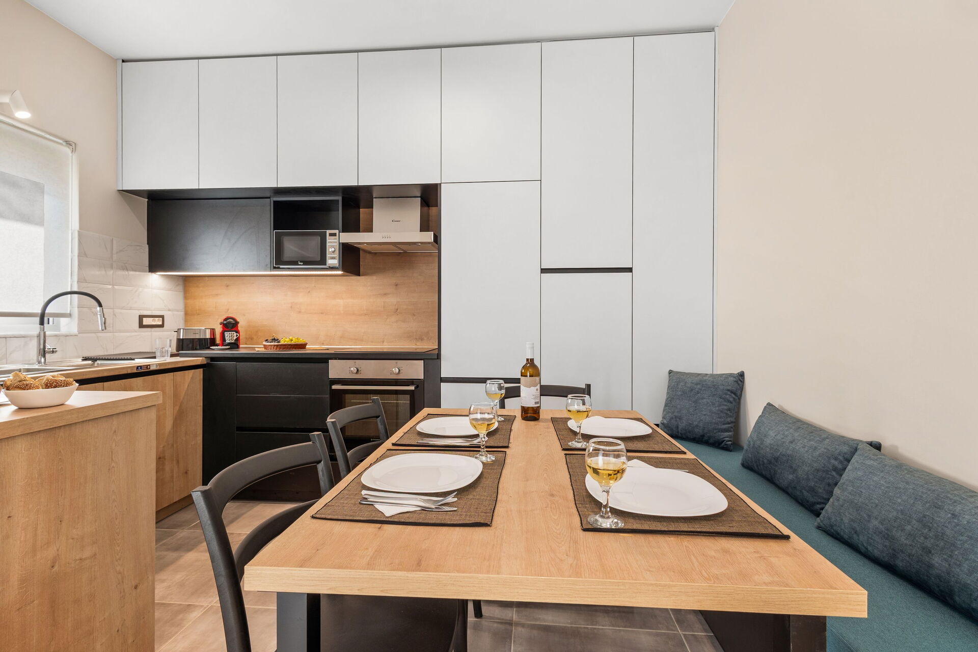 Im Außenbereich bietet sie einen Panorama-Bereich mit Grill und Esstisch für Mahlzeiten im Freien sowie einen wunderschönen privaten Pool, um sich an sonnigen kretischen Sommertagen abzukühlen. Ein herrlicher Panoramablick auf die umliegende Landschaft wird Ihre Tage verschönern: Olivenhaine, Zypressen und mediterrane Macchia bilden den Rahmen für unvergessliche Momente unter der Sonne Griechenlands.