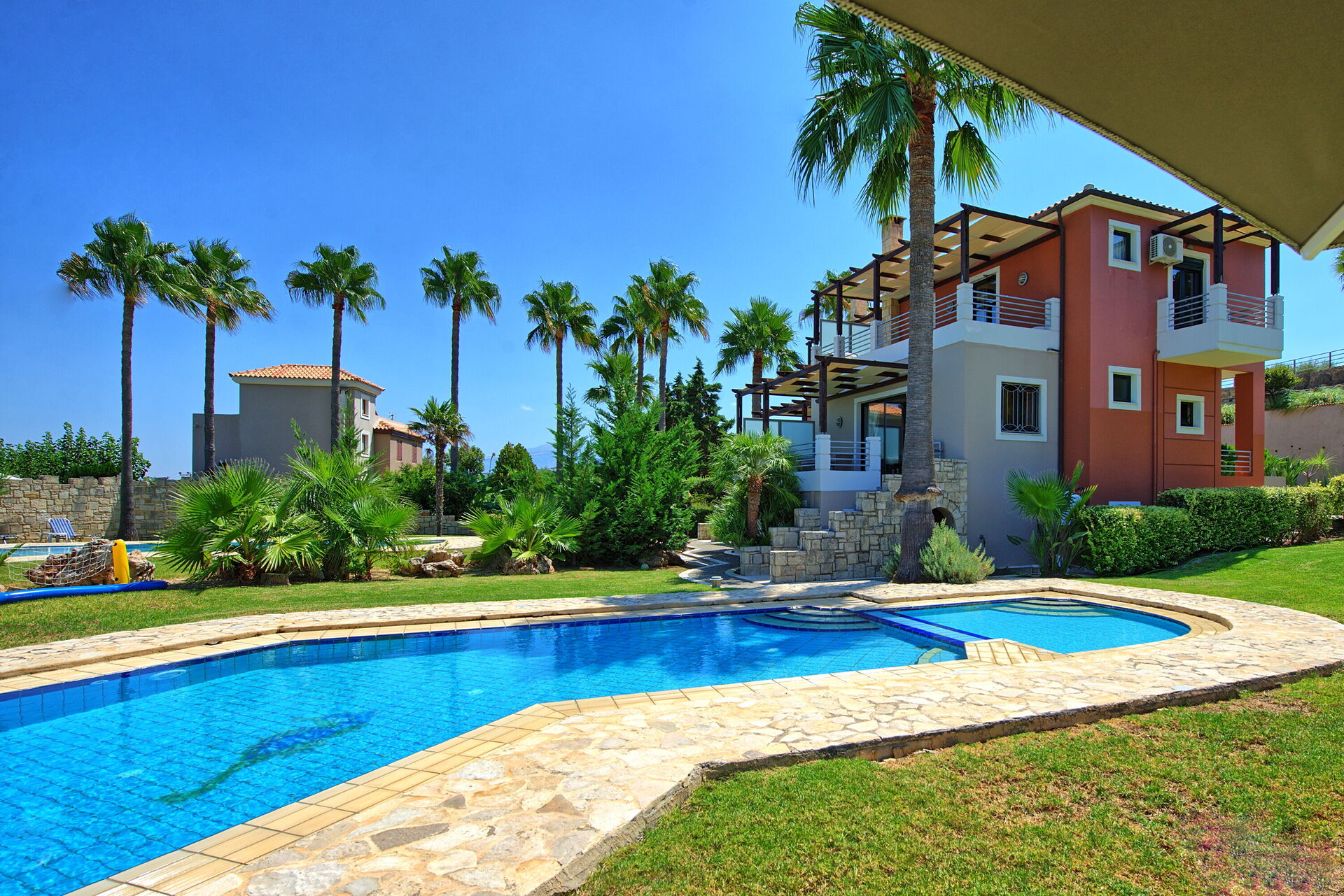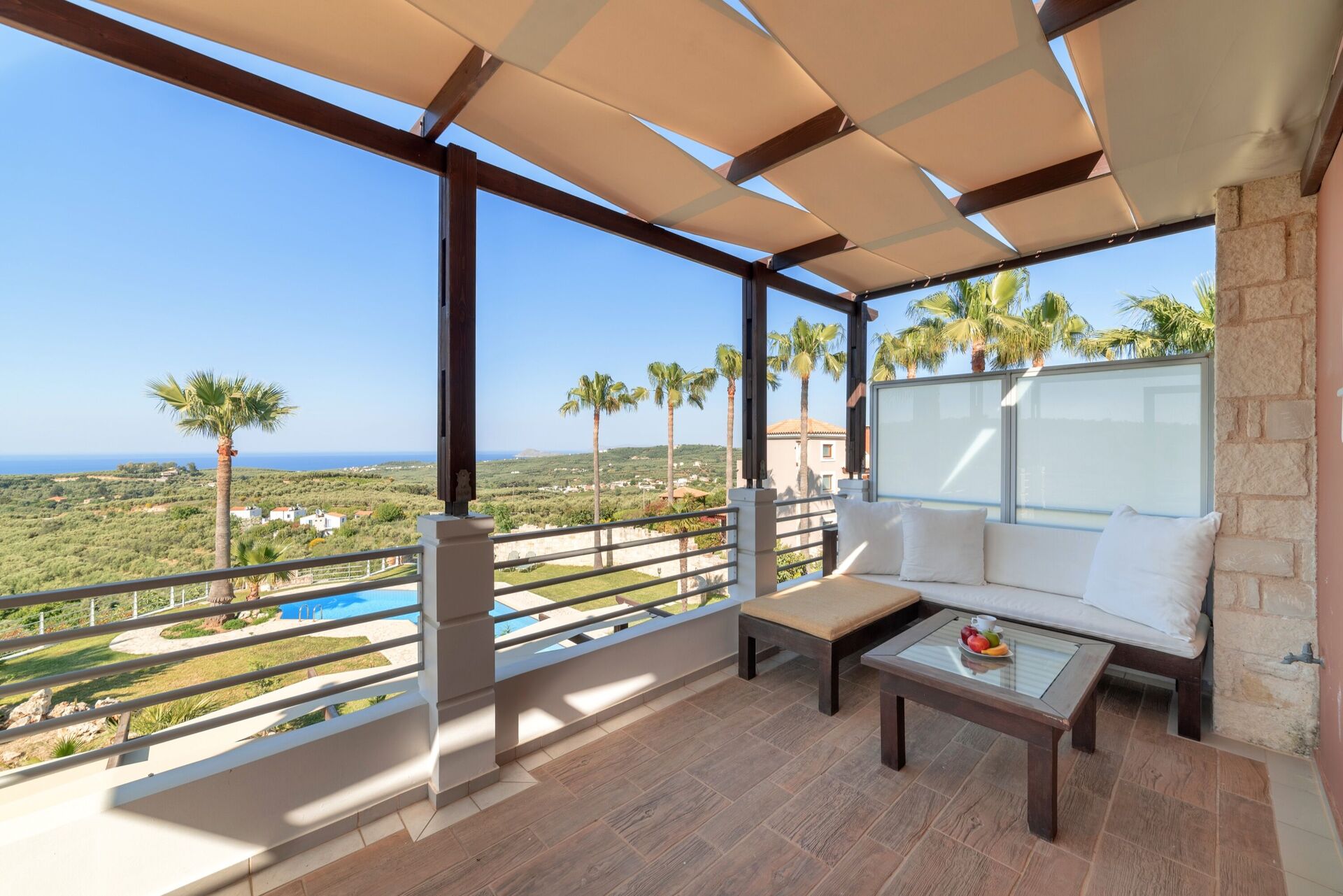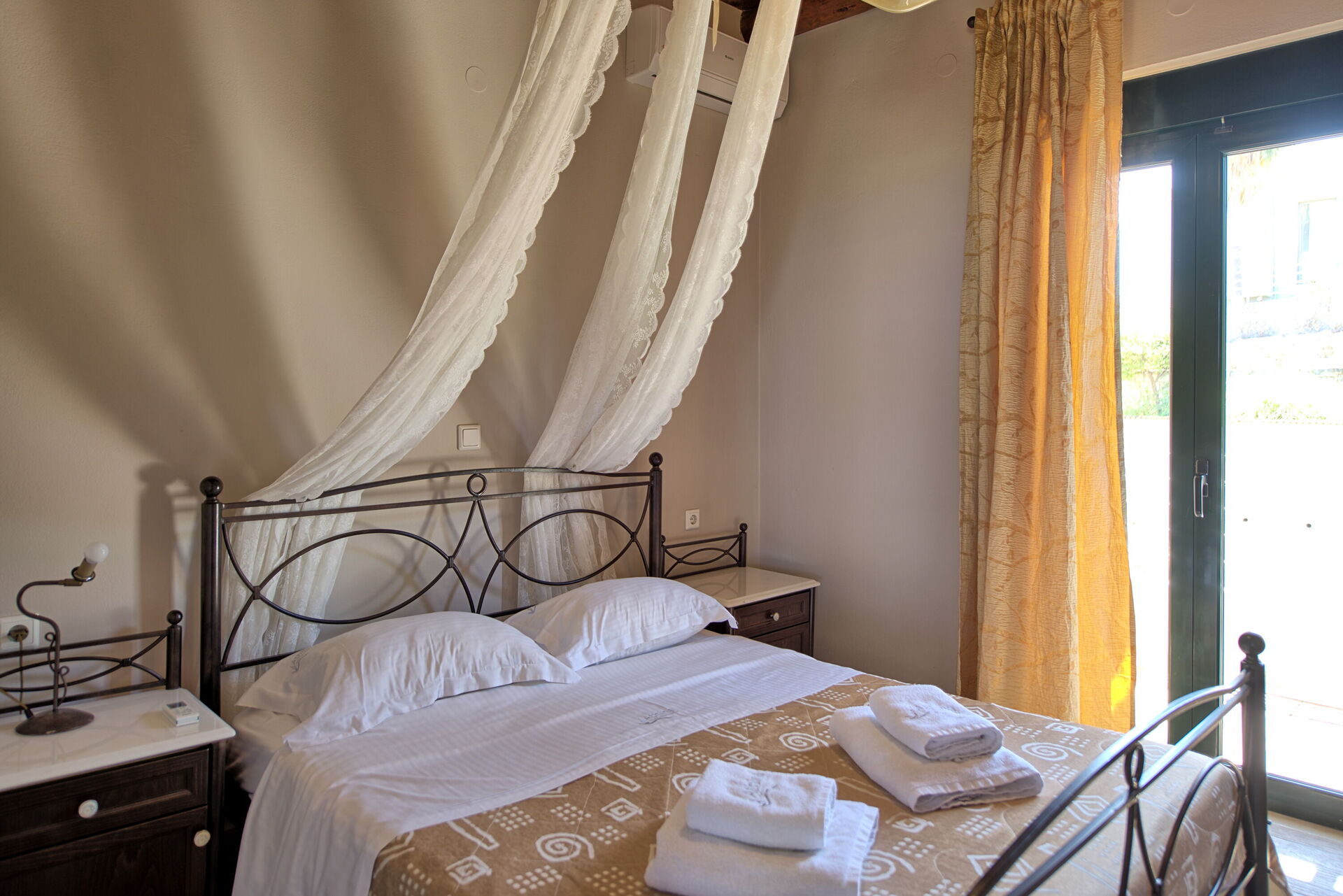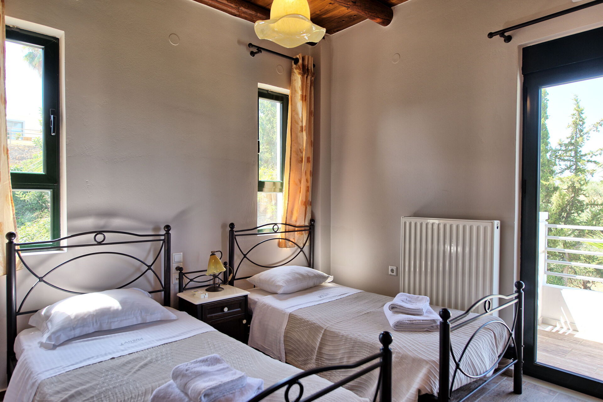 Die Villa Myrtia verfügt über 2 Schlafzimmer und bietet Platz für bis zu 7 Personen in einer komfortablen Umgebung mit Panoramablick. Die Villa erstreckt sich über 2 Etagen, die beide über eine grosse Veranda verfügen auf denen man ideal Frühstücken oder und die Landschaft mit Meerblick geniessen kann.