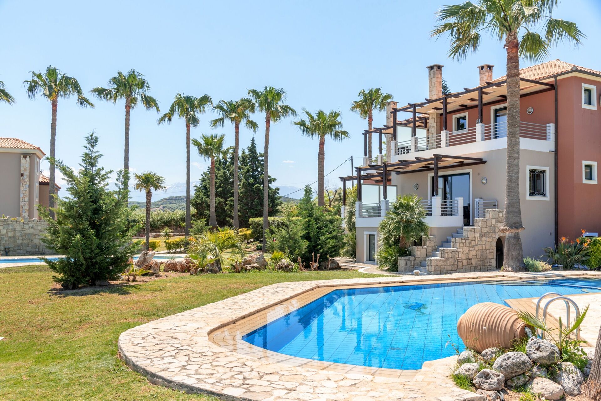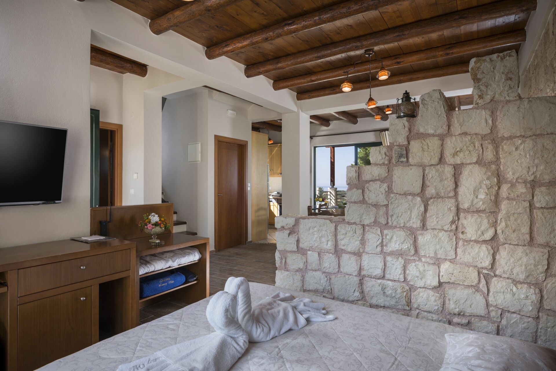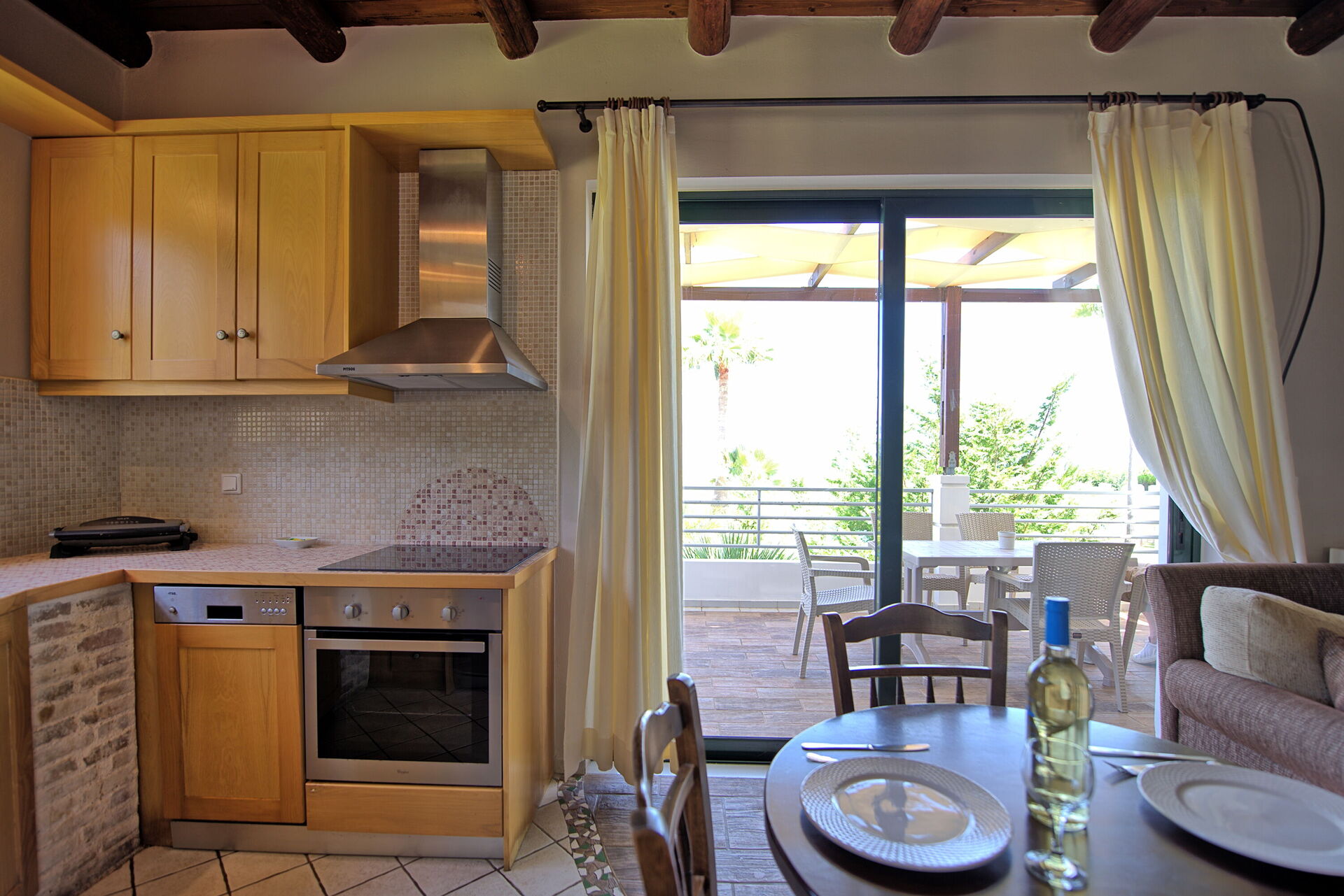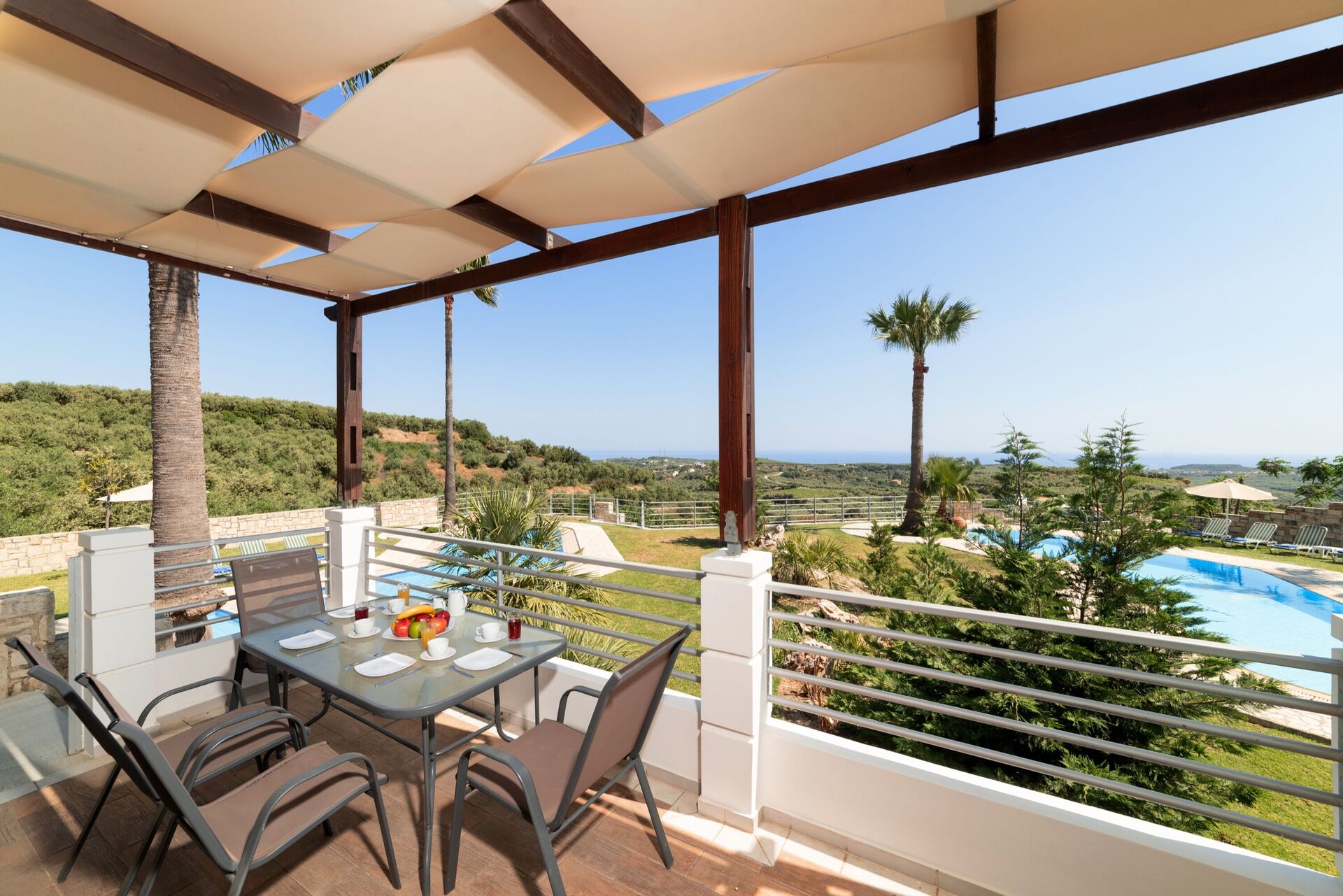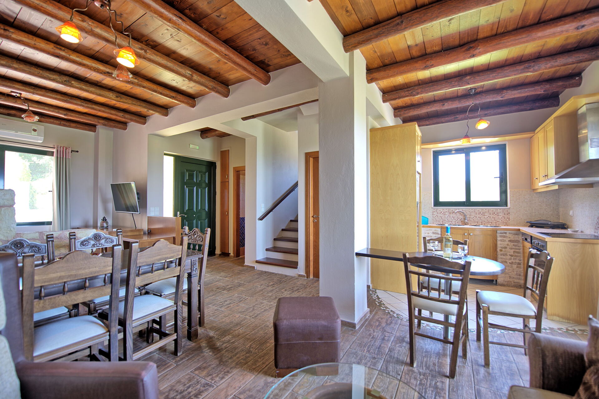 Die Villa Myrtia verfügt über 2 Schlafzimmer und bietet Platz für bis zu 7 Personen in einer komfortablen Umgebung mit Panoramablick. Die Villa erstreckt sich über 2 Etagen, die beide über eine grosse Veranda verfügen auf denen man ideal Frühstücken oder und die Landschaft mit Meerblick geniessen kann.