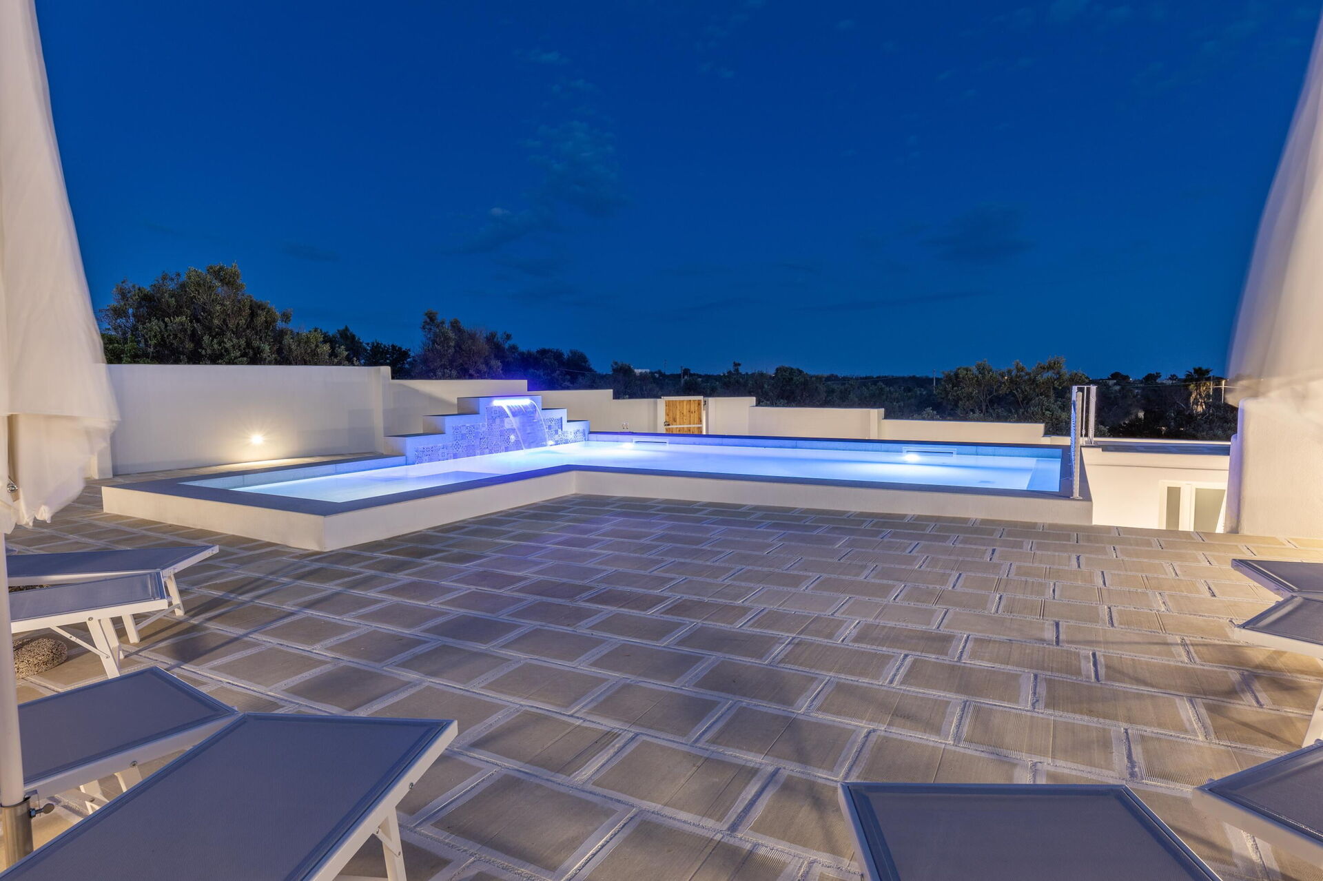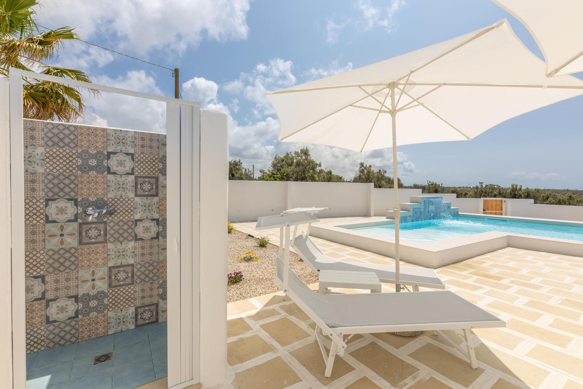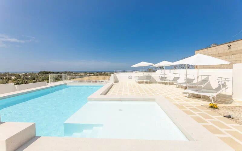 Die großen Außenbereiche bieten zahlreiche Gemeinschaftsbereiche, die es den Gästen ermöglichen, einen angenehmen Aufenthalt mit der Familie oder Freunden zu verbringen und sich auf der für Mahlzeiten im Freien ausgestatteten Veranda oder im großen Schwimmbadbereich mit Sonnenterrasse zu entspannen, der sich ideal für unvergessliche Momente unter der Sonne Apuliens eignet.