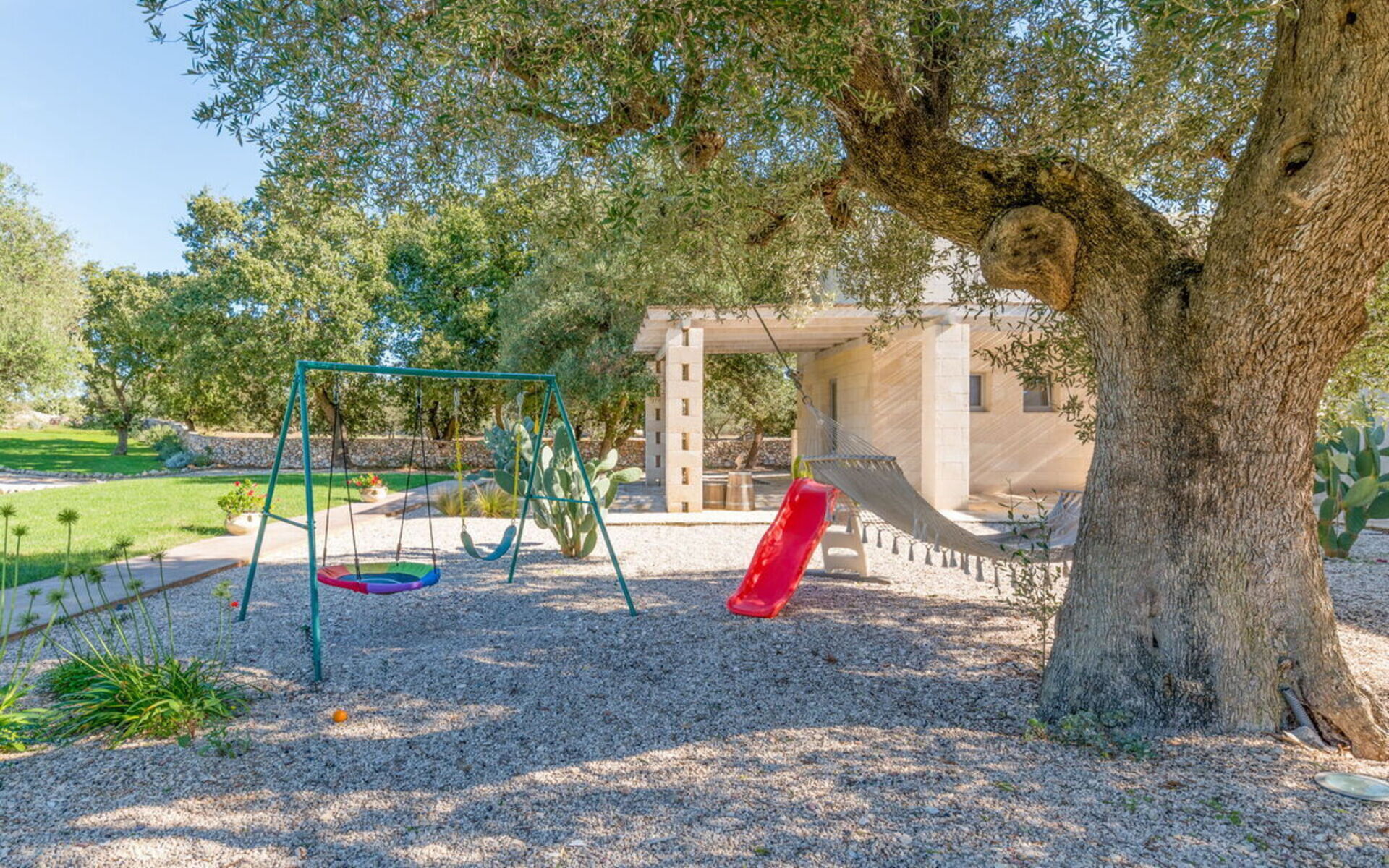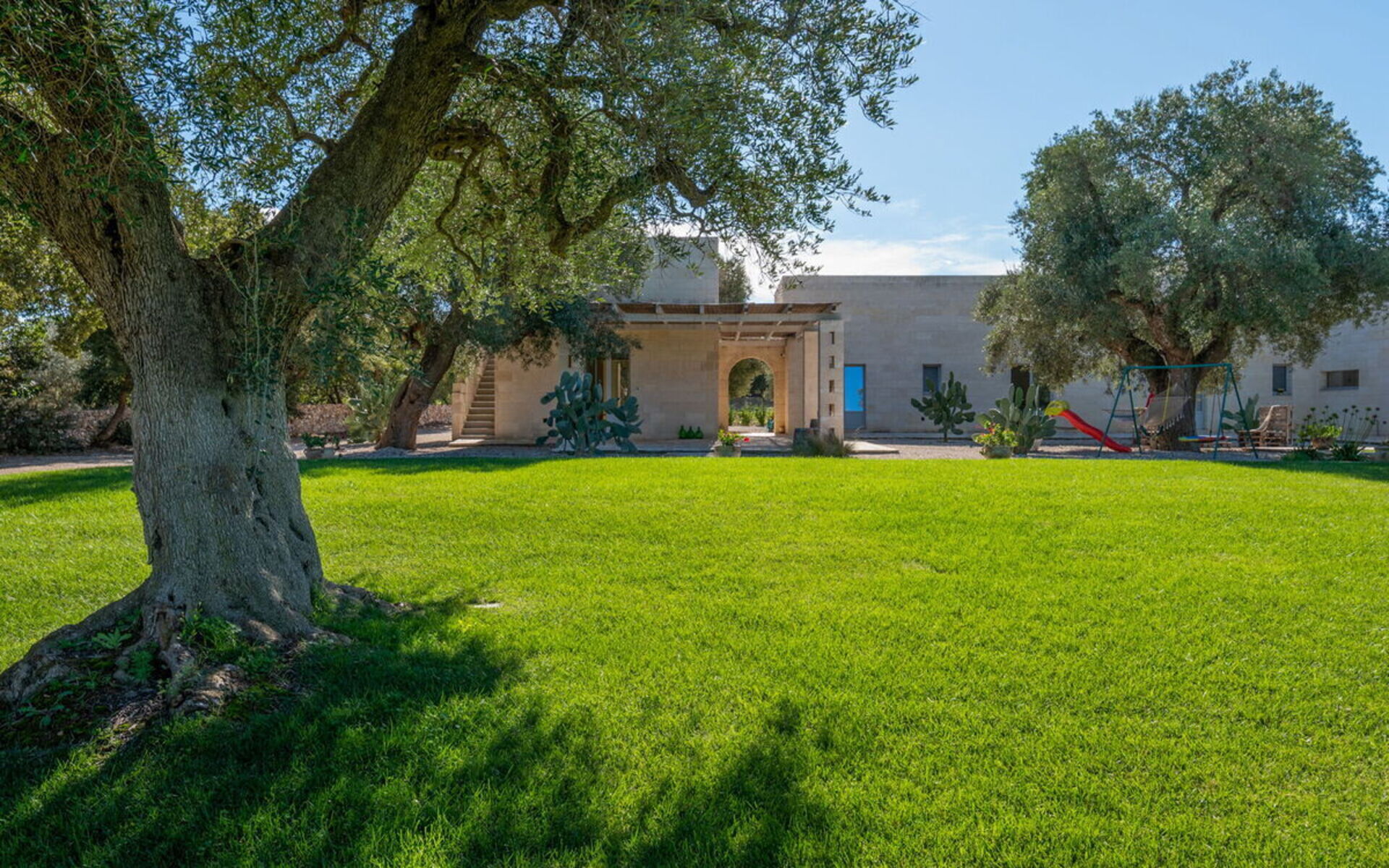 Umgeben von einem 3000 m² großen englischen Rasen besteht das Anwesen aus einem Haupthaus und einem Nebengebäude mit insgesamt 4 Doppelzimmern, jedes mit eigenem Bad und einem Schlafsofa, die Platz für bis zu 8/10 Personen bieten.