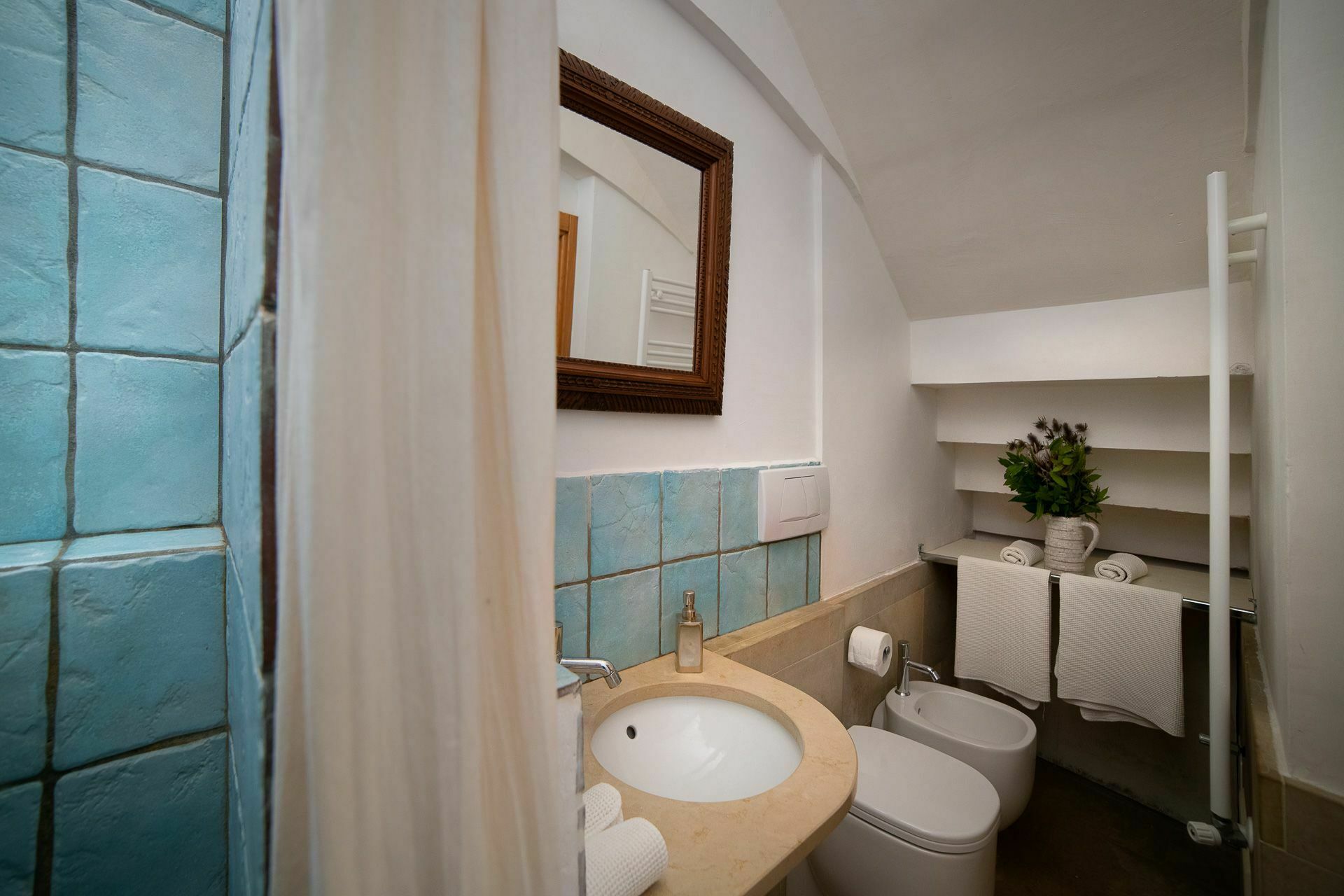 SUITE 2: Wohnzimmer, Küche, Doppelzimmer mit Ehebett, Bad mit Badewanne. Zugang zur Panoramaterrasse.