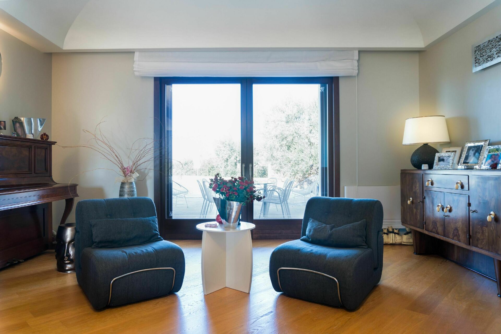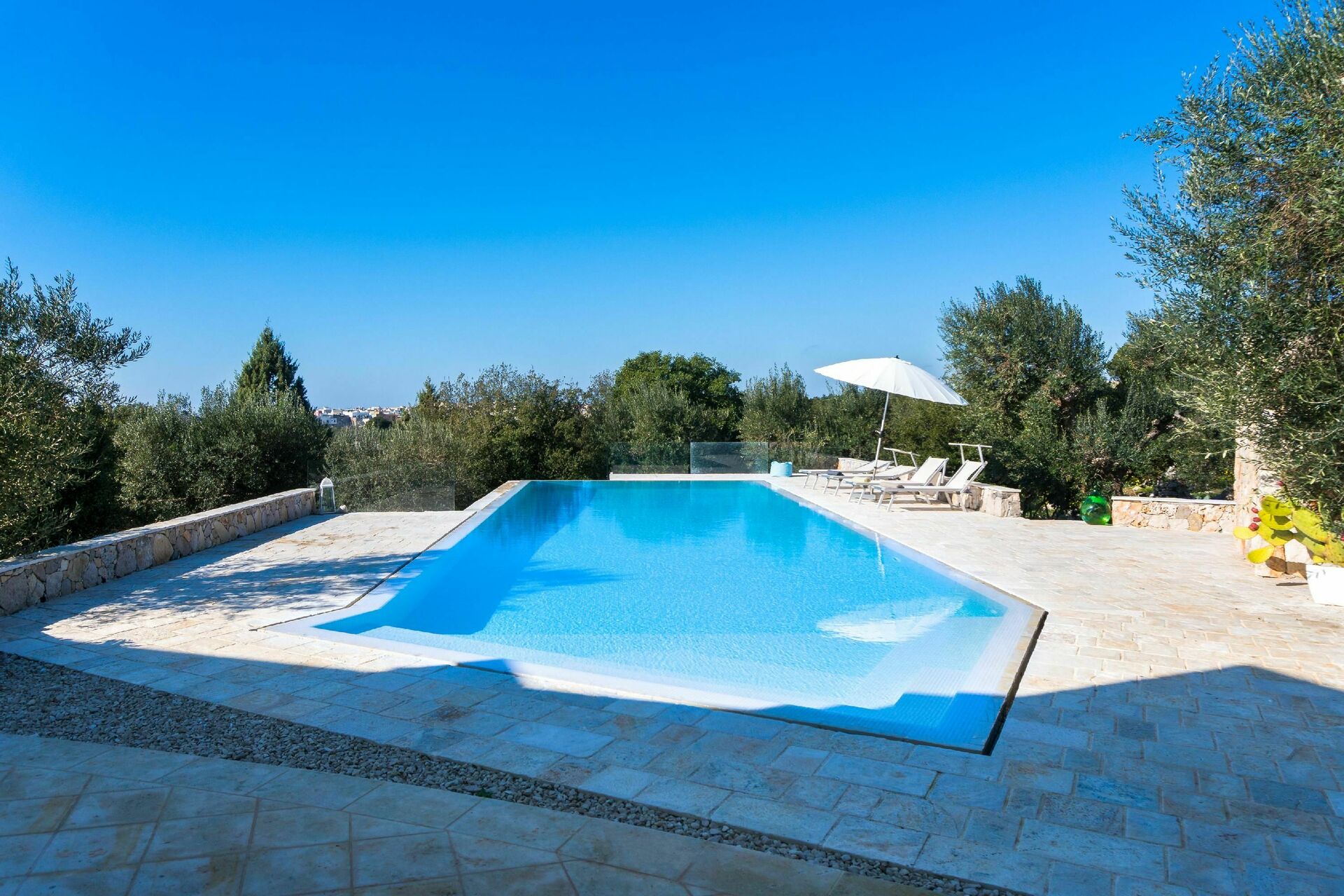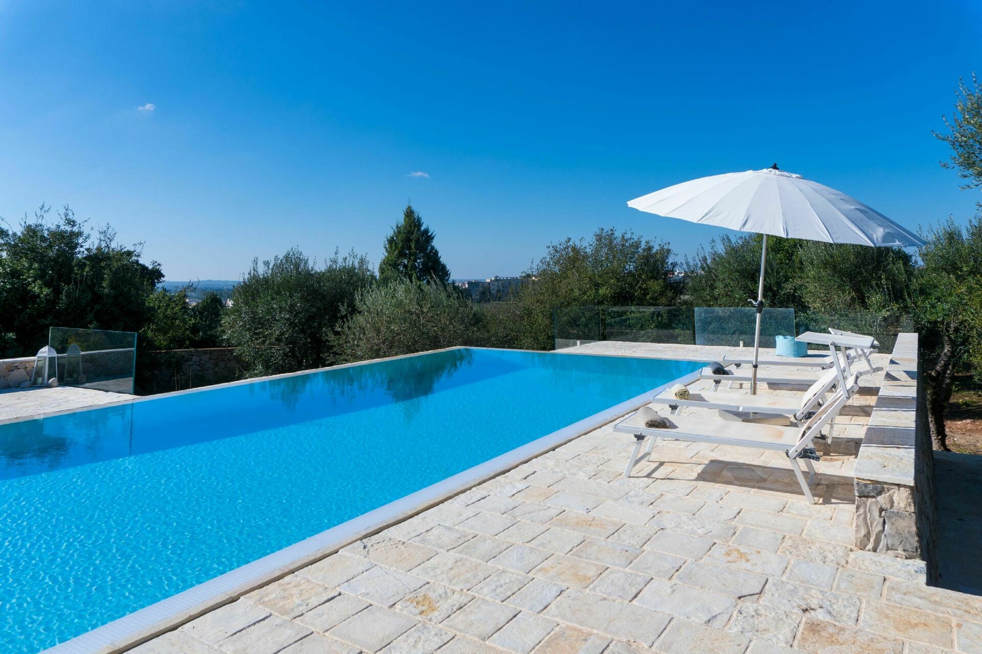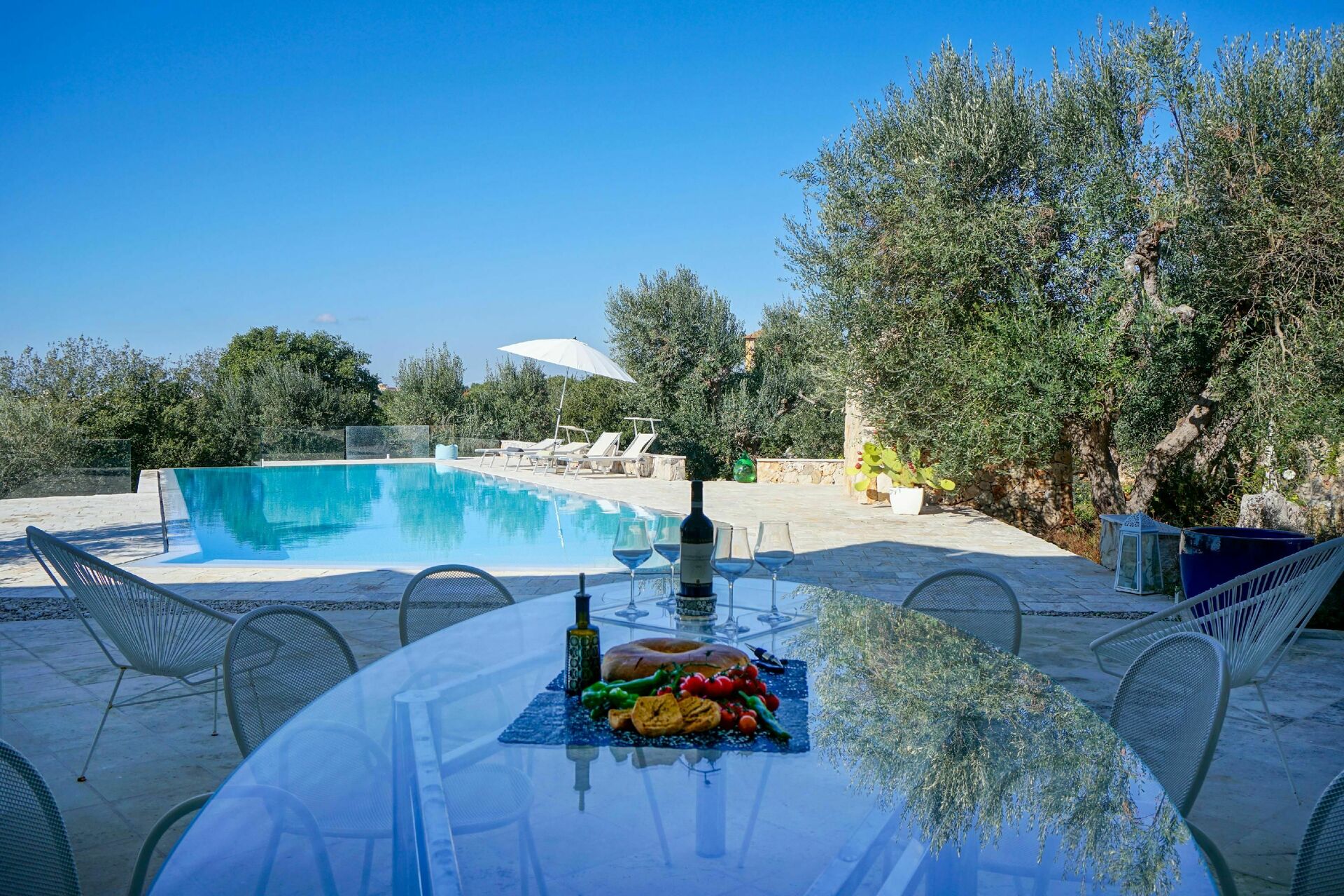 Villa Modigliani liegt inmitten eines 5000 m² großen Gartens mit vielen Bäumen, darunter wunderschöne Olivenbäume. Die Außenbereiche sind perfekt gepflegt und beherbergen ein schönes privates Schwimmbad, ausgestattet mit einer Sonnenterrasse mit Sonnenliegen und Sonnenschirmen. Der perfekte Ort, um lange Tage in der Sonne des Salento mit Freunden und der Familie zu entspannen. Auf der überdachten Terrasse zwischen dem Wohnzimmer und dem Schwimmbad können die Gäste im Freien essen.