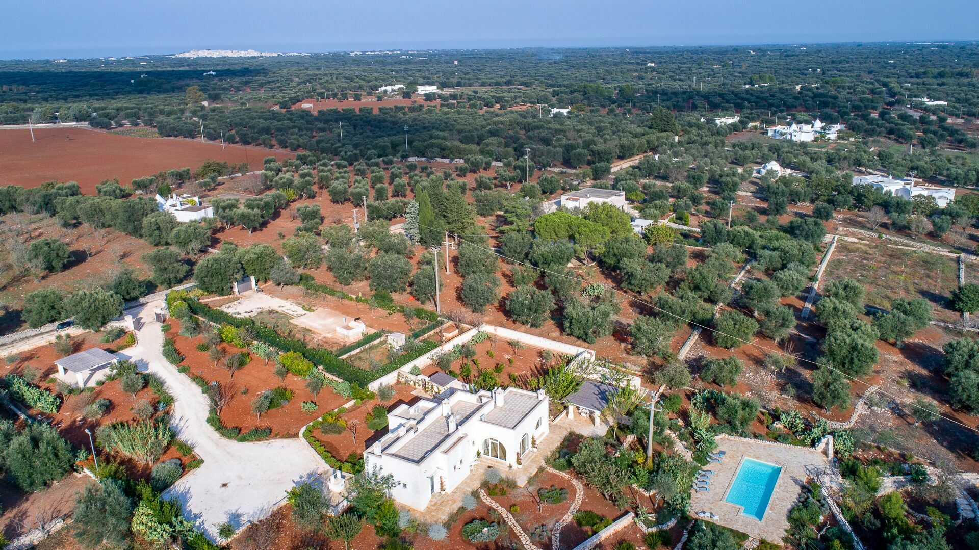 Entfernungen: Ostuni (Geschäfte aller Art) 8 km, Meer 13 km, Cisternino 23 km, Martina Franca 31 km, Locorotondo 35 km, Brindisi 35 km, Fasano (Zoosafari) 37 km, Alberobello (Stadt der Trulli) 43 km, Monopoli 50 km, Polignano a Mare 58 km, Lecce 70 km, Bari 93 km, Gallipoli 110 km.