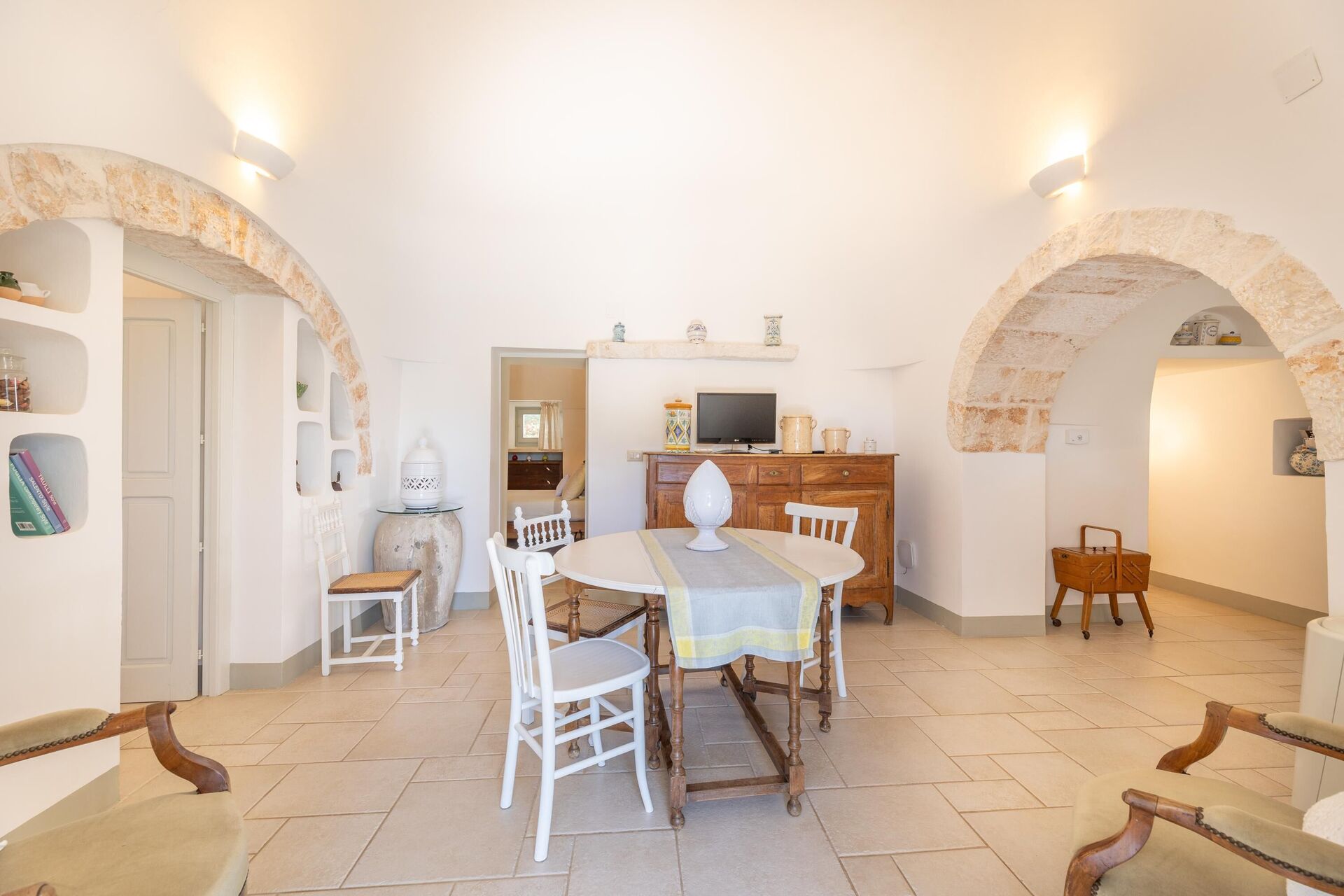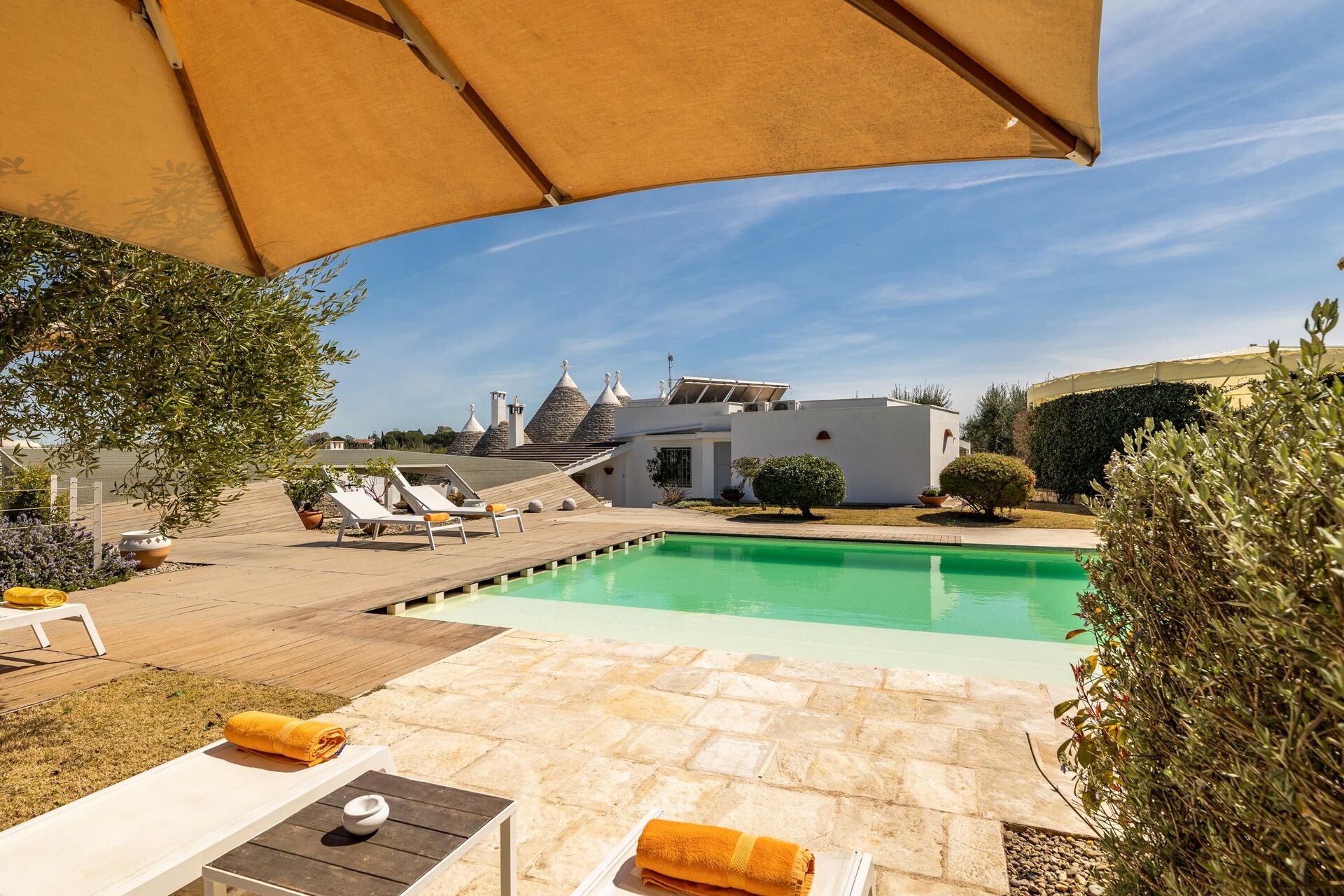 Die wunderschöne Villa zur Miete ist eine perfekte Kombination aus Tradition und Moderne. Dank der 5 Doppelzimmer bietet die Viila Platz für bis zu 10 Personen. Die Struktur besteht aus 2 unabhängigen Einheiten (einem Trullo und einer Lamia) und ist die ideale Lösung für einen Urlaub mit Freunden oder der Familie.
