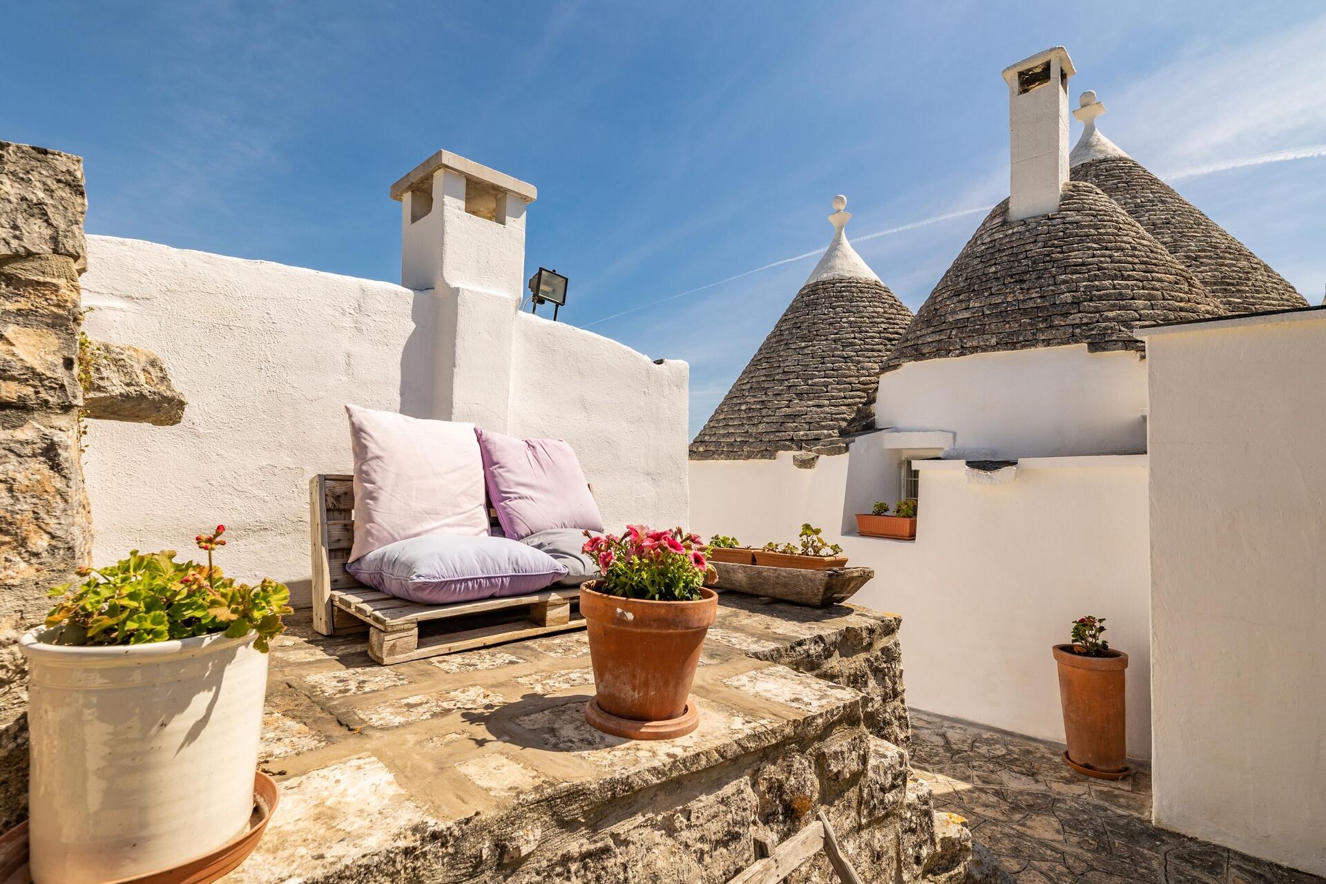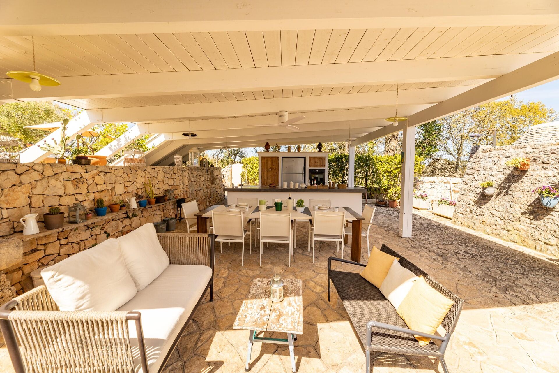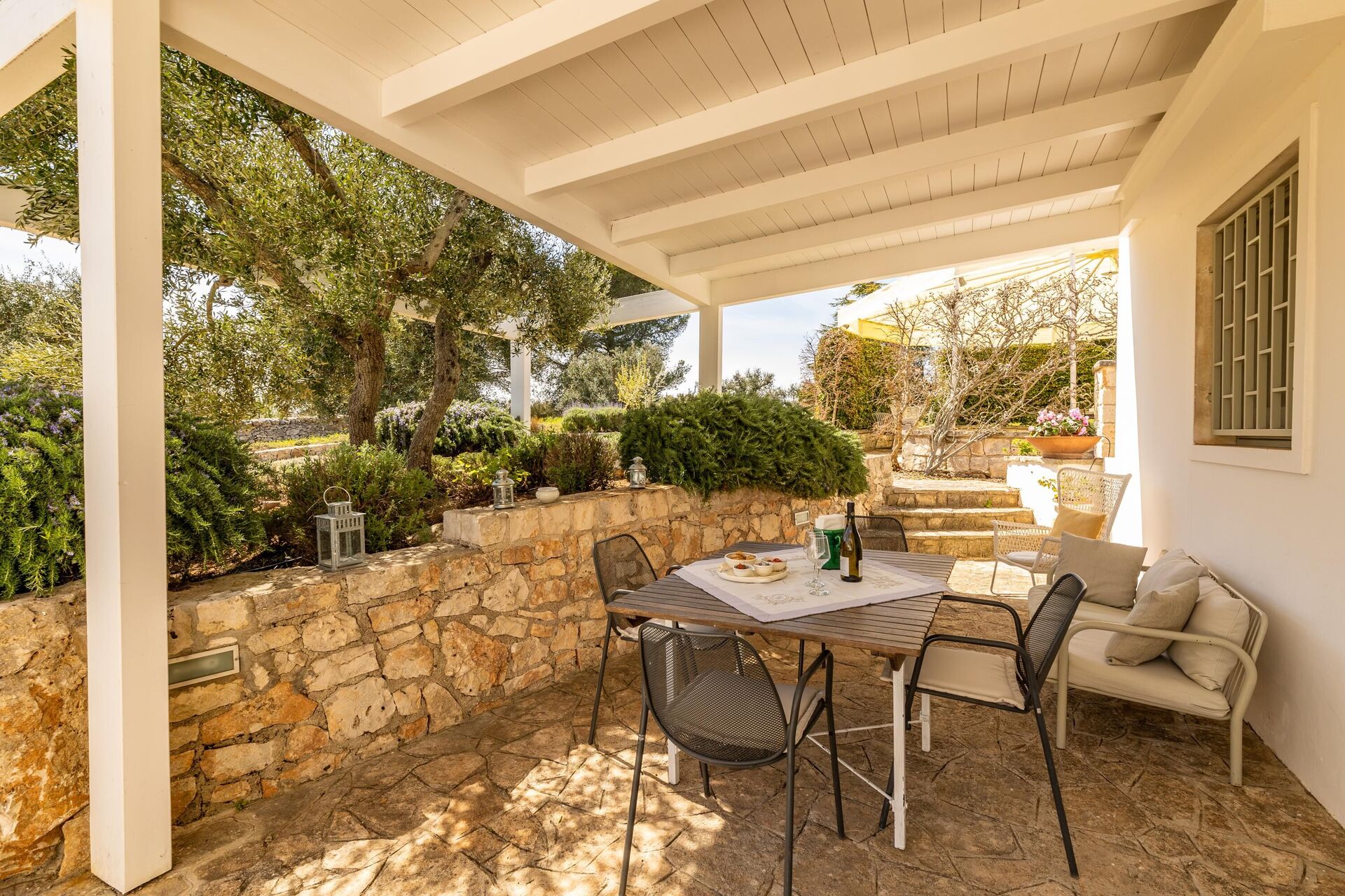 Darüber hinaus bieten die Lamia und der Trullo jeweils eine Veranda, auf der man sich entspannen und dabei die Landschaft des Salento bewundern kann.