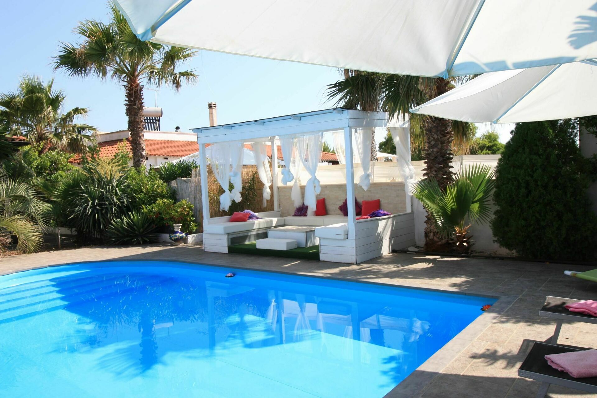 Wohnungen mit Schwimmbad im Naturpark von Lido Pizzo , bei Gallipoli in Apulien .