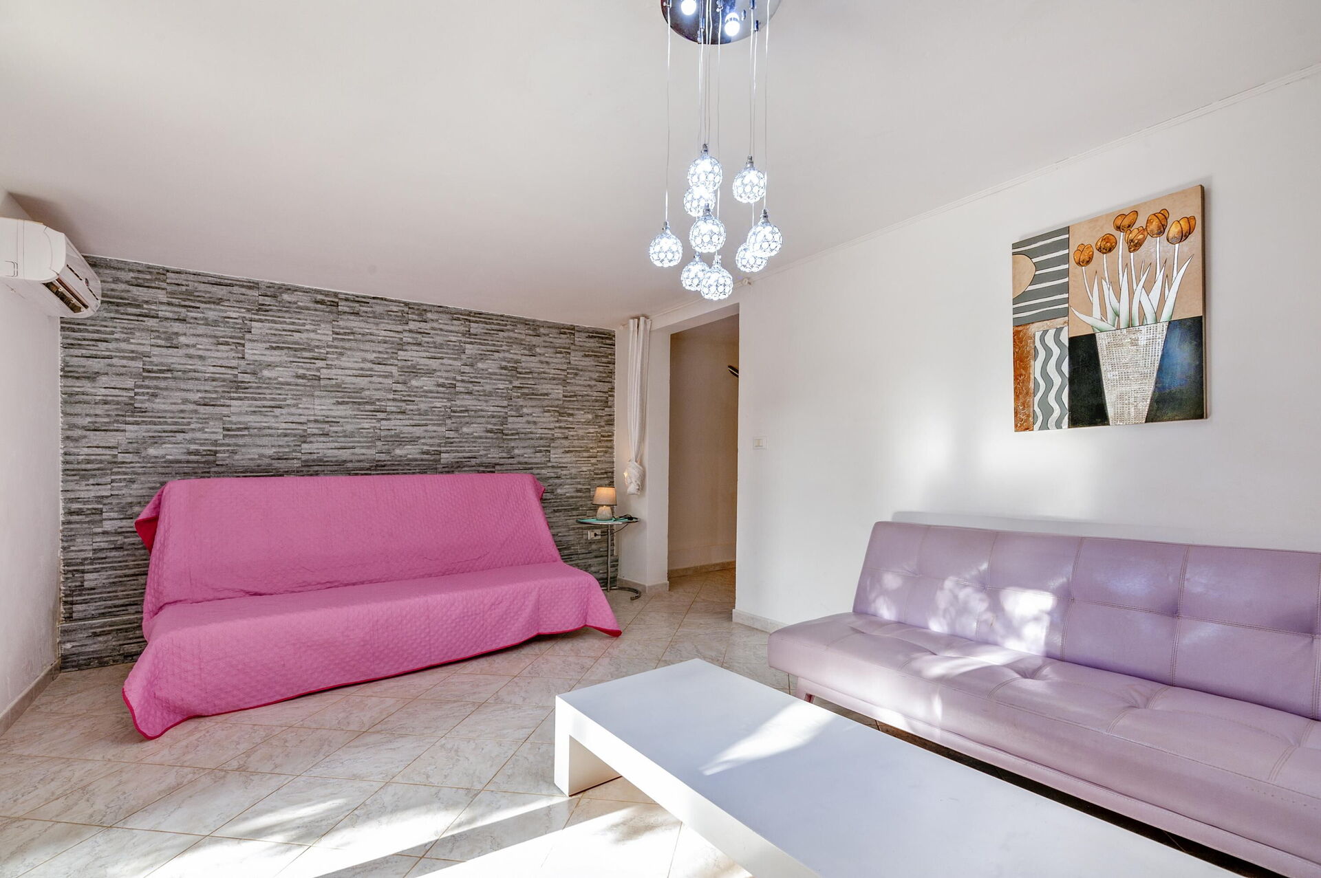 Erdgeschoß:Wohnzimmer mit 1 doppel Sofabett und einem einzel Sofabett (Extras auf Anfrage) , sehr gut ausgestattete Küche, ein Schlafzimmer mit Ehebett, ein Zimmer mit zwei Einzel Betten , Badezimmer mit Dusche.