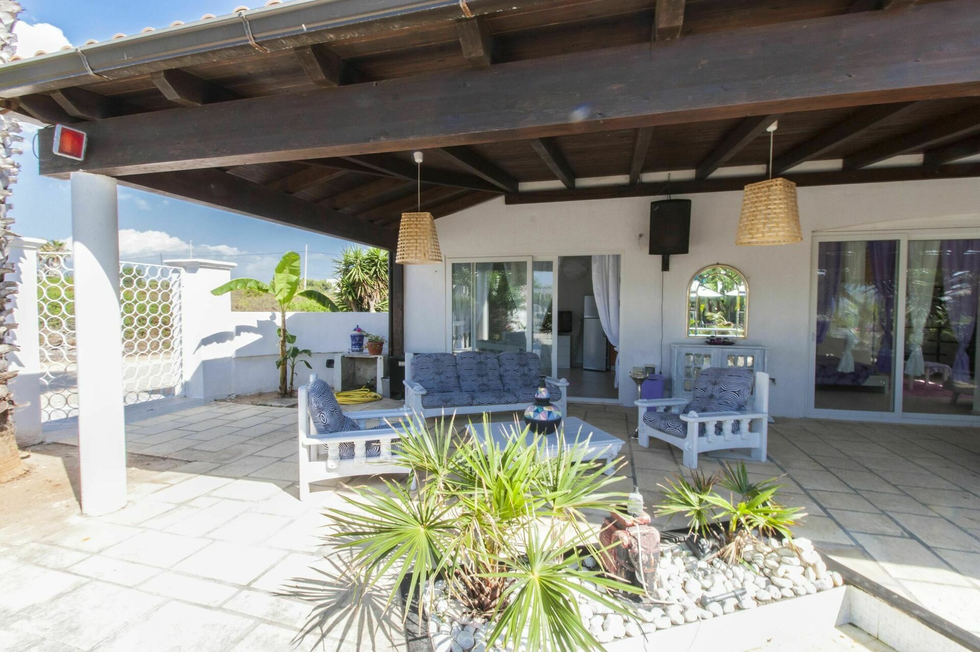 Erdgeschoß: Wohnzimmer mit doppel-Sofabett (Extras auf Anfrage), sehr gut ausgestattete Küche, zwei Schlafzimmer mit Ehebett, ein Schlafzimmer mit Ehebett und einem Einzel-Sofabett (Extras auf Anfrage), zwei Badezimmer mit Dusche. Im Garten ist noch ein zusätzliches Badezimmer mit Dusche.