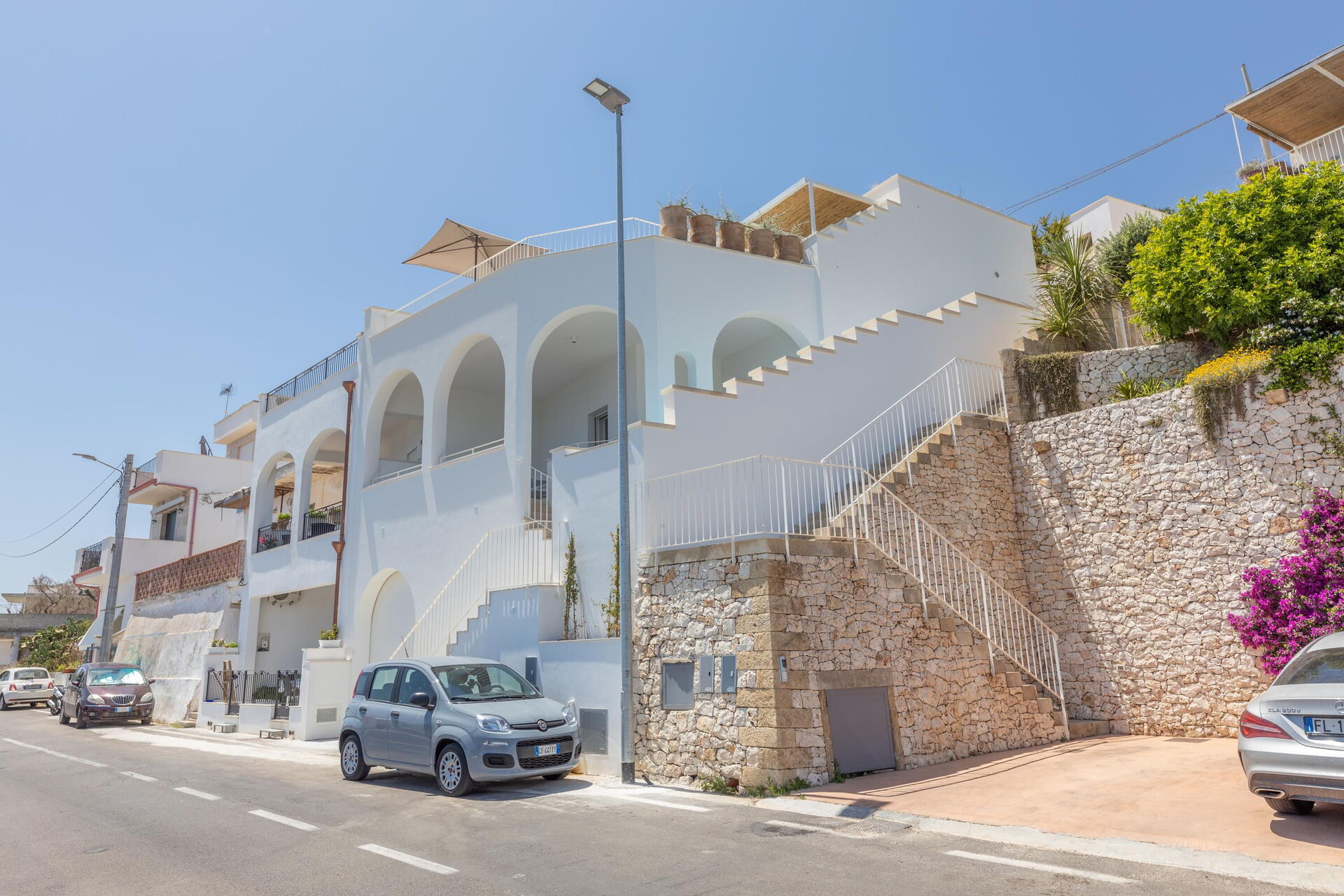 Entfernungen: Meer (Felsen) 70 m, Cala dell'Acquaviva (Kiesstrand) 500 m, Castro (Geschäfte aller Art) 1,4 km, Marittima 2 km, Andrano (Strand, Felsen und Grüne Grotte) 4 km, Porto Miggiano („Spiaggia dei cento Scalini“-Felsen und Sand) 8 km, Otranto 22 km, Baia dei Turchi (Sandstrand) 27 km, Santa Maria di Leuca 28 km, Marina von Pescoluse (Malediven von Salento). ) 29 km, Gallipoli 47 km, Lecce 49 km, Flughafen Lecce 58 km.