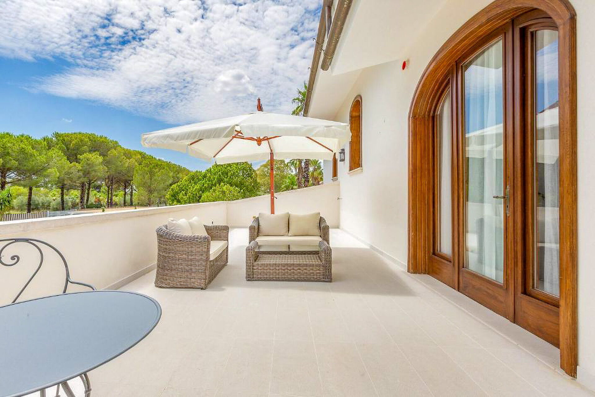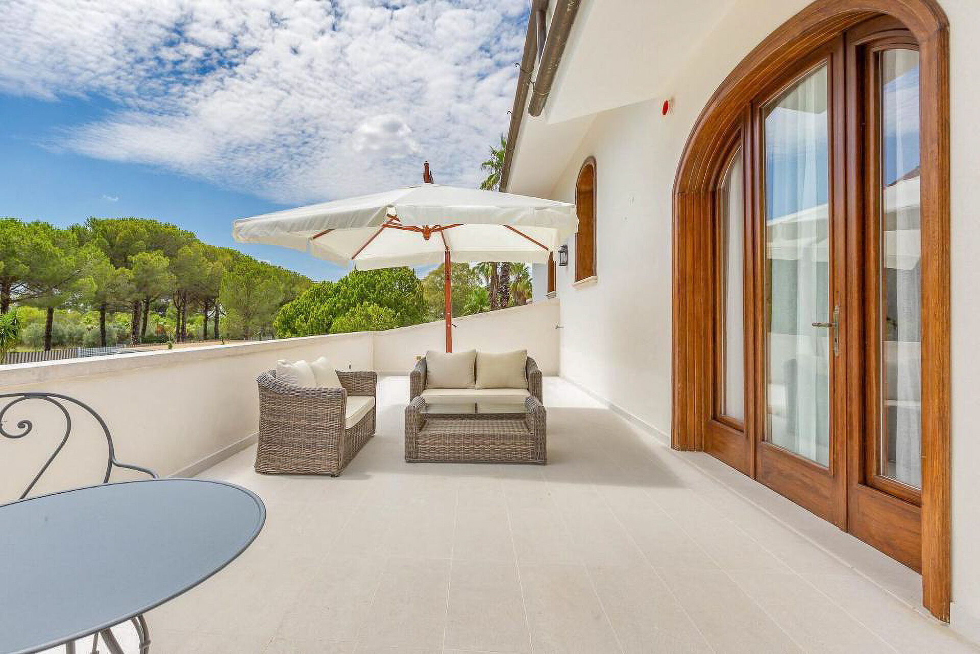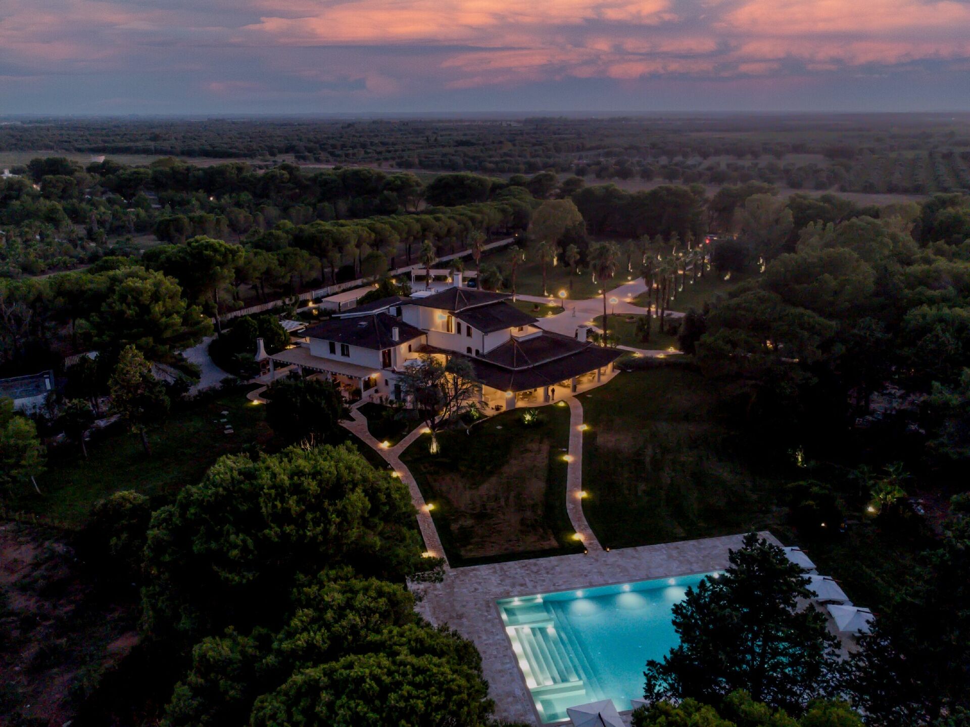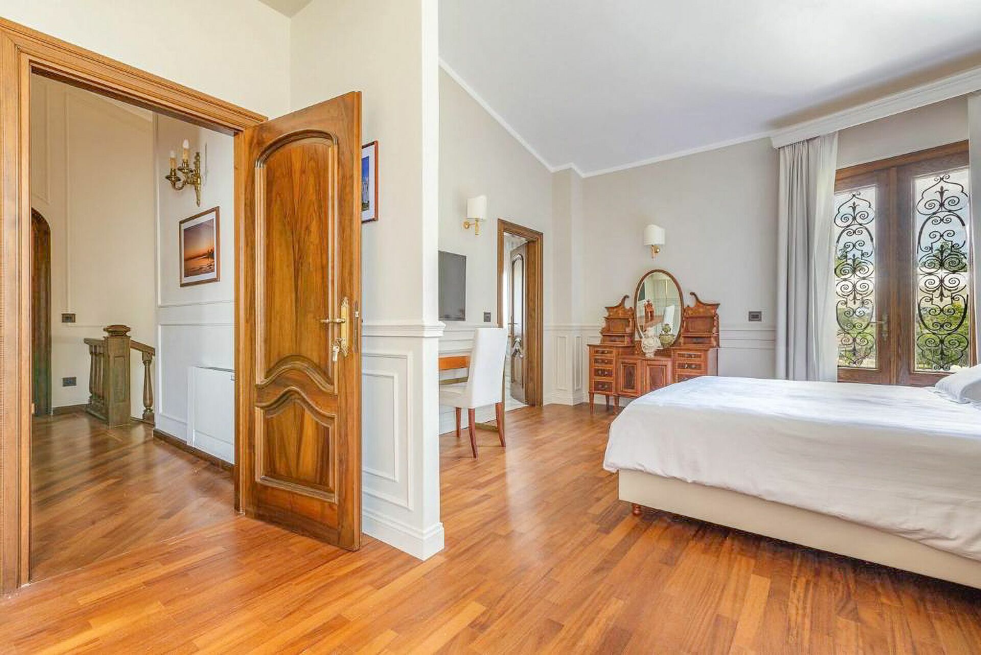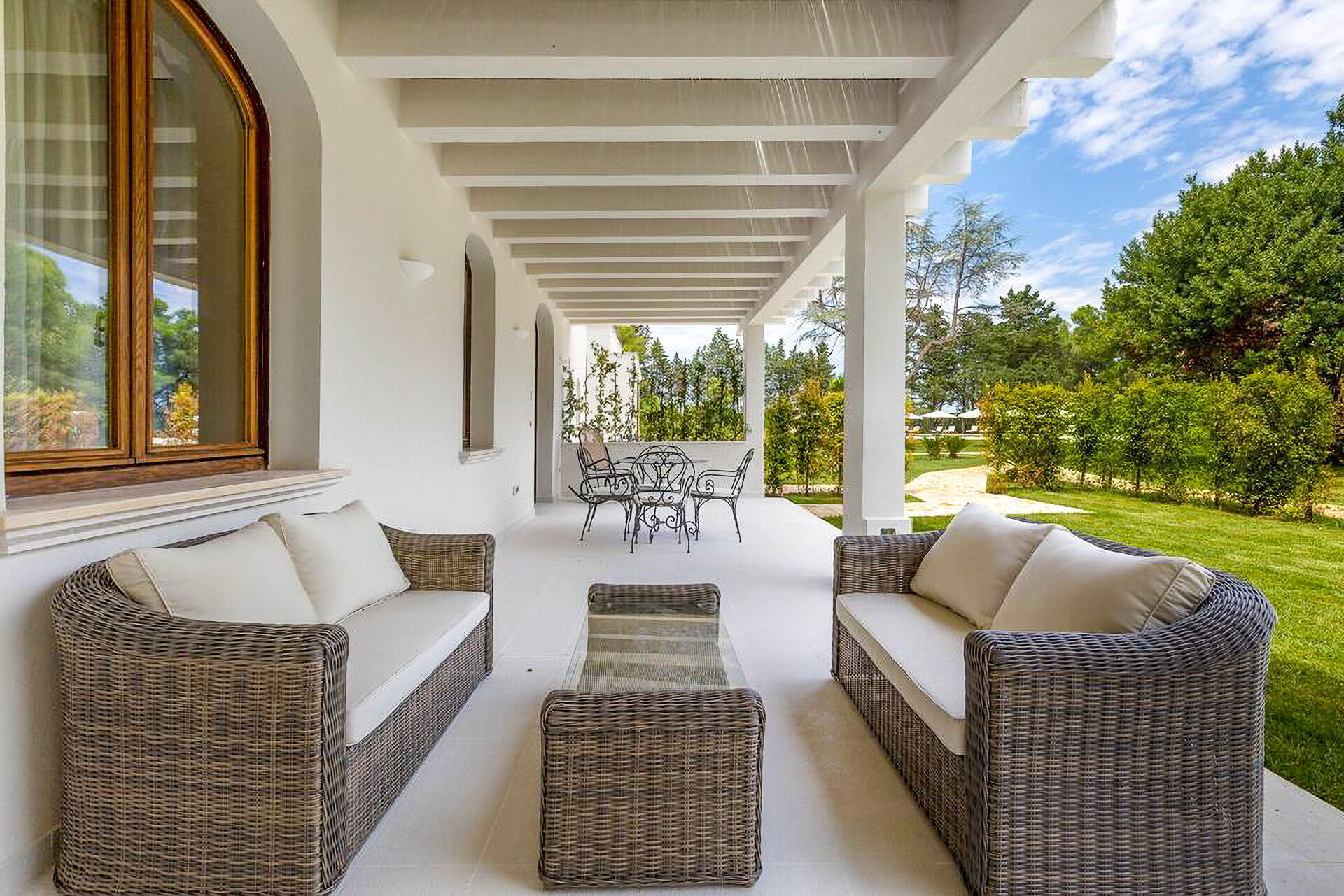 Die Inneneinrichtung ist raffiniert und die Zimmer sind sehr geräumig und hell. Der große eingezäunte Garten von etwa 8000 Quadratmetern umgibt das gesamte Anwesen mit einem schönen englischen Rasen und Bäumen und Pflanzen, die typisch für die mediterrane Macchia sind. Über einen kurzen Weg erreicht man das spektakuläre Schwimmbad, das den Gästen exklusiv zur Verfügung steht. Verschiedene Entspannungs- und Essbereiche befinden sich an verschiedenen Stellen des Gartens, unter einer eleganten Pergola oder auf den Veranden an den Seiten des Hauses.