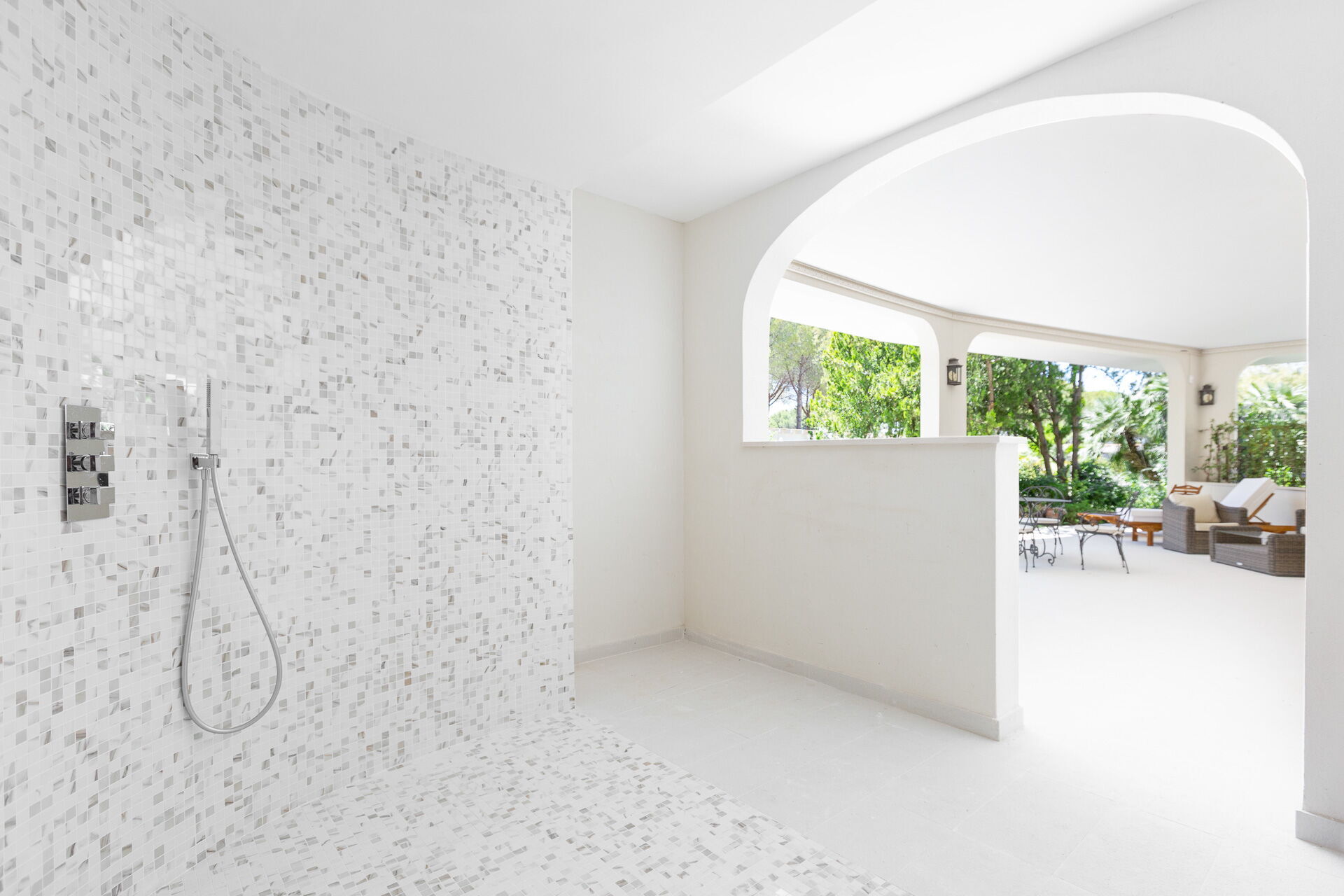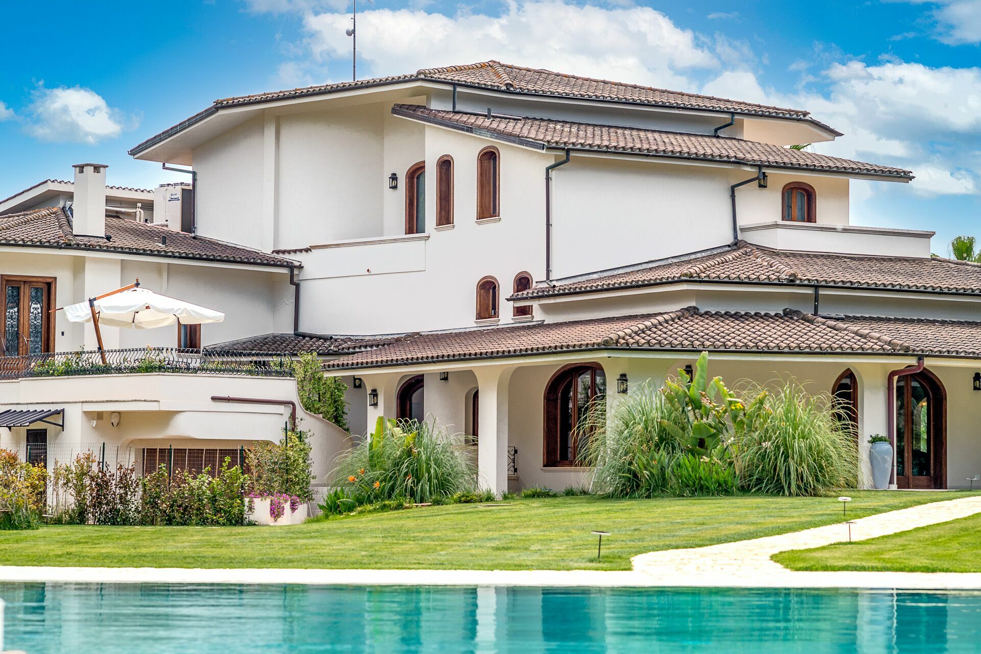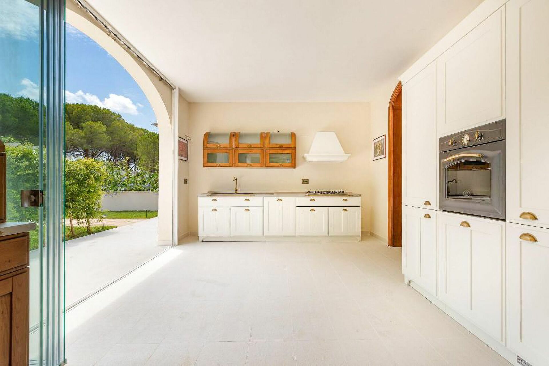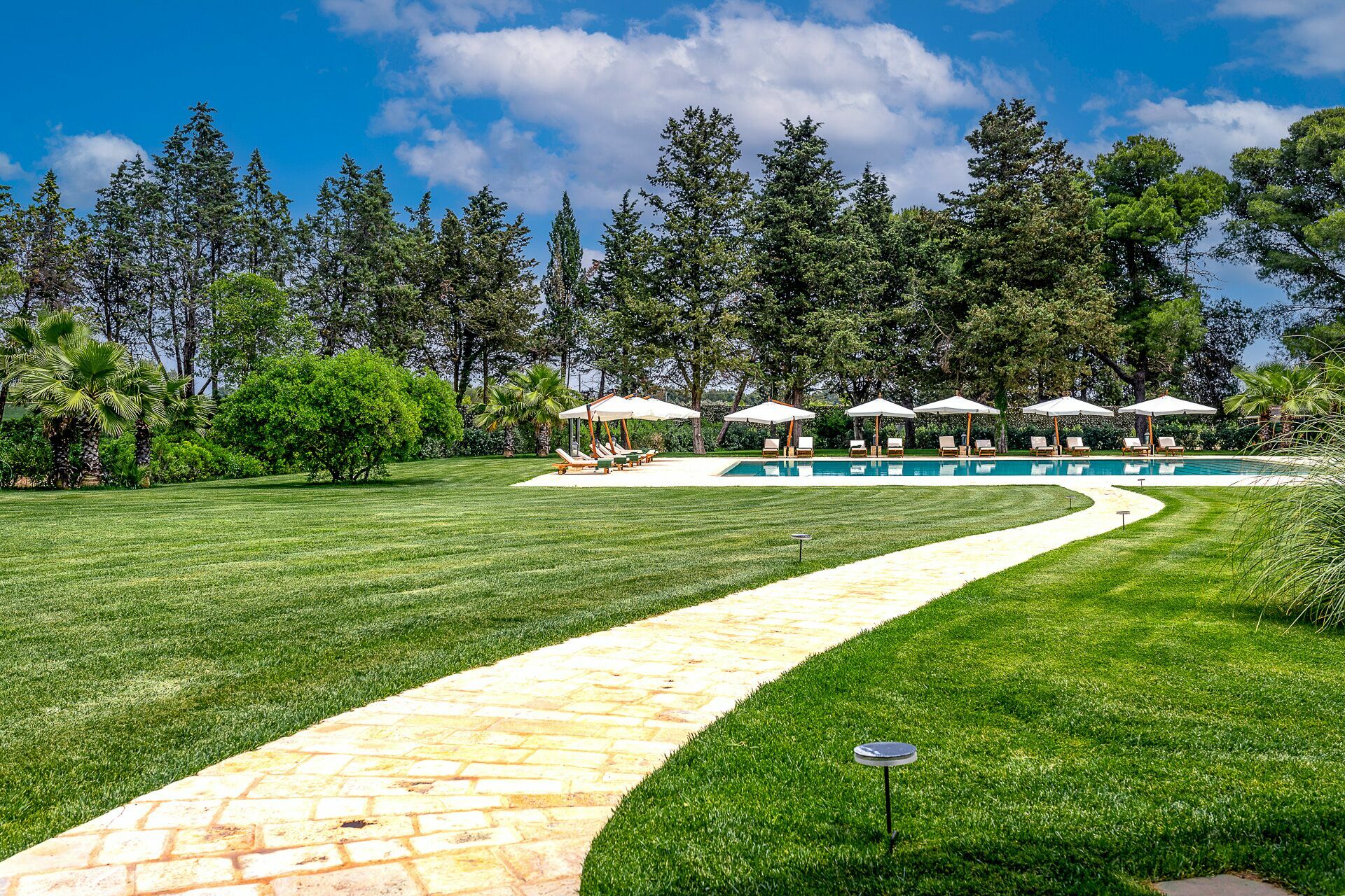 Die Inneneinrichtung ist raffiniert und die Zimmer sind sehr geräumig und hell. Der große eingezäunte Garten von etwa 8000 Quadratmetern umgibt das gesamte Anwesen mit einem schönen englischen Rasen und Bäumen und Pflanzen, die typisch für die mediterrane Macchia sind. Über einen kurzen Weg erreicht man das spektakuläre Schwimmbad, das den Gästen exklusiv zur Verfügung steht. Verschiedene Entspannungs- und Essbereiche befinden sich an verschiedenen Stellen des Gartens, unter einer eleganten Pergola oder auf den Veranden an den Seiten des Hauses.