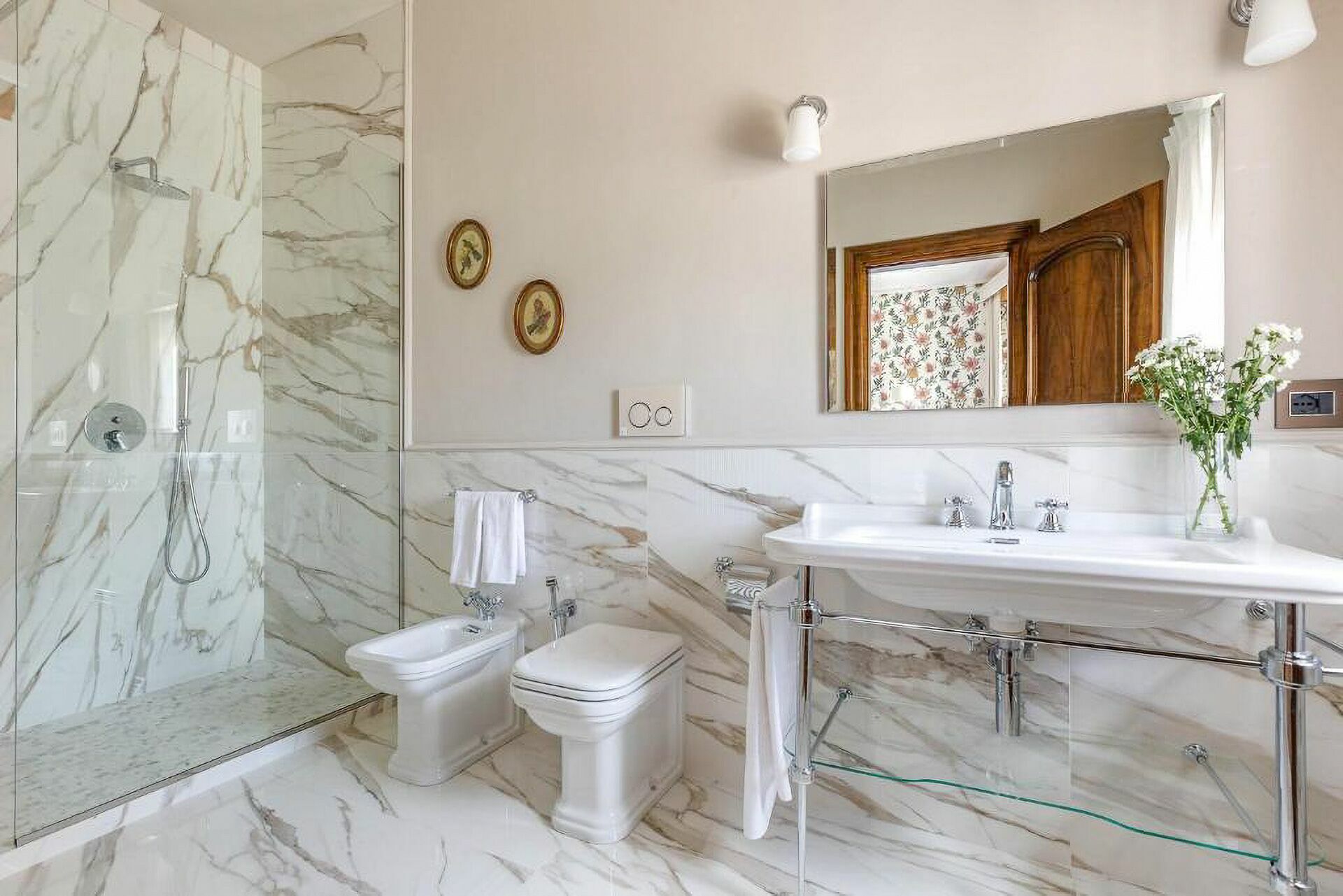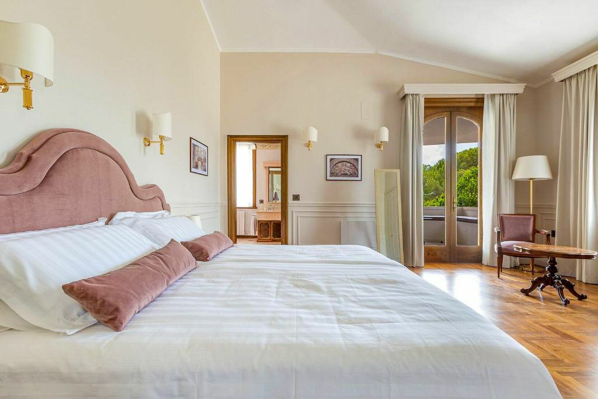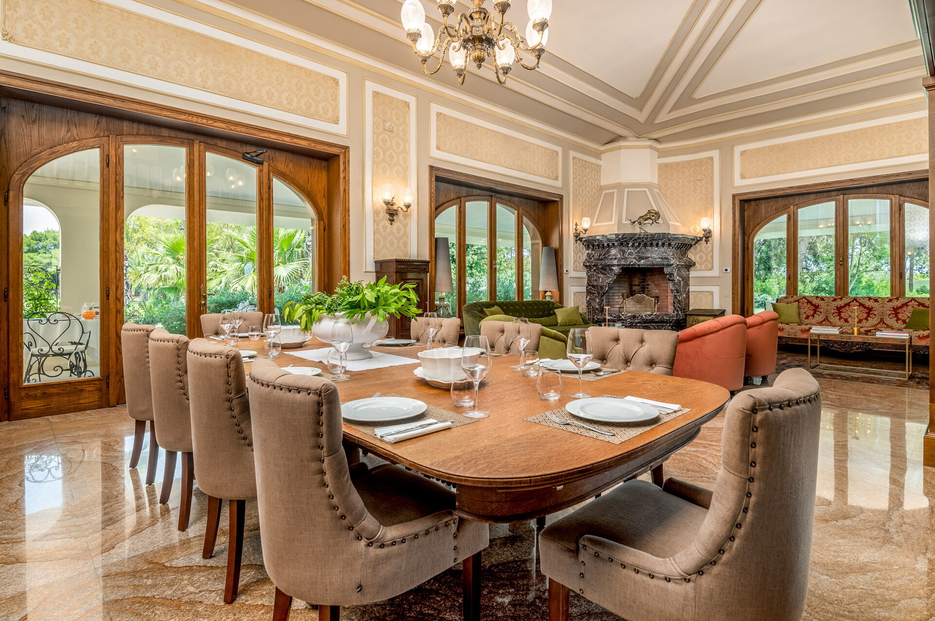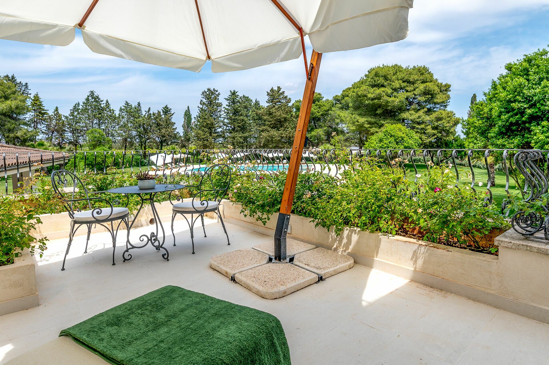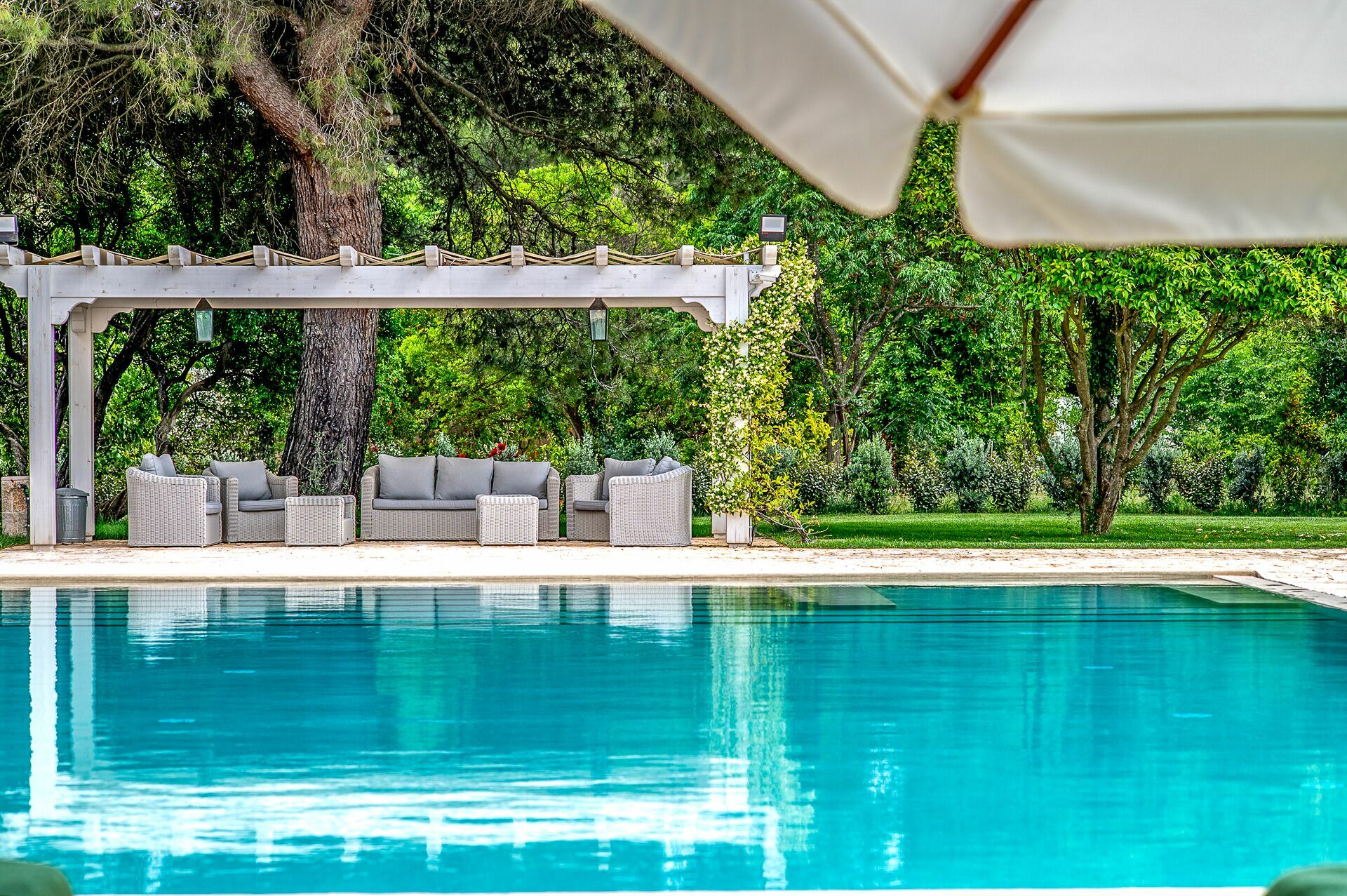 Die Inneneinrichtung ist raffiniert und die Zimmer sind sehr geräumig und hell. Der große eingezäunte Garten von etwa 8000 Quadratmetern umgibt das gesamte Anwesen mit einem schönen englischen Rasen und Bäumen und Pflanzen, die typisch für die mediterrane Macchia sind. Über einen kurzen Weg erreicht man das spektakuläre Schwimmbad, das den Gästen exklusiv zur Verfügung steht. Verschiedene Entspannungs- und Essbereiche befinden sich an verschiedenen Stellen des Gartens, unter einer eleganten Pergola oder auf den Veranden an den Seiten des Hauses.