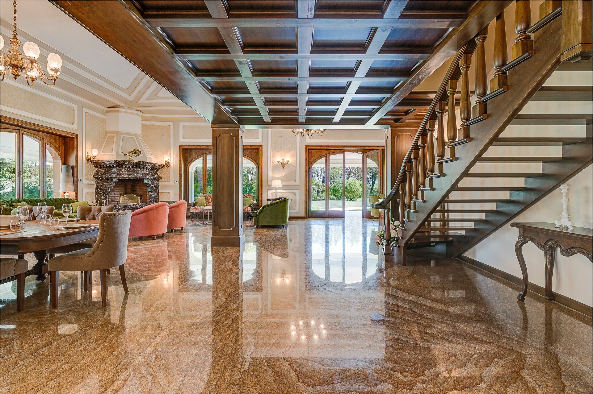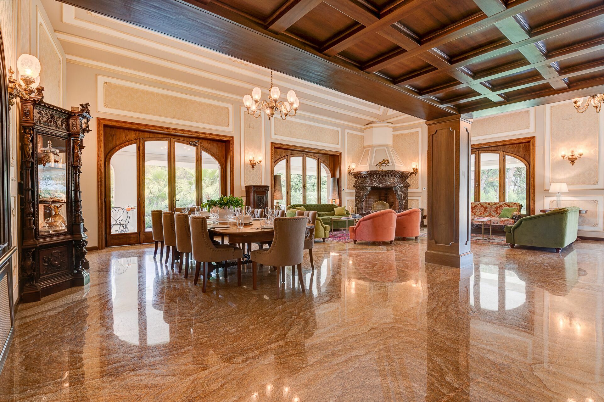 Diese große Villa zur Miete bietet Platz für bis zu 14 Personen, dank der 7 wunderschönen Schlafzimmer, jedes mit privatem Bad. Auf Anfrage können auch 3 Schlafsofas genutzt werden, diese sind jedoch nur für Kinder unter 12 Jahren verfügbar. Die majestätische prestigeträchtige Villa erstreckt sich über 3 Etagen und ein Untergeschoss, in dem man einen SPA Bereich, ein Fitnessstudio, eine Taverne und ein Billardzimmer vorfindet.