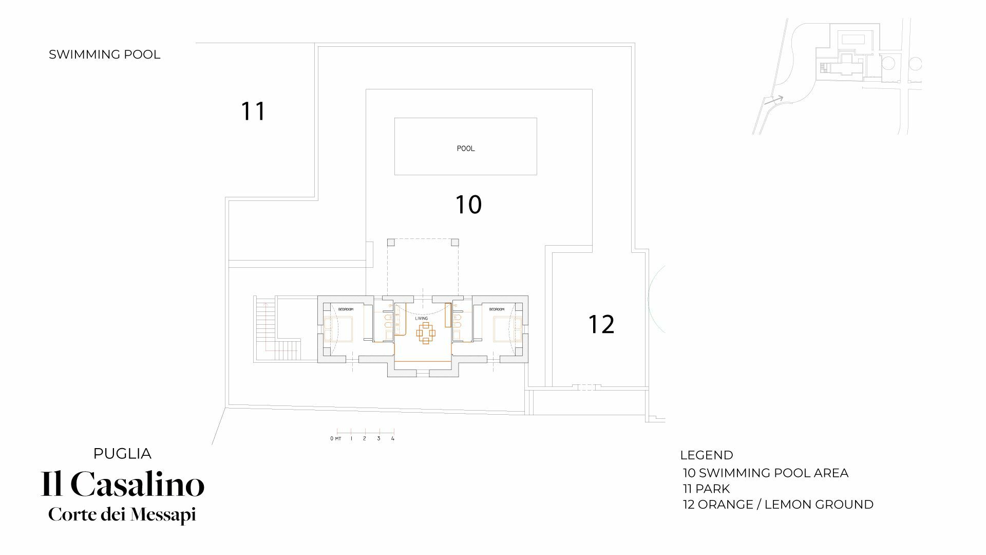 Von diesem Wohnsitz kann man die wichtigen Sehenswürdigkeiten wie Ostuni, Cisternino und Alberobello gut erreichen und die wunderschöne Natur der apulischen Landschaft geniessen. Der Garten und das private Schwimmbad stehen den Gästen zur freien Verfügung und hier kann man sich nach einer Tour durch die Gegend im Freien oder am Schwimmbad entspannen. Der Garten ist eingezäunt und es gibt einige Obstbäume, einen Bio-Gemüsegarten und einen Zitronenhain.