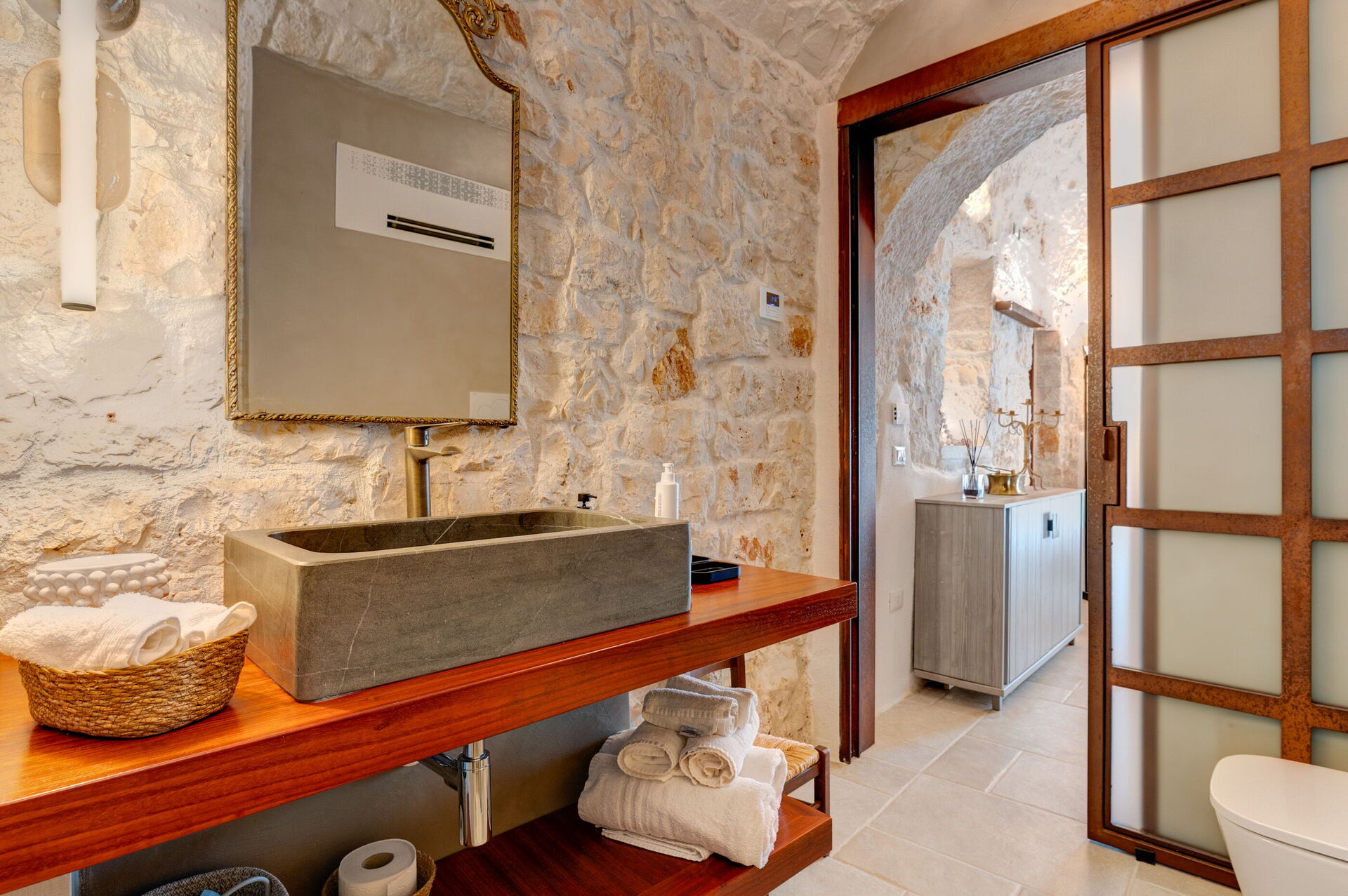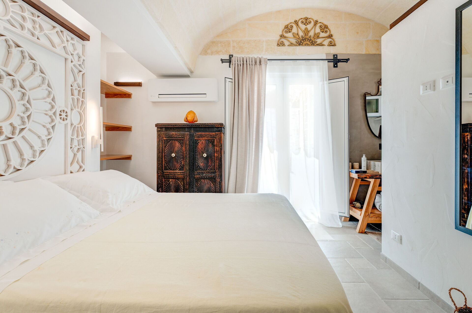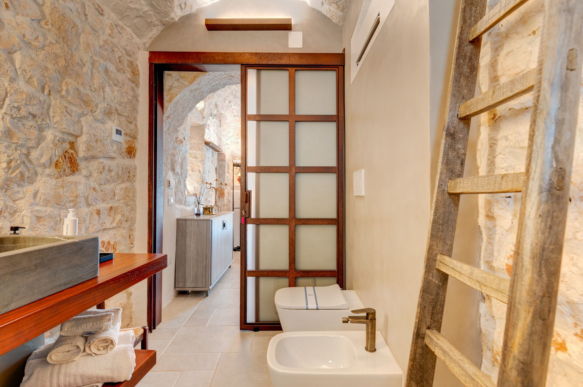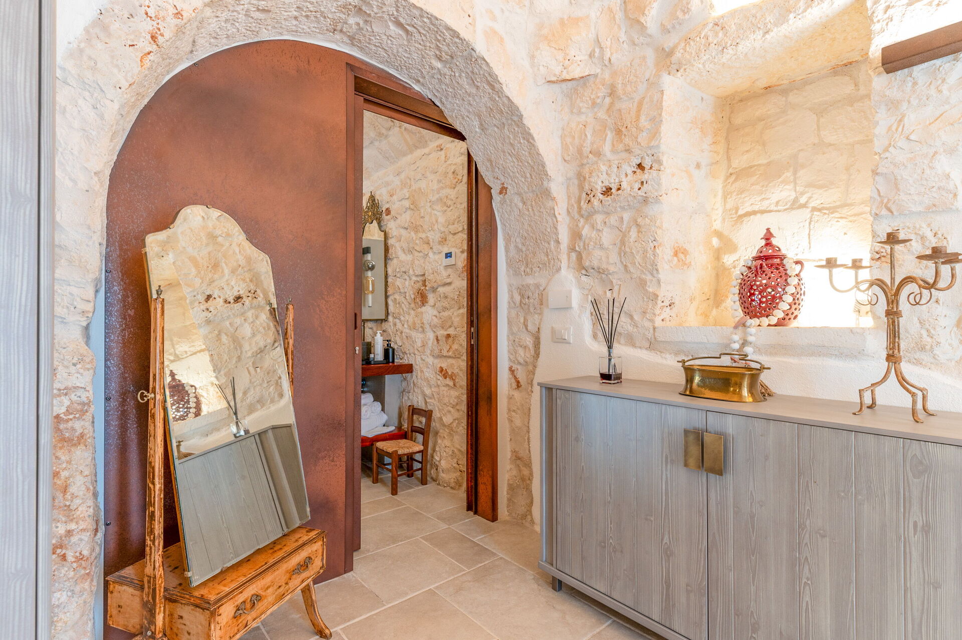 Trulli di Luccio ist ein Trullo mit privatem Pool zur Ferienvermietung in Apulien, in der Landschaft der berühmten "weißen Stadt" Ostuni. Dieses charakteristische traditionelle apulische Anwesen liegt eingebettet in eine herrliche ländliche Umgebung inmitten jahrhundertealter Olivenbäume; wenn Sie einen Urlaub im Zeichen von Ruhe und Natur suchen, ist dieses Anwesen perfekt für Ihre Bedürfnisse. Im Inneren wurde es geschmackvoll und schlicht eingerichtet, wobei ein Kontrast zwischen klassischem Stil und traditionellen Materialien wie lokalem Stein und Holz geschaffen wurde. Die gemütlichen Räume sind mit jedem Komfort ausgestattet und bieten Platz für bis zu 6 Personen in 3 Schlafzimmern. Im Außenbereich verfügt das Anwesen neben einem schönen Pool zur exklusiven Nutzung über großzügige Bereiche für das Leben im Freien: Eine große Veranda am Pool mit Außenküche, Grill und einem schönen Entspannungsbereich steht den Gästen zur Verfügung. Trulli di Luccio liegt strategisch günstig nur 8 km von Ostuni entfernt. Von hier aus können Sie bequem die wichtigsten touristischen Ziele der Region erkunden: die Strände von Torre Santa Sabina und Baia dei Camerini, das Naturschutzgebiet Torre Guaceto sowie die berühmten historischen Zentren wie Alberobello, Locorotondo, Carovigno und Polignano a Mare.