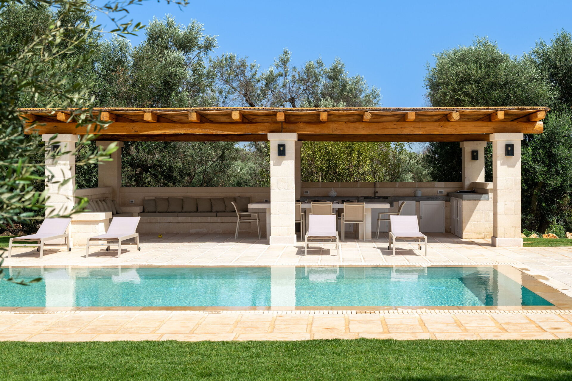 - Gazebo mit Pergola, ausgestattet für Mahlzeiten im Freien mit Außenküche und Ruhebereich