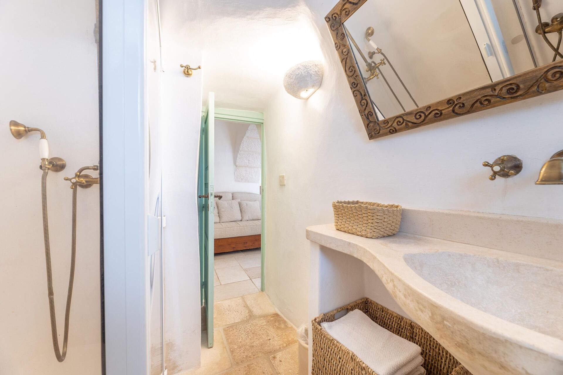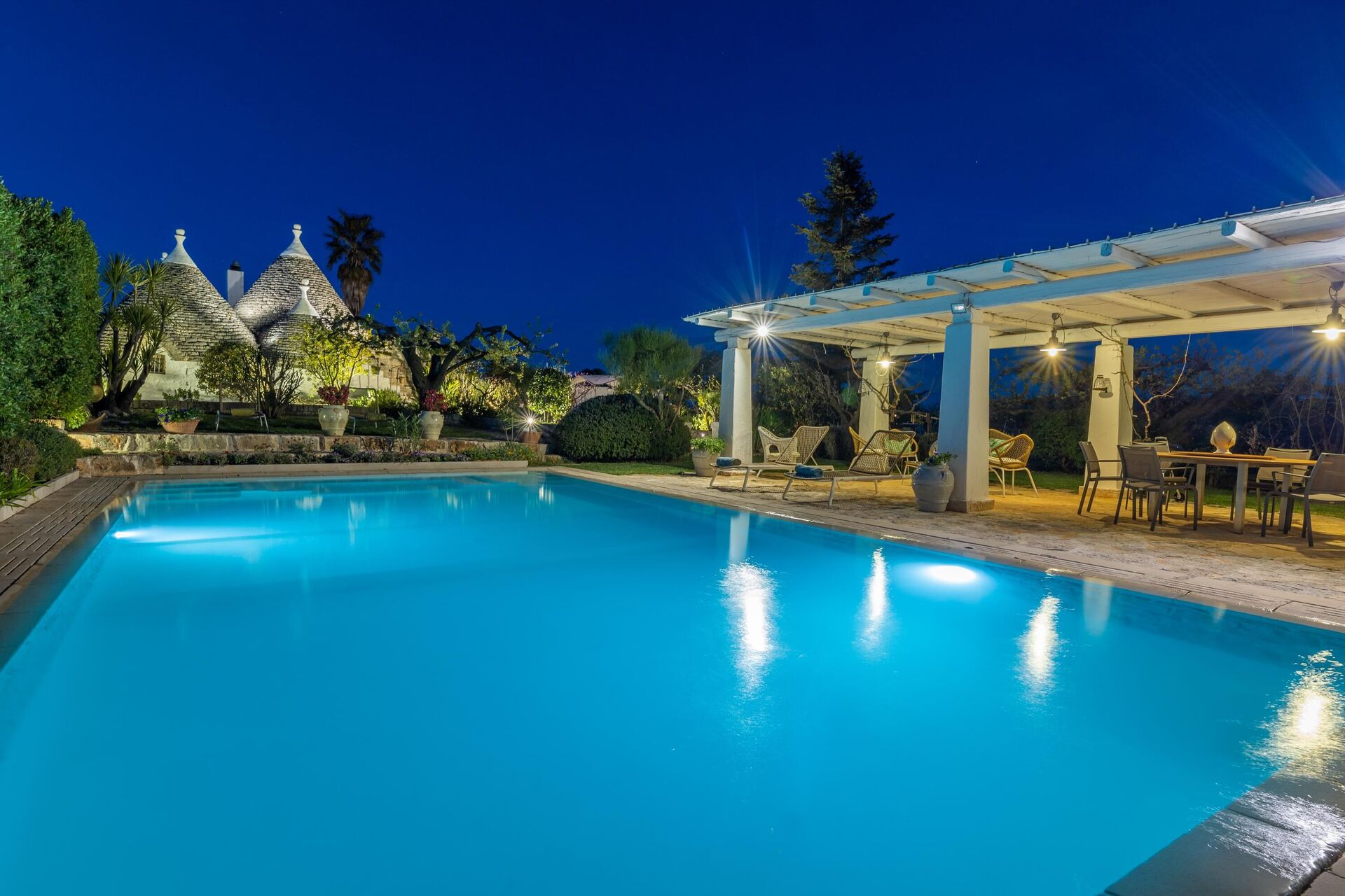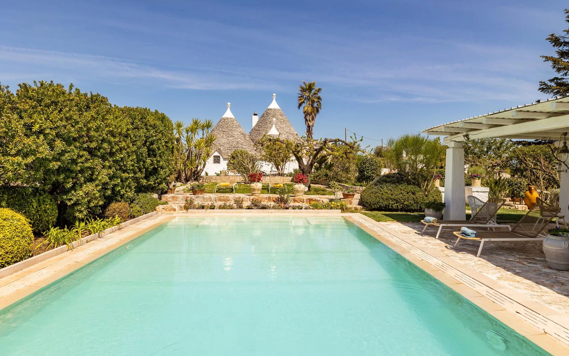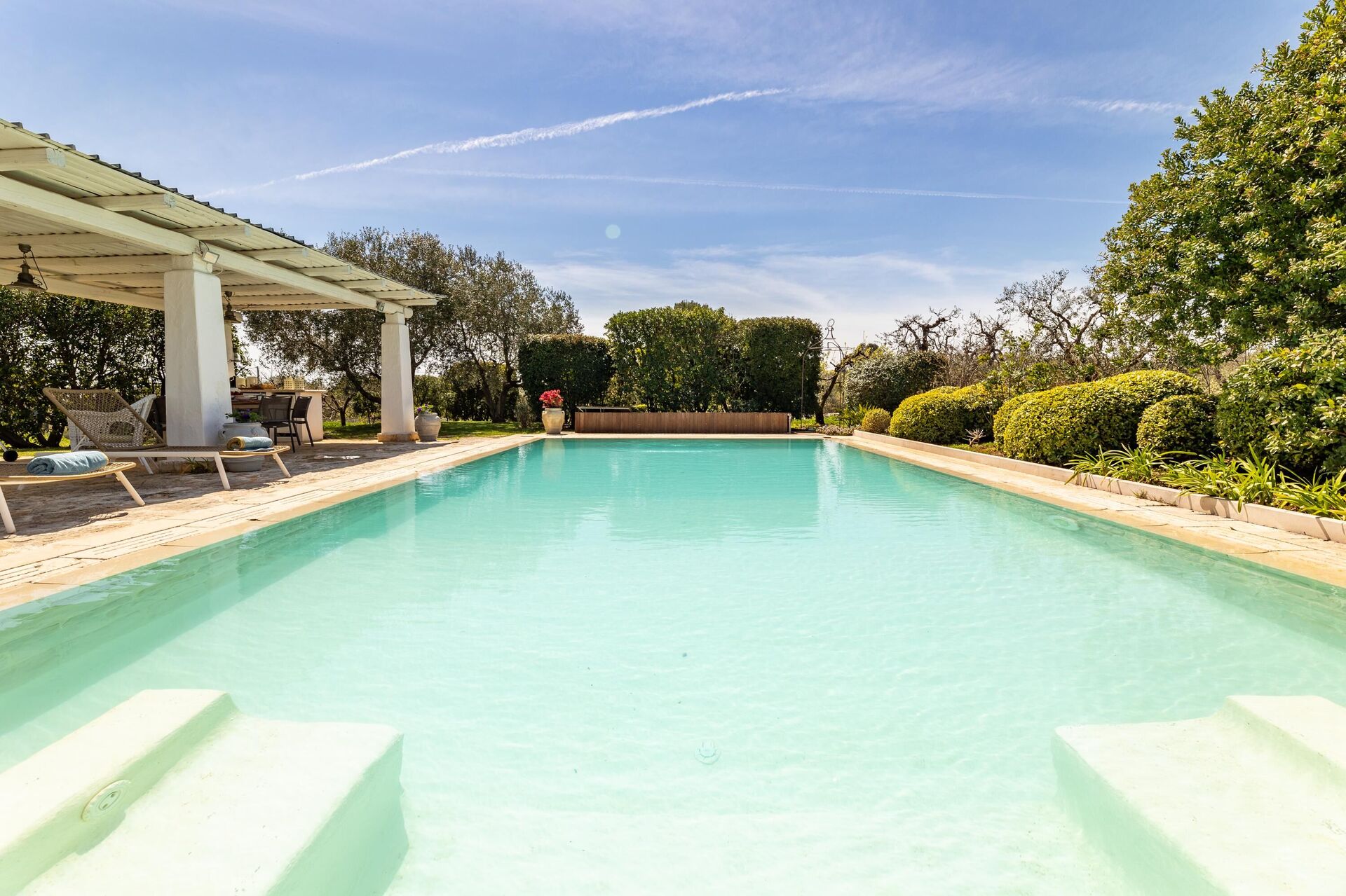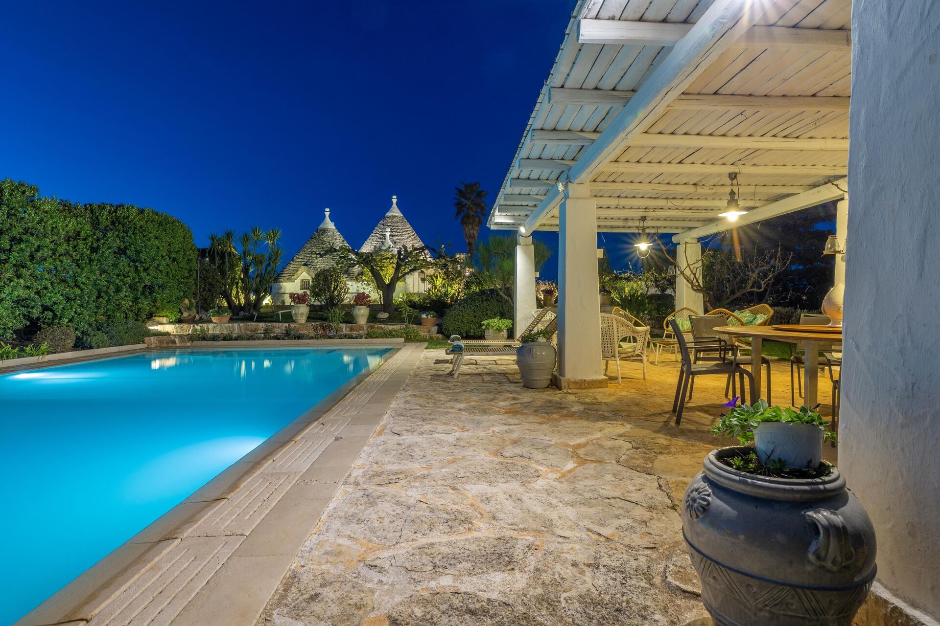 Die Innenräume sind geschmackvoll und minimalistisch eingerichtet, wobei die ursprünglichen Merkmale des Trullos erhalten sind. Umgeben von einem großen Garten von ca. 1000 m2 mit Bäumen und Pflanzen der mediterranen Macchia verfügt die herrliche Mietvilla über ein elegantes privates Schwimmbad zur exklusiven Nutzung der Gäste, das durch einen raffinierten Steinpfad mit der Villa verbunden ist.