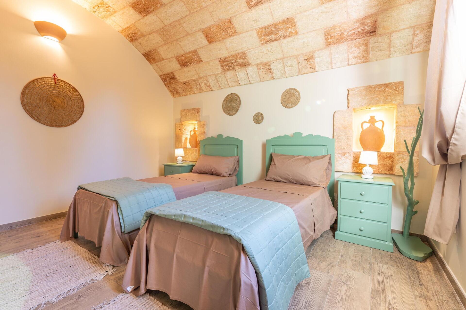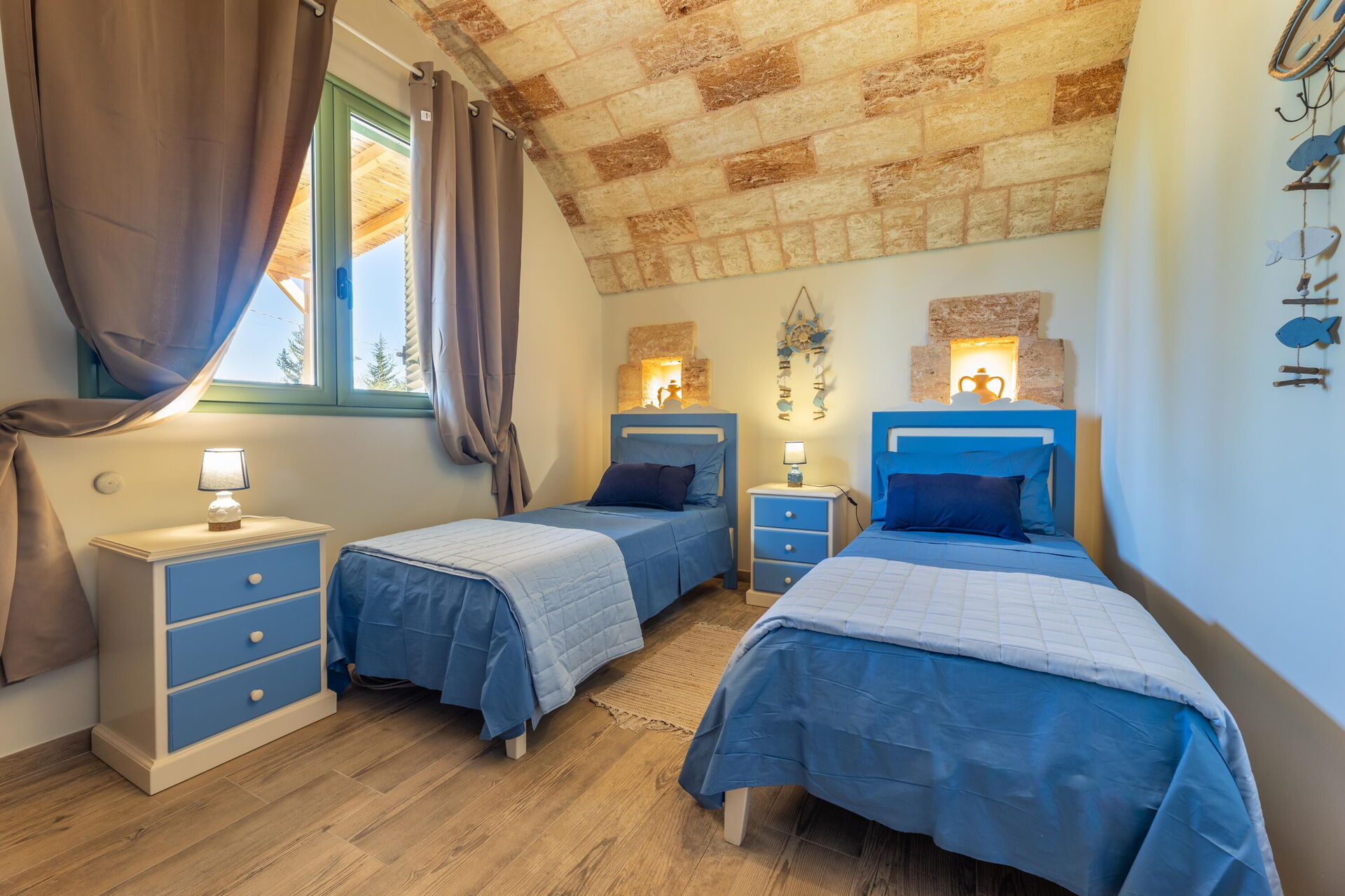 Die Villa Renedda ist ein Neubau (Baujahr 2025) auf einer Etage mit drei Schlafzimmern und zwei Badezimmern und bietet bequem Platz für bis zu sechs Personen. Die Villa ist geschmackvoll eingerichtet und besticht durch Gewölbedecken und charakteristische freiliegende Tuffsteinziegel. Die Villa Renedda ist von einem großen Garten mit Bäumen und mediterranen Pflanzen umgeben.