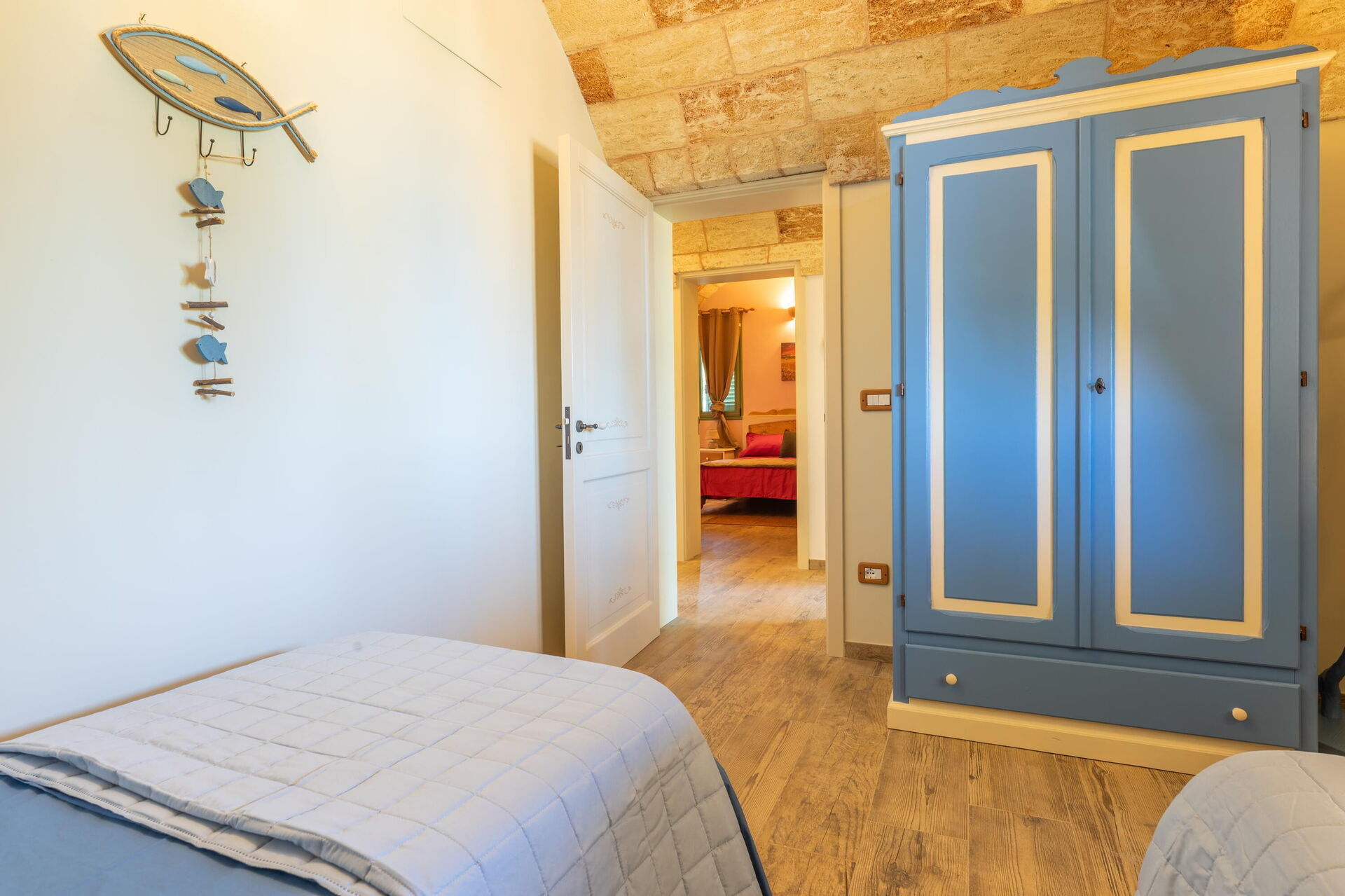 Dieses wunderschöne Anwesen bietet außerdem ein exklusiv für Gäste reserviertes Schwimmbad, eine Veranda mit Essbereich im Freien und verschiedene Entspannungszonen. Dank der strategischen Lage dieser wunderschönen Ferienvilla in Apulien erreicht man die bekannten Badeorte dieses berühmten Küstenabschnitts, der als „Malediven von Salento“ bekannt ist, sehr gut. Während des Urlaubs kann man in die Kultur Apuliens eintauchen, die reich an Traditionen und köstlichen regionalen Gerichten ist.