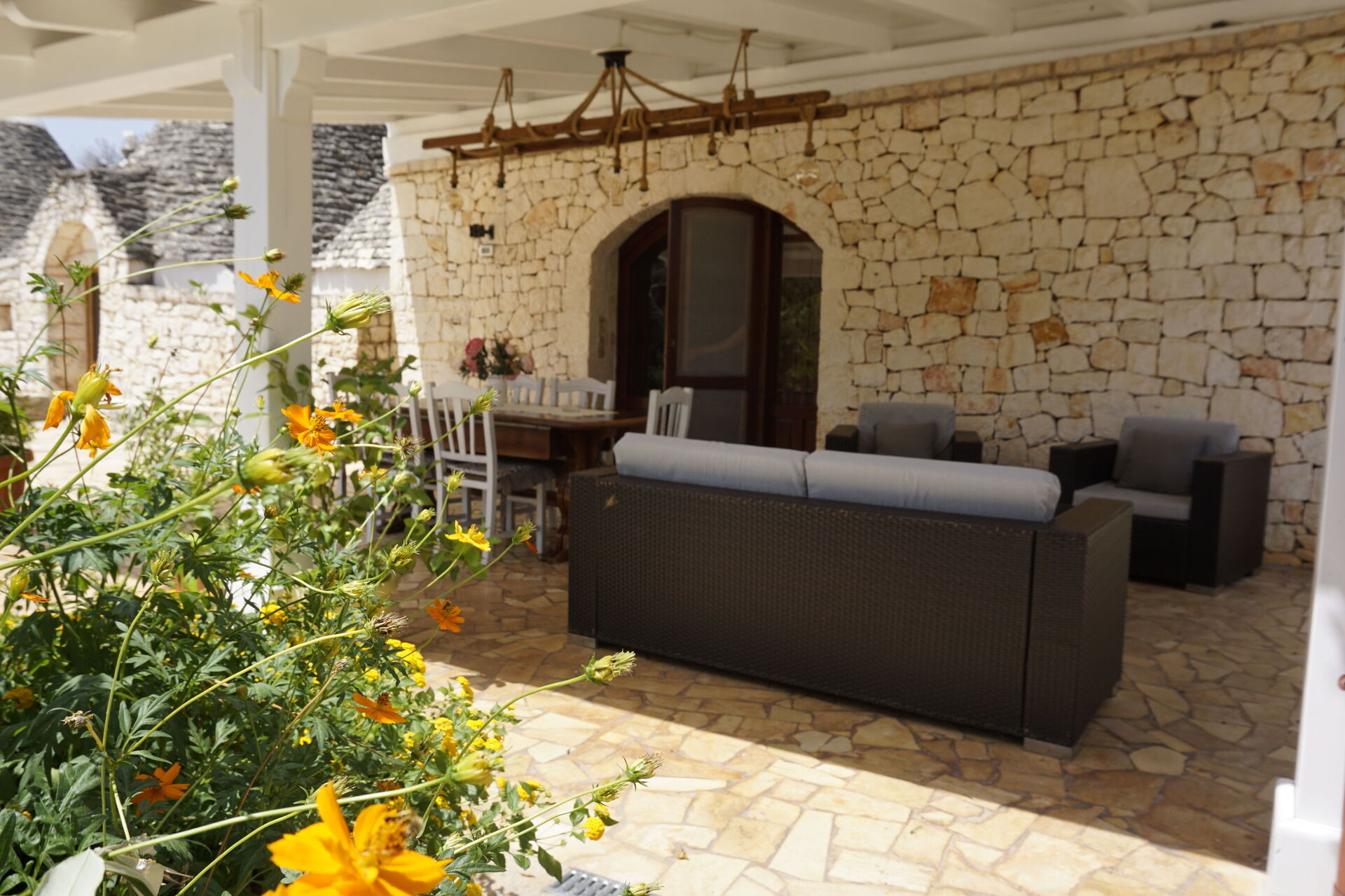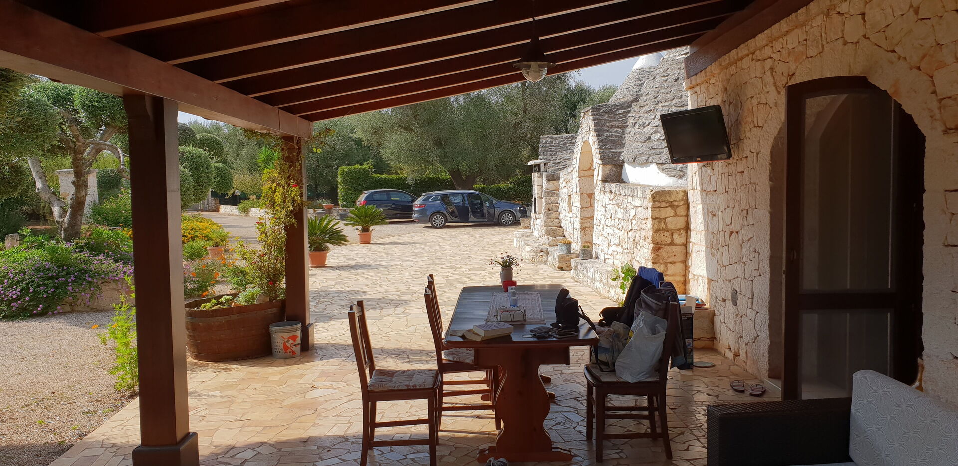 Trullo Santo Stefano is a wonderful place with a beautiful garden, full of flowers, trees and vegetables, we 're allowed to take for our own cooking.