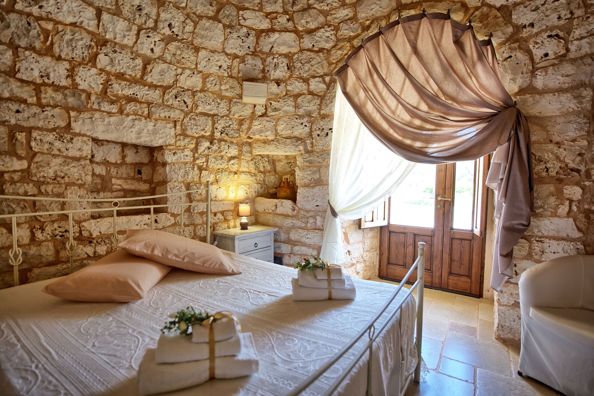 Trullo Santo Stefano is beautifully restored and lovingly maintained, with a big, sparkling clean swimming pool next to a BBQ and wood-fired pizza oven (and plenty of olive wood for fuel). The peaceful silence of the surrounding olive groves is perfect for restful sleep, with the strong WiFi signal the only reminder of a busier world beyond its gates.