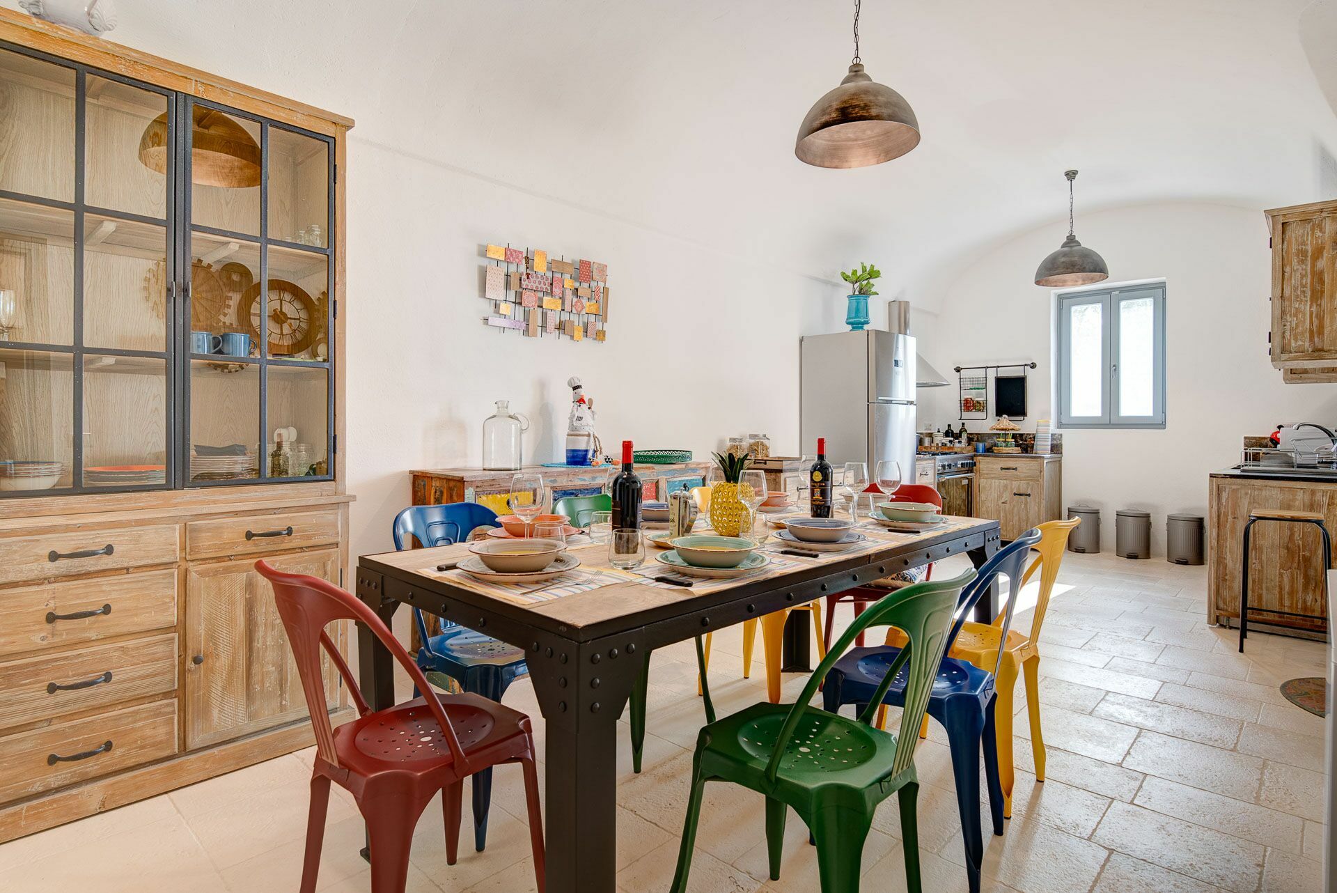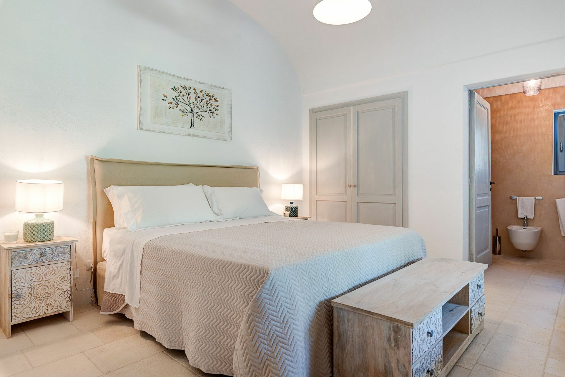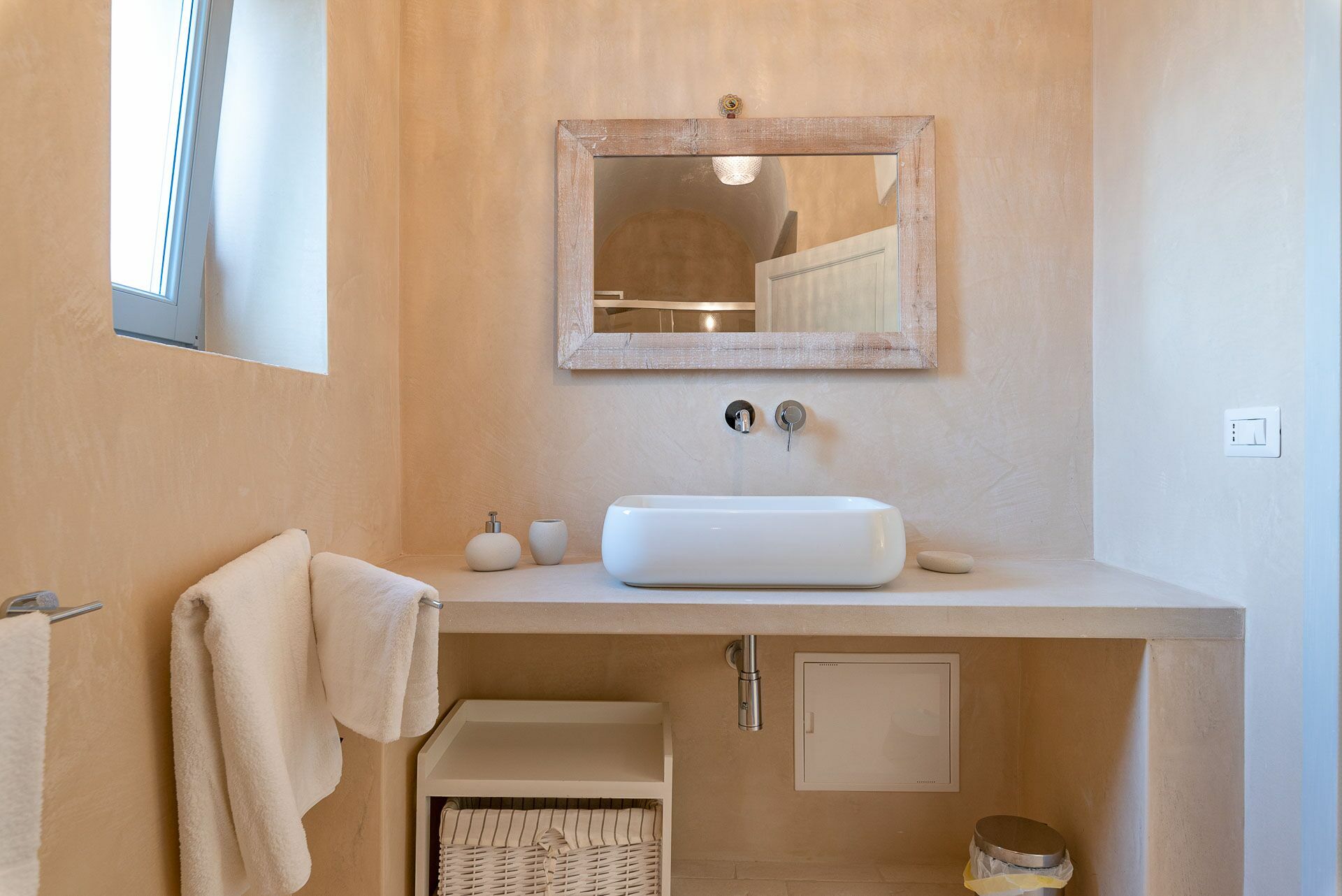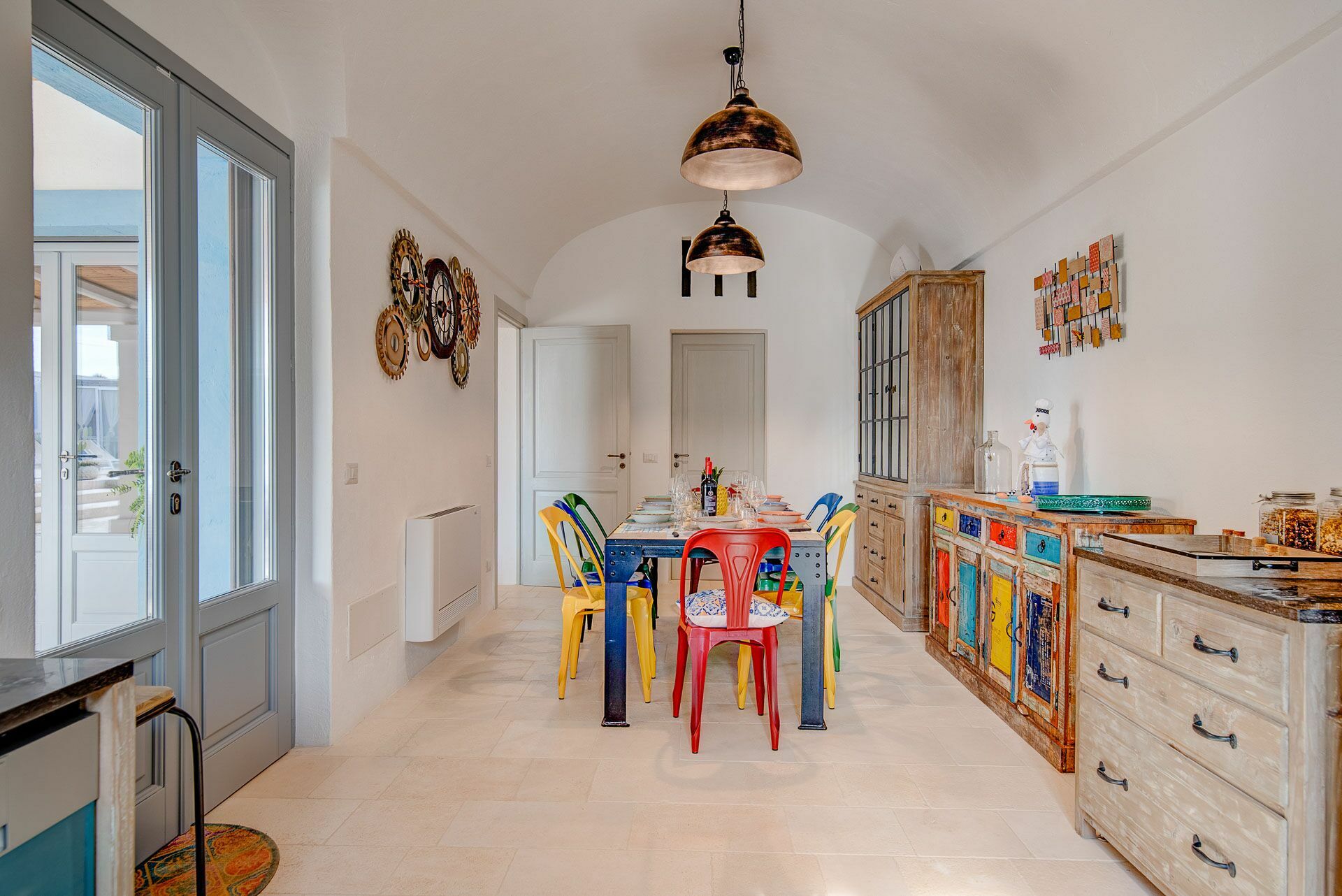 Besonders interessant ist die schöne Gestaltung der Innenräume des Gutshofes, die eine perfekte Kombination aus zeitgenössischem Design und ländlicher Architektur schaffen. Dank der 5 Doppelzimmer bietet die Villa Platz für bis zu 10 Personen in einer einladenden und funktionalen Umgebung. Die Innenräume sind gut aufgeteilt und hell: Dank der großen Säle mit Tuffgewölbe werden auch Regentage kein Problem für die Gäste sein, denn sie können wunderbare Momente in Gesellschaft von Freunden und Familie in schönster Atmosphäre verbringen.