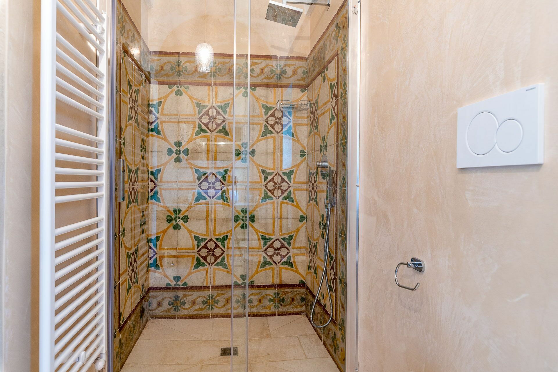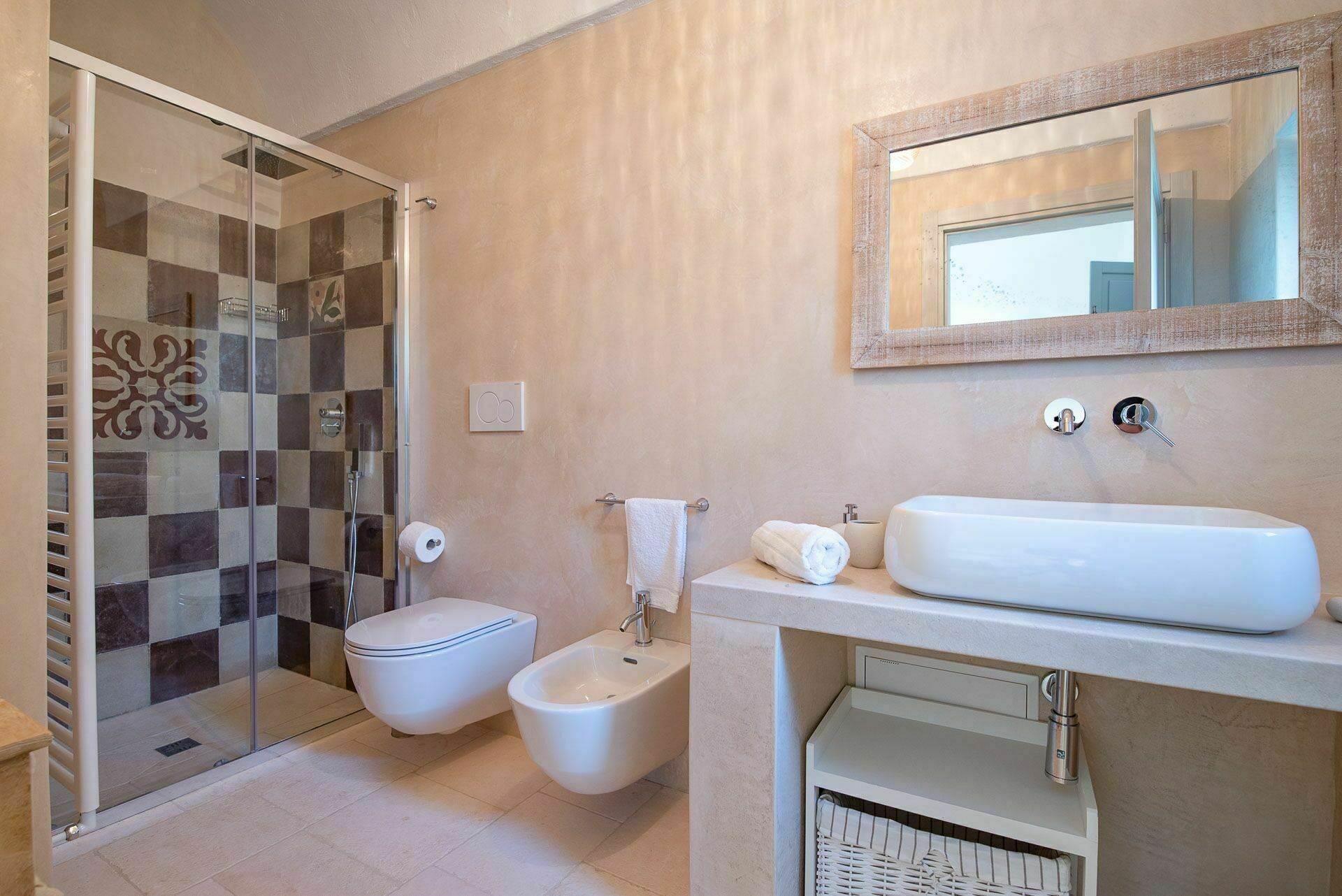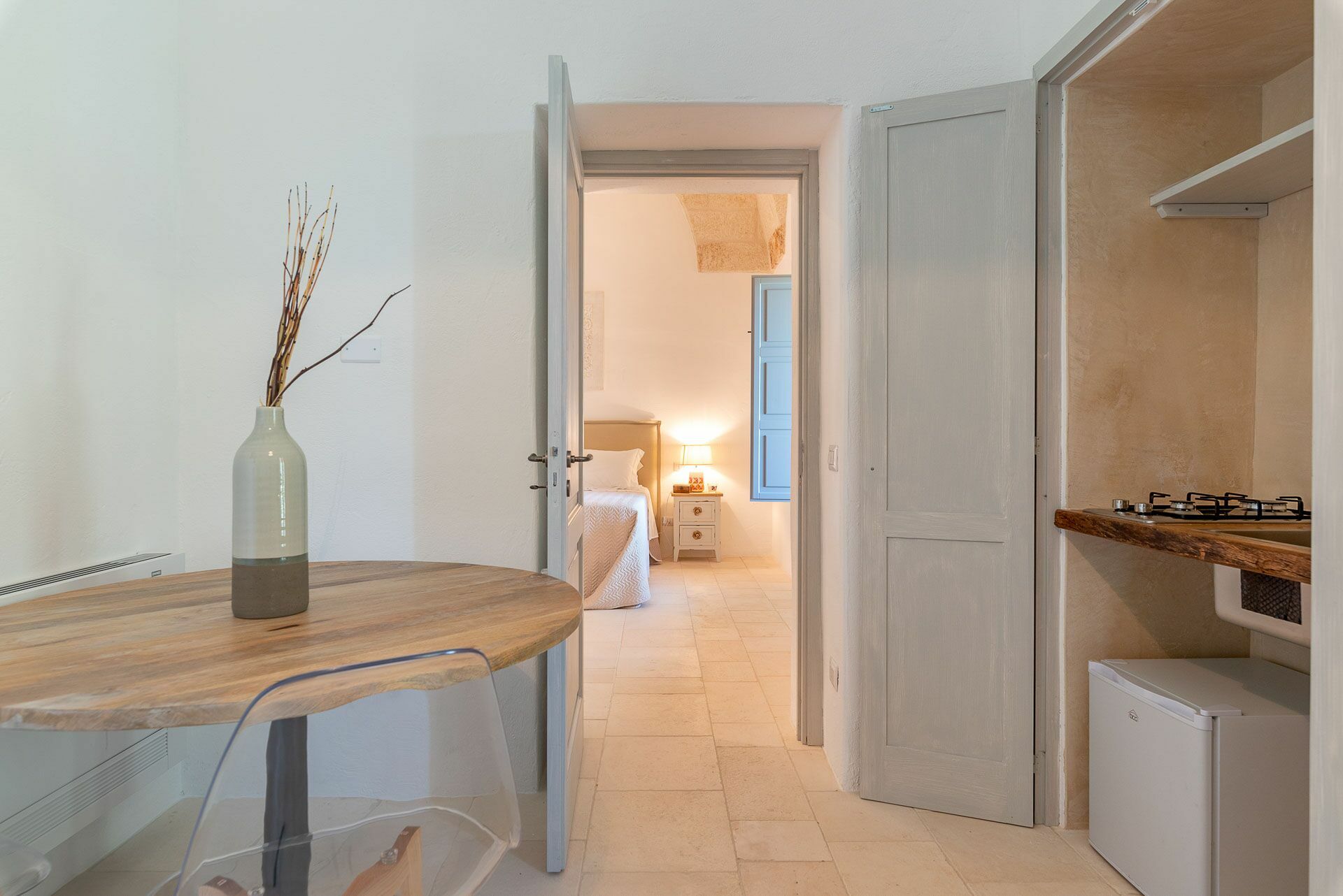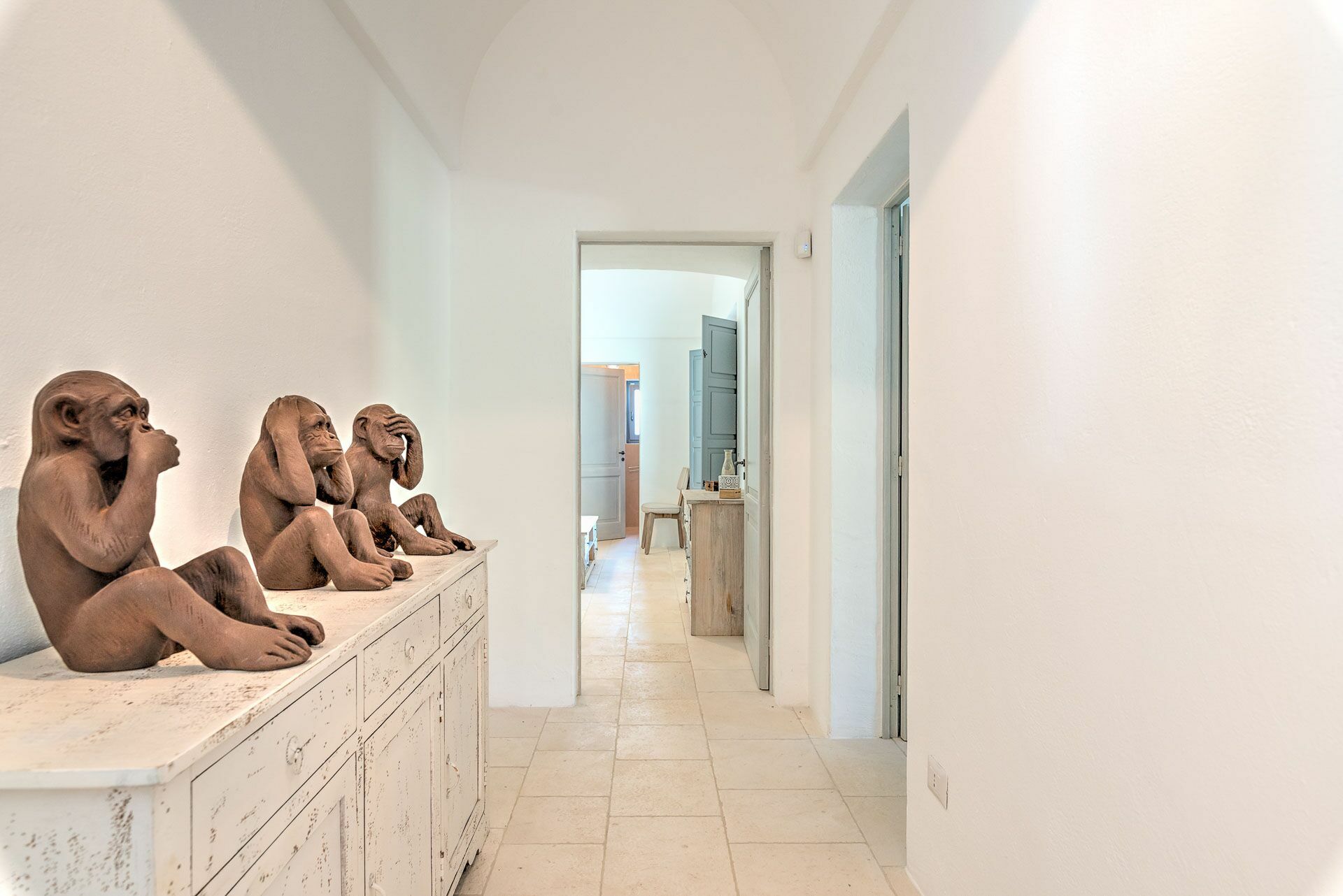 Besonders interessant ist die schöne Gestaltung der Innenräume des Gutshofes, die eine perfekte Kombination aus zeitgenössischem Design und ländlicher Architektur schaffen. Dank der 5 Doppelzimmer bietet die Villa Platz für bis zu 10 Personen in einer einladenden und funktionalen Umgebung. Die Innenräume sind gut aufgeteilt und hell: Dank der großen Säle mit Tuffgewölbe werden auch Regentage kein Problem für die Gäste sein, denn sie können wunderbare Momente in Gesellschaft von Freunden und Familie in schönster Atmosphäre verbringen.