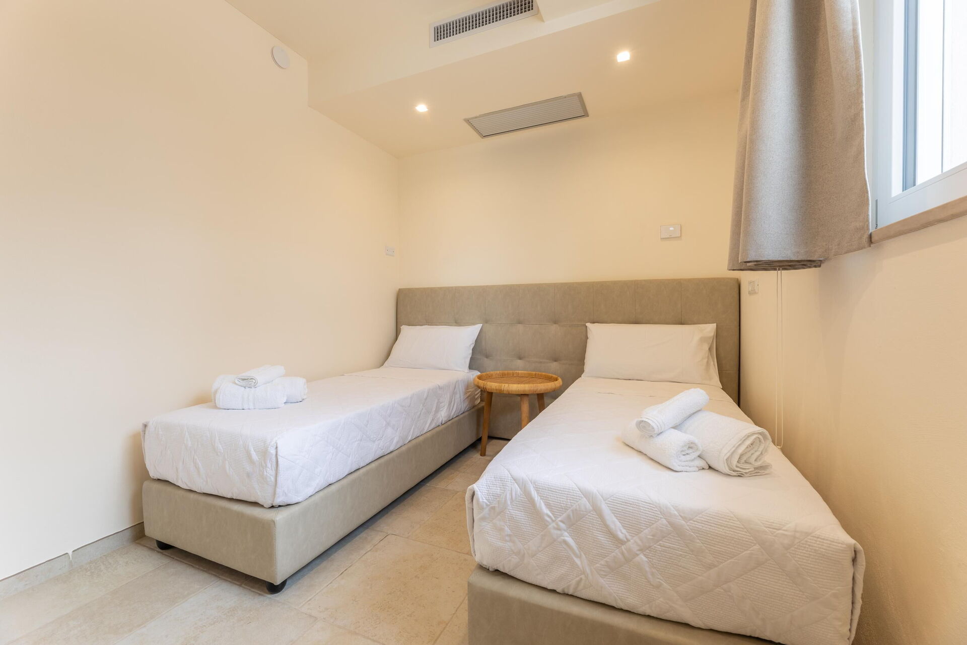Auf Anfrage (gegen eine zusätzliche Gebühr von 60 € pro Person und Tag) können zwei weitere Doppelzimmer im Obergeschoss genutzt werden (nur von außen zugänglich und nicht intern miteinander oder mit dem Rest der Villa verbunden). Jedes Schlafzimmer verfügt über ein eigenes Badezimmer mit Dusche und Zugang zum Balkon.