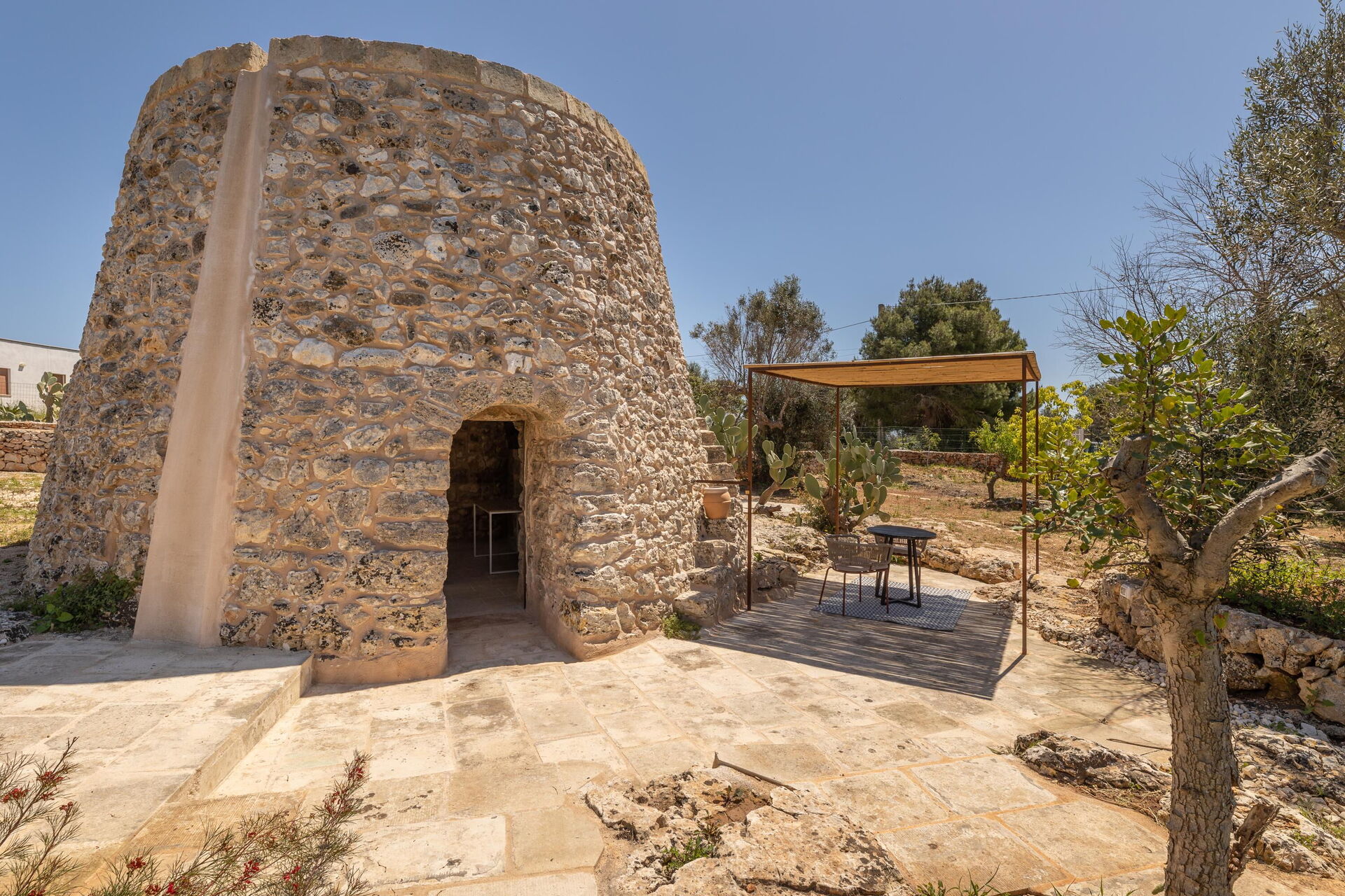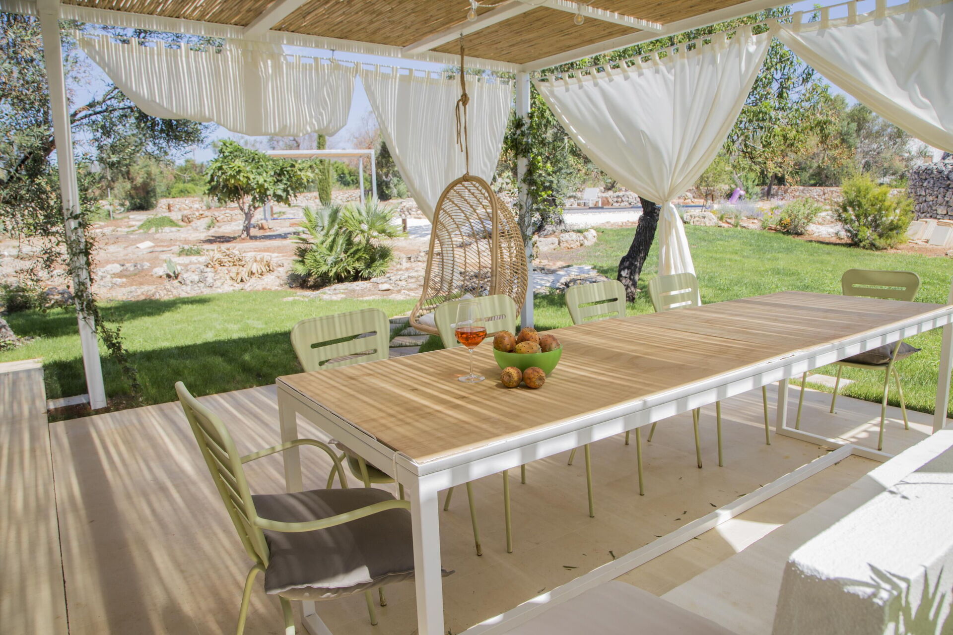 Trockenmauern und große Außenbereiche mit privatem Schwimmbad zeichnen dieses typisch apulische Anwesen aus. Ein Grillplatz und eine Veranda mit Tischen und Stühlen ermöglichen es den Gästen, leckere Grillabende mit Freunden und der Familie zu veranstalten und dabei die Ruhe rund um das Anwesen zu genießen.