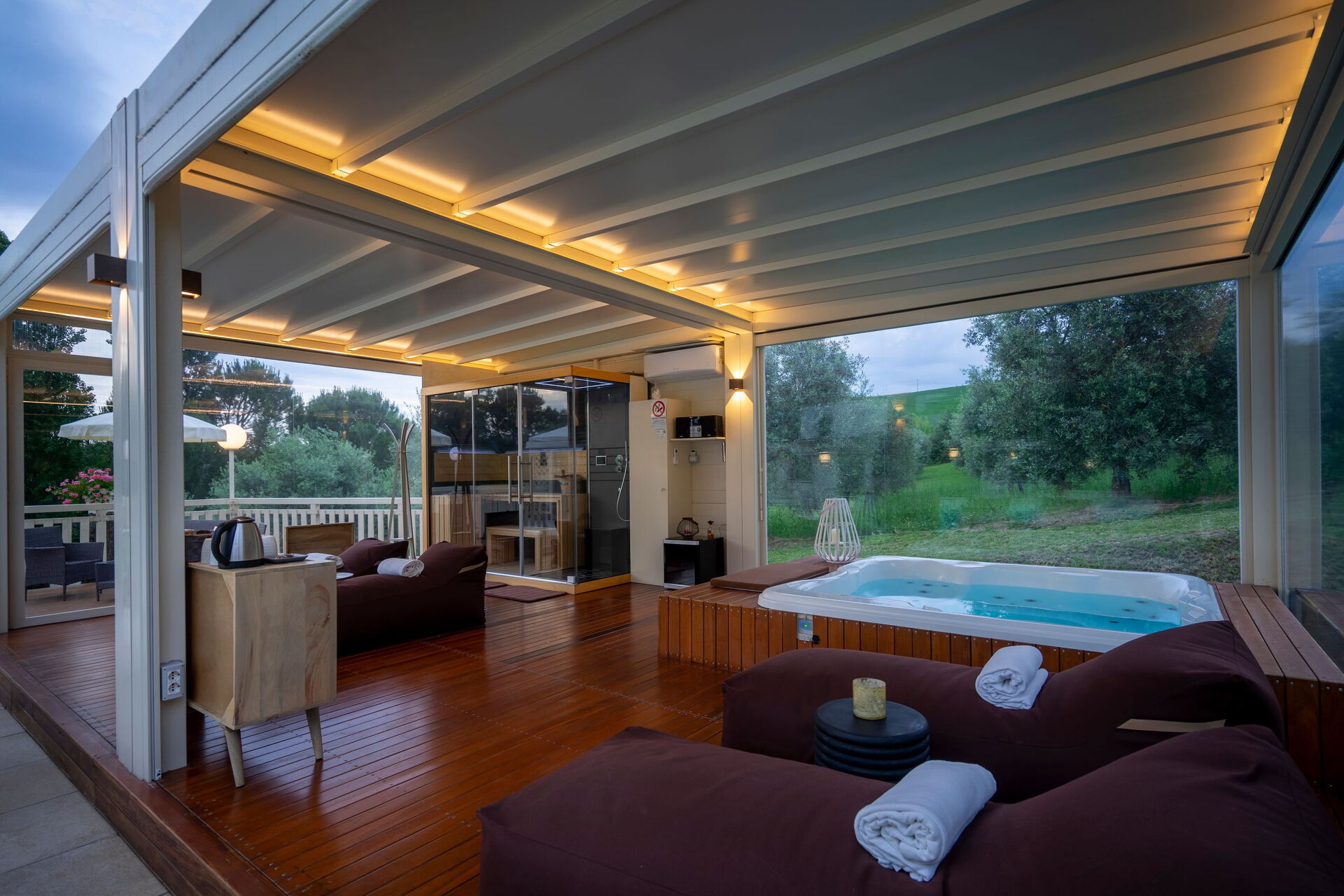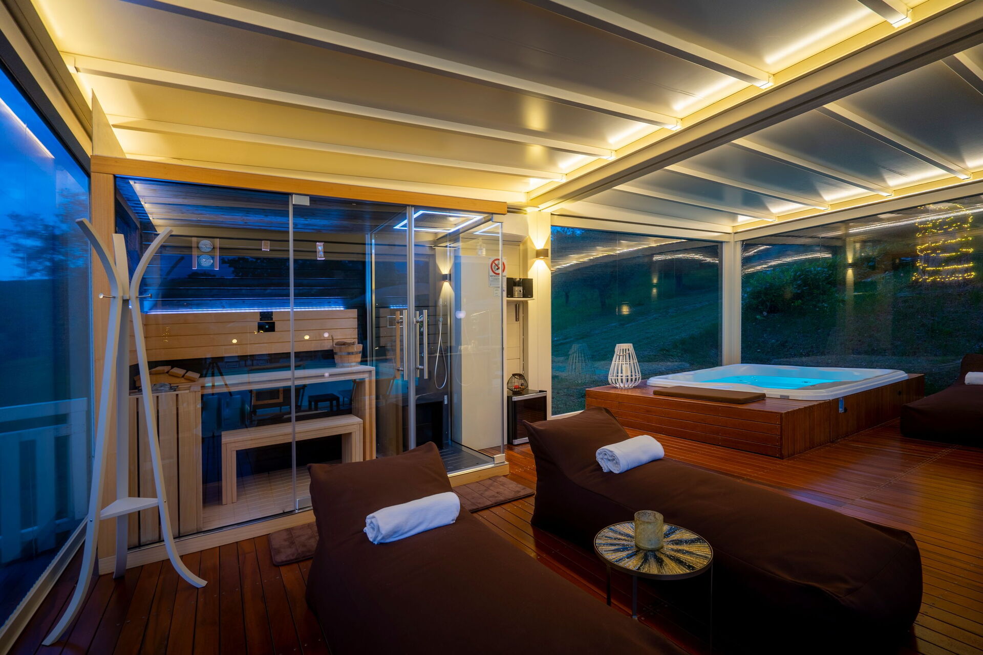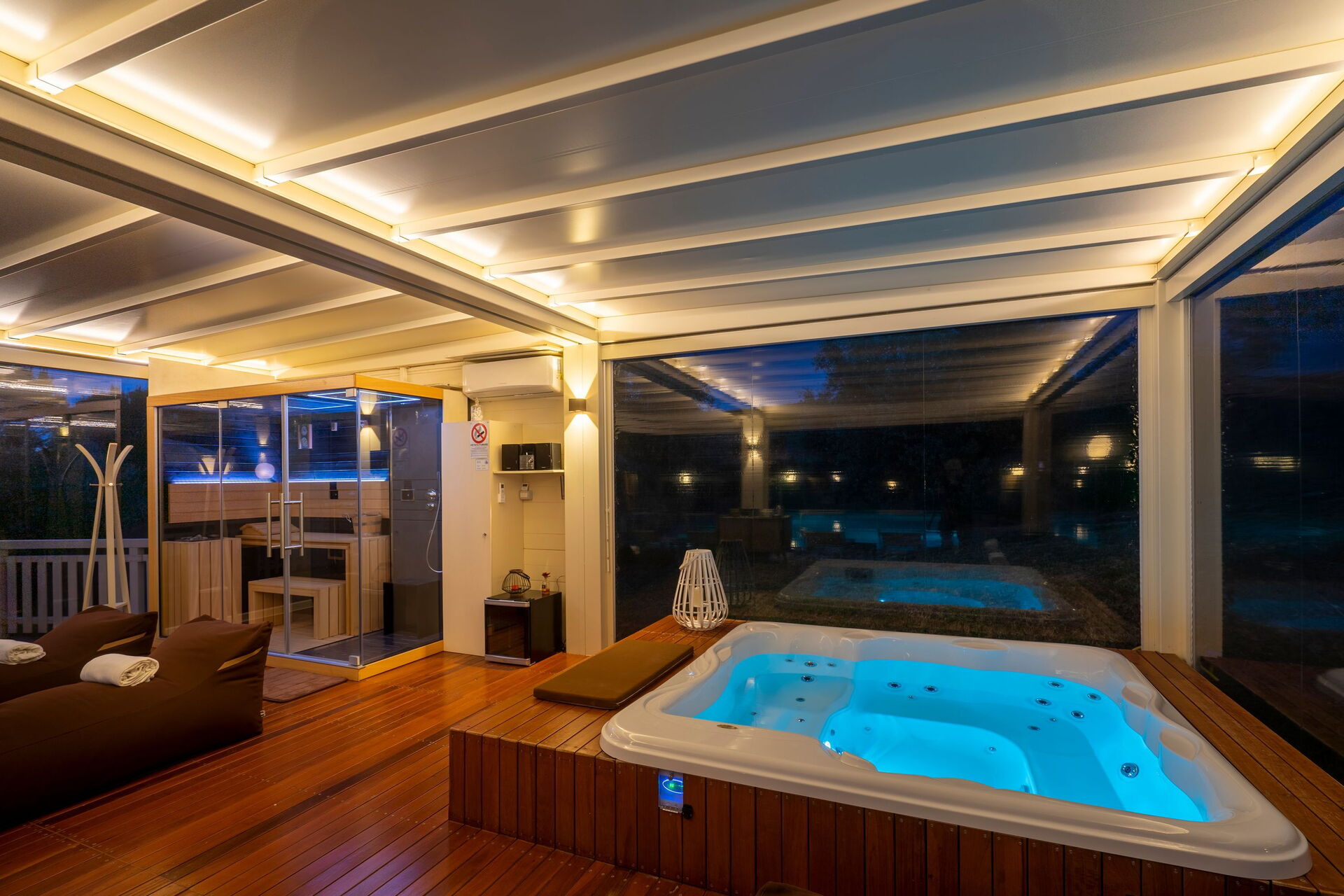 - Spa im Freien mit Sauna und Türkischem Bad von 14:00 bis 00:00 Uhr, Jacuzzi-Hydromassagewanne rund um die Uhr verfügbar