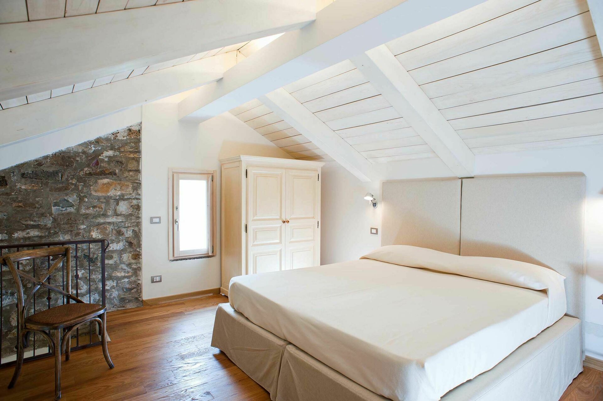Erster Stock: 1 Suite mit Wohnzimmer, Doppelbett, Bad mit Dusche und Zwischengeschoss mit 2 Einzelbetten mit Bad mit Badewanne, 1 Suite mit Wohnzimmer, Einzelschlafsofa, Bad mit Dusche, Terrasse und Zwischengeschoss mit Doppelbett und Bad, 1 Doppelzimmer mit Bad mit Dusche, 1 Doppelzimmer mit Bad mit Dusche und Terrasse.