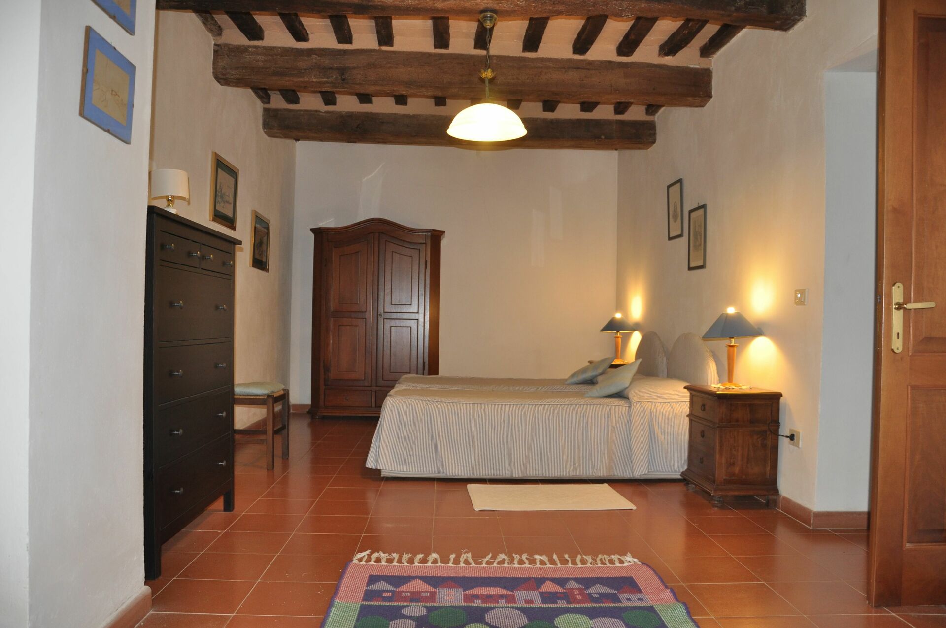 Erdgeschoss: Grosse Küche mit Essbereich, Doppelzimmer mit Ehebett, Doppelzimmer, Bad mit Badewanne.