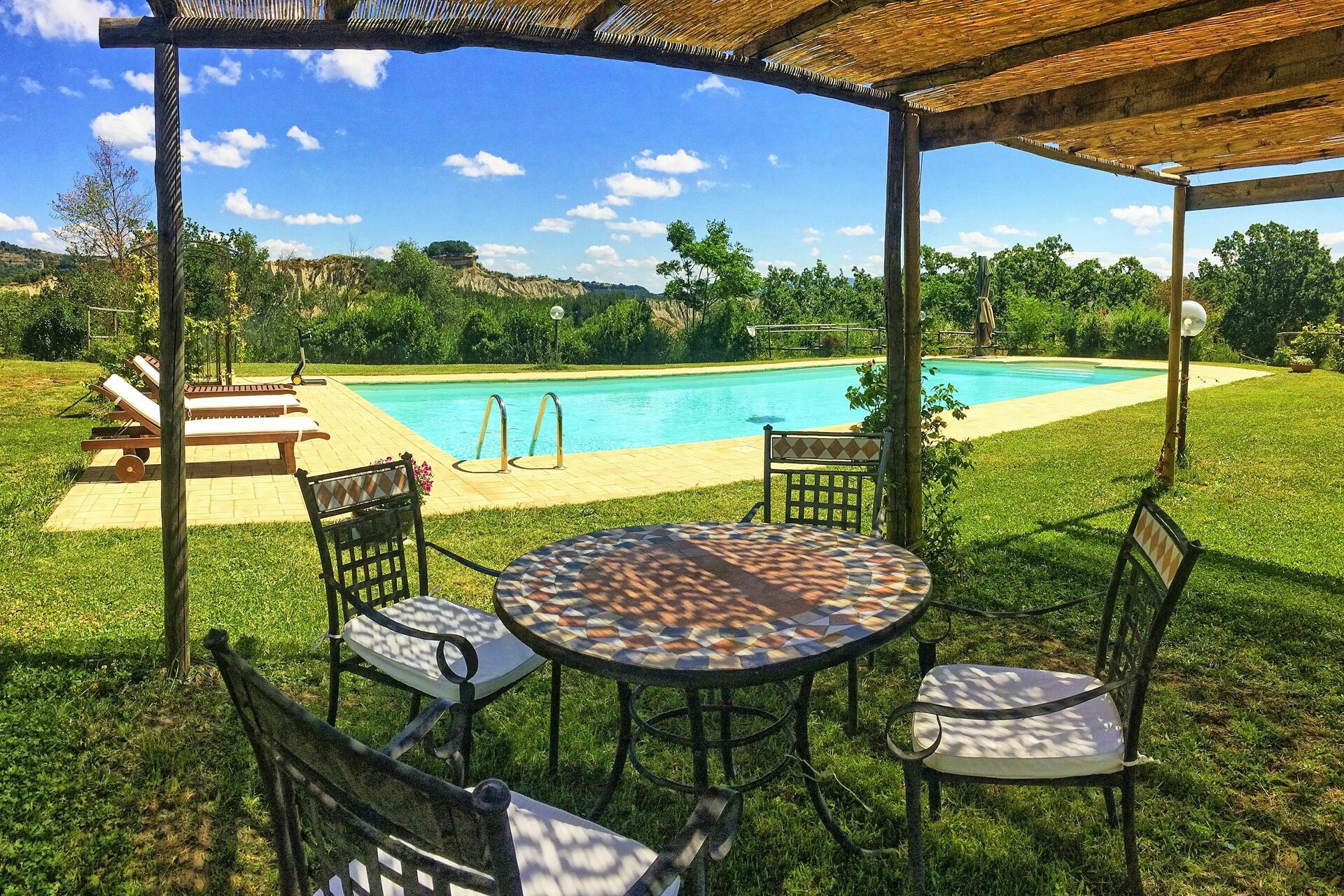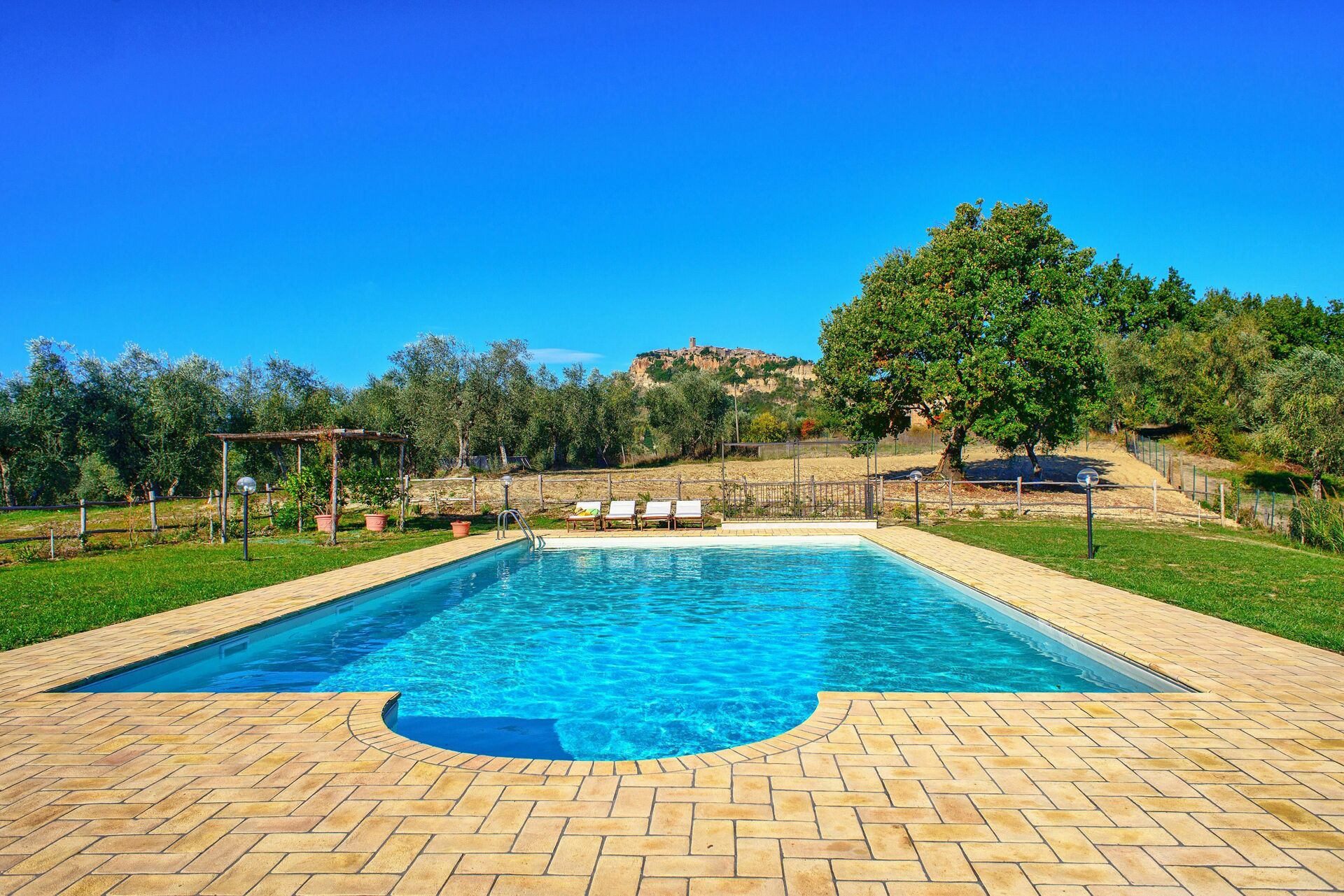 Villa in Panorama- Position mit privatem Schwimmbad vor der Altstadt des wunderschönen Ortes Civita di Bagnoregio, im Norden des Lazium.