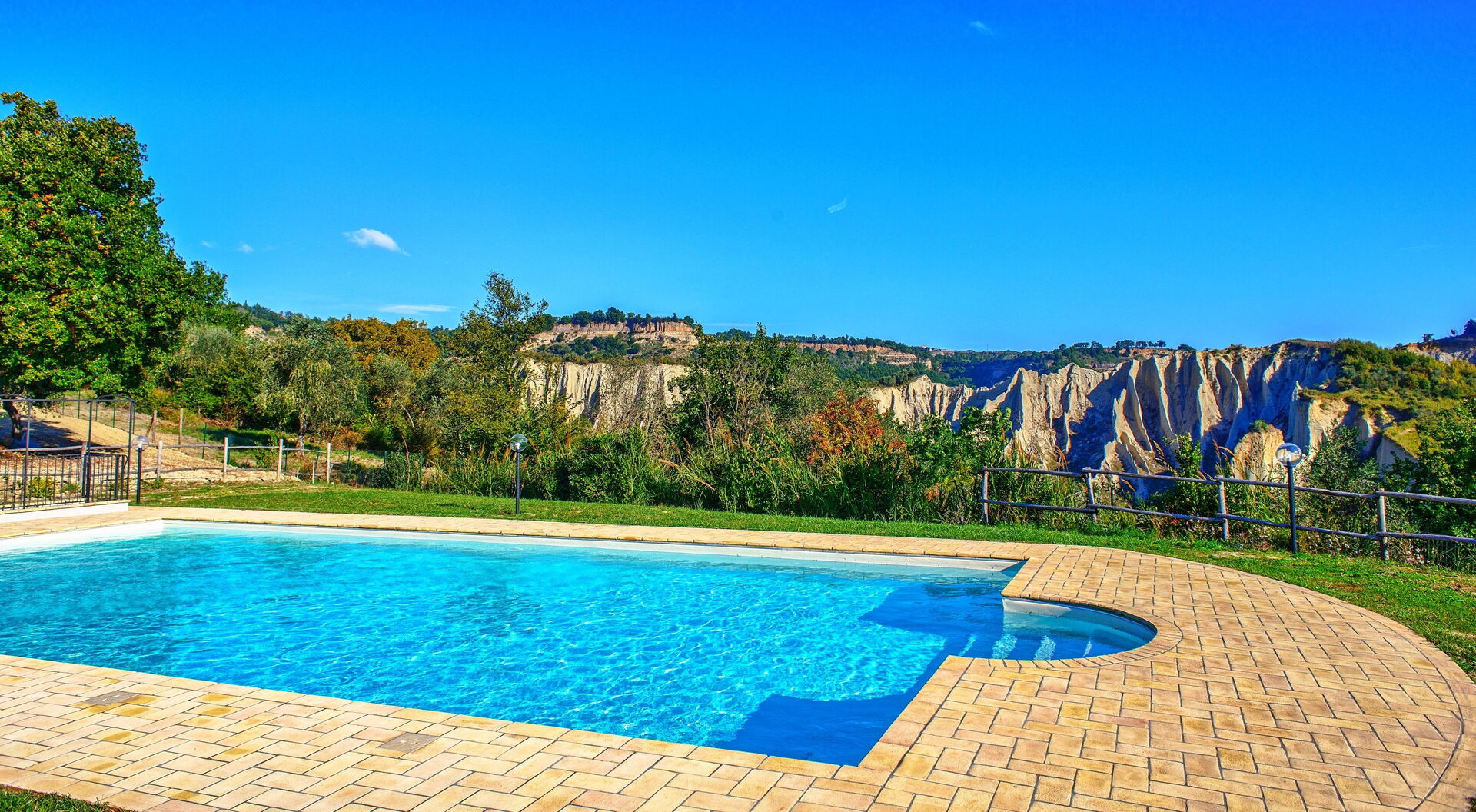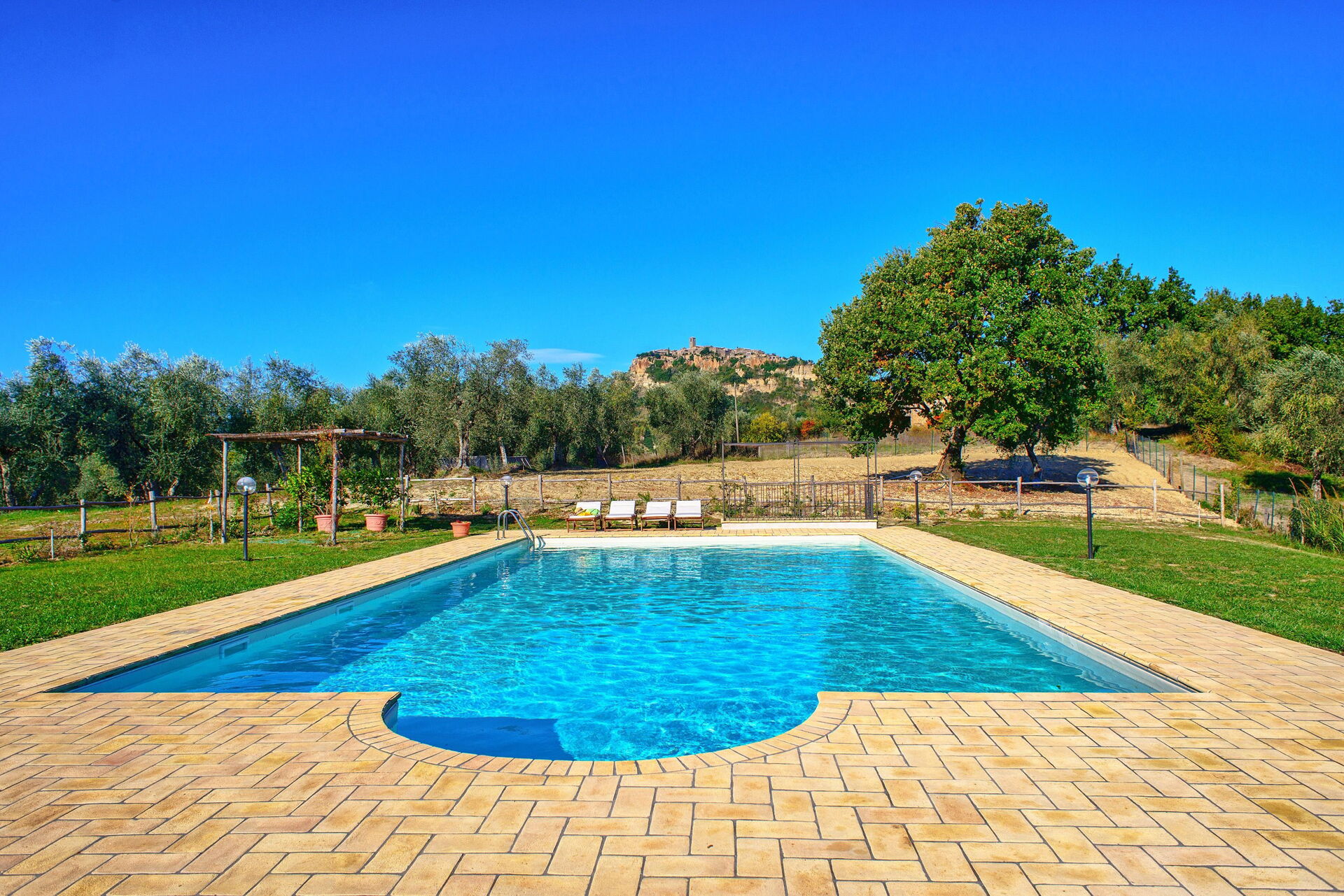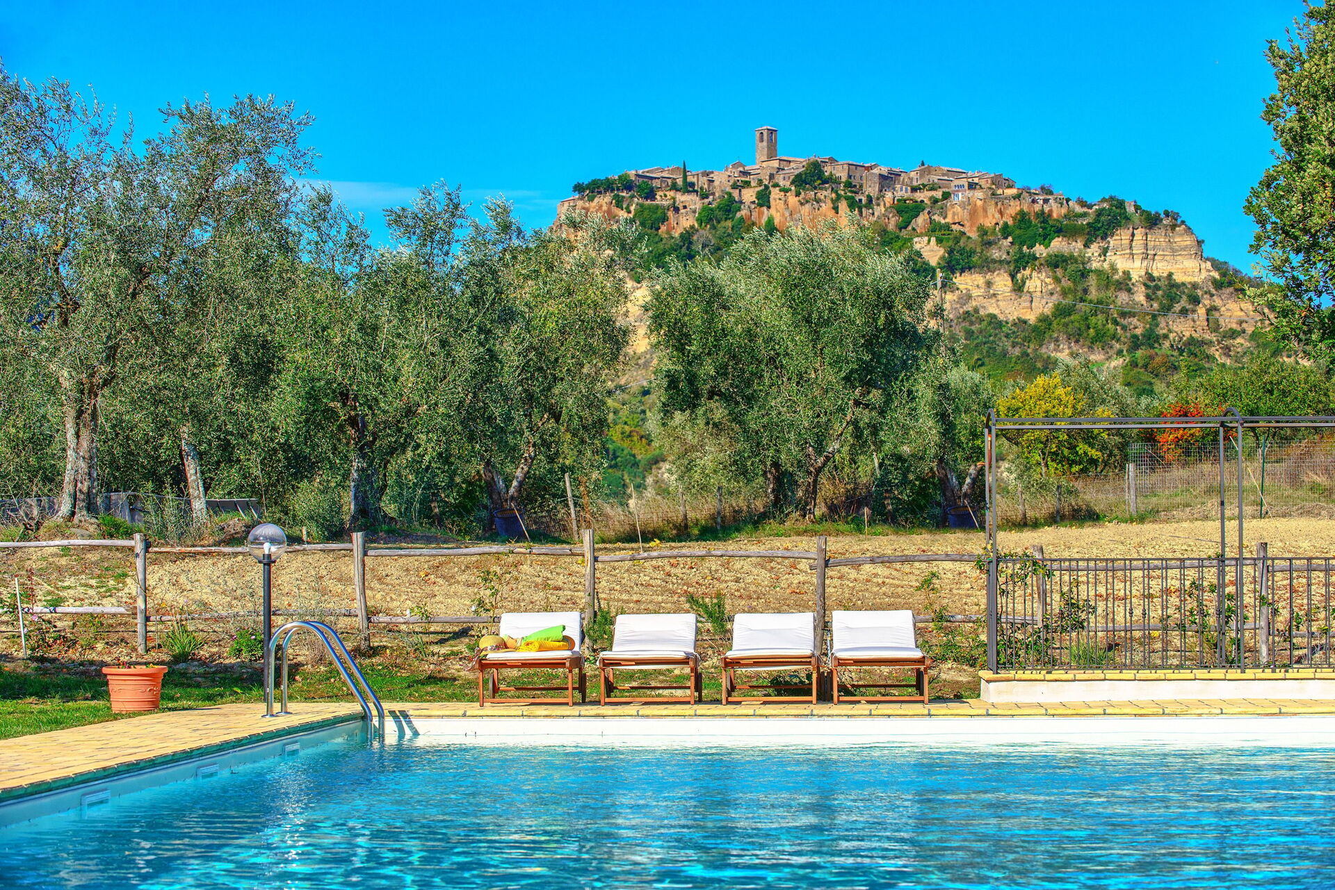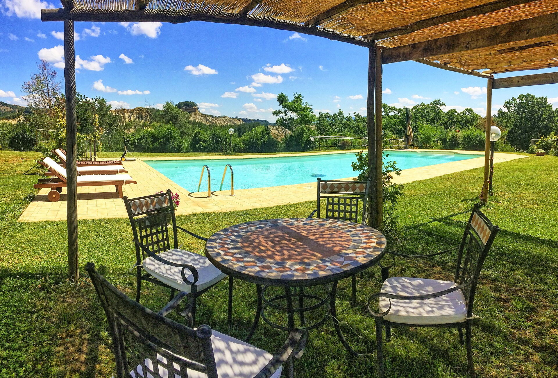 Villa in Panorama- Position mit privatem Schwimmbad vor der Altstadt des wunderschönen Ortes Civita di Bagnoregio, im Norden des Lazium.