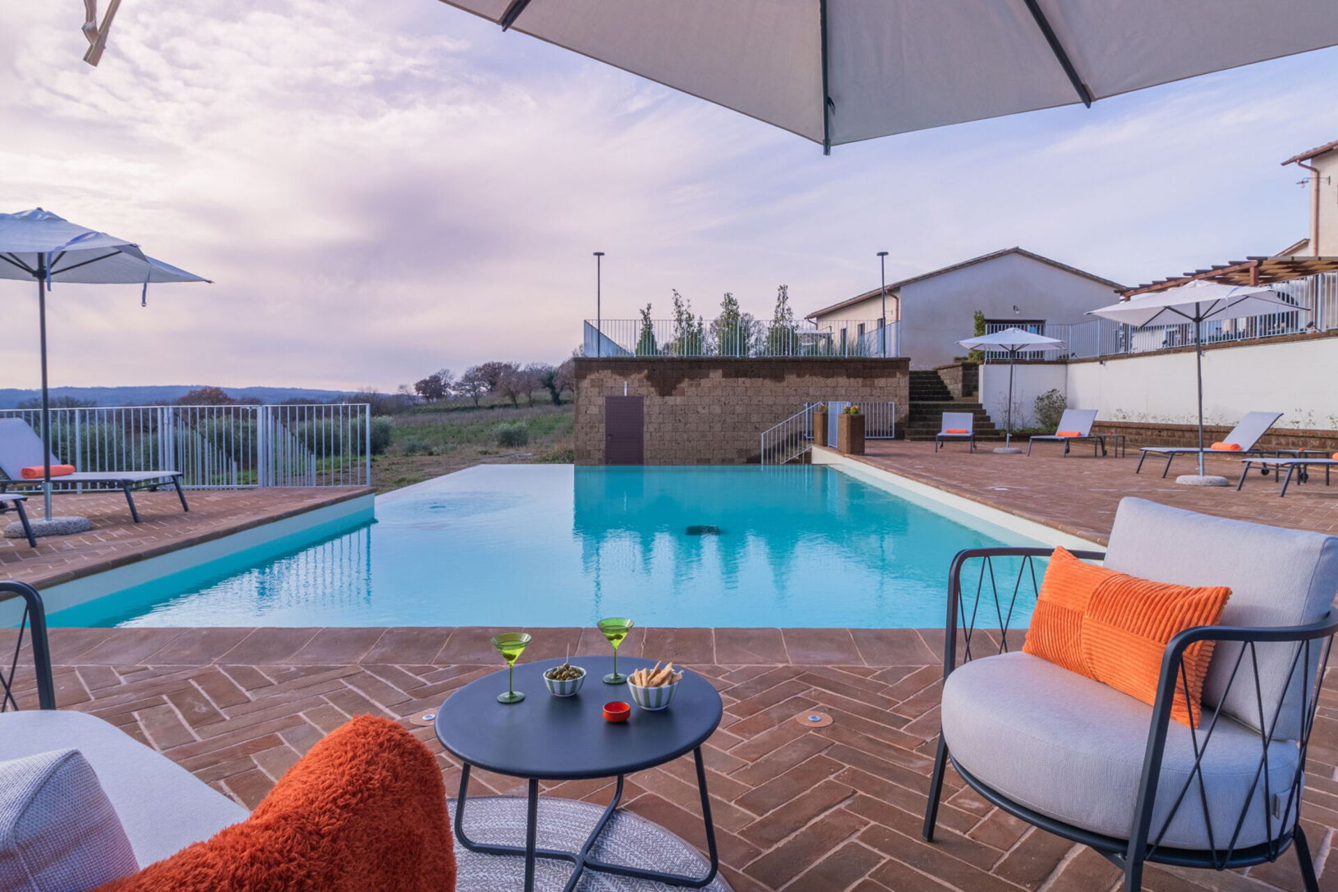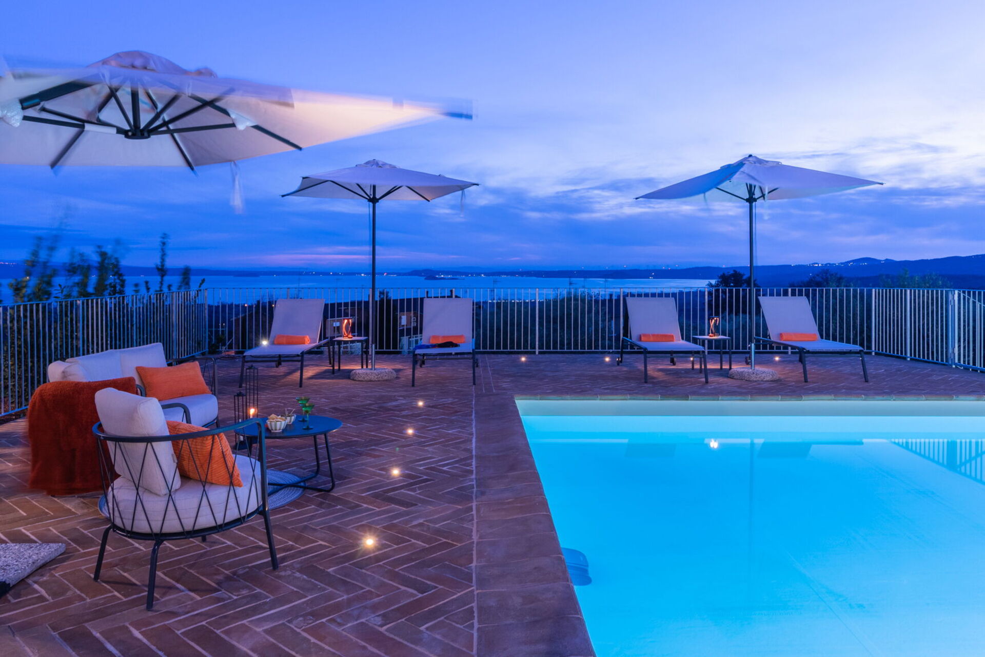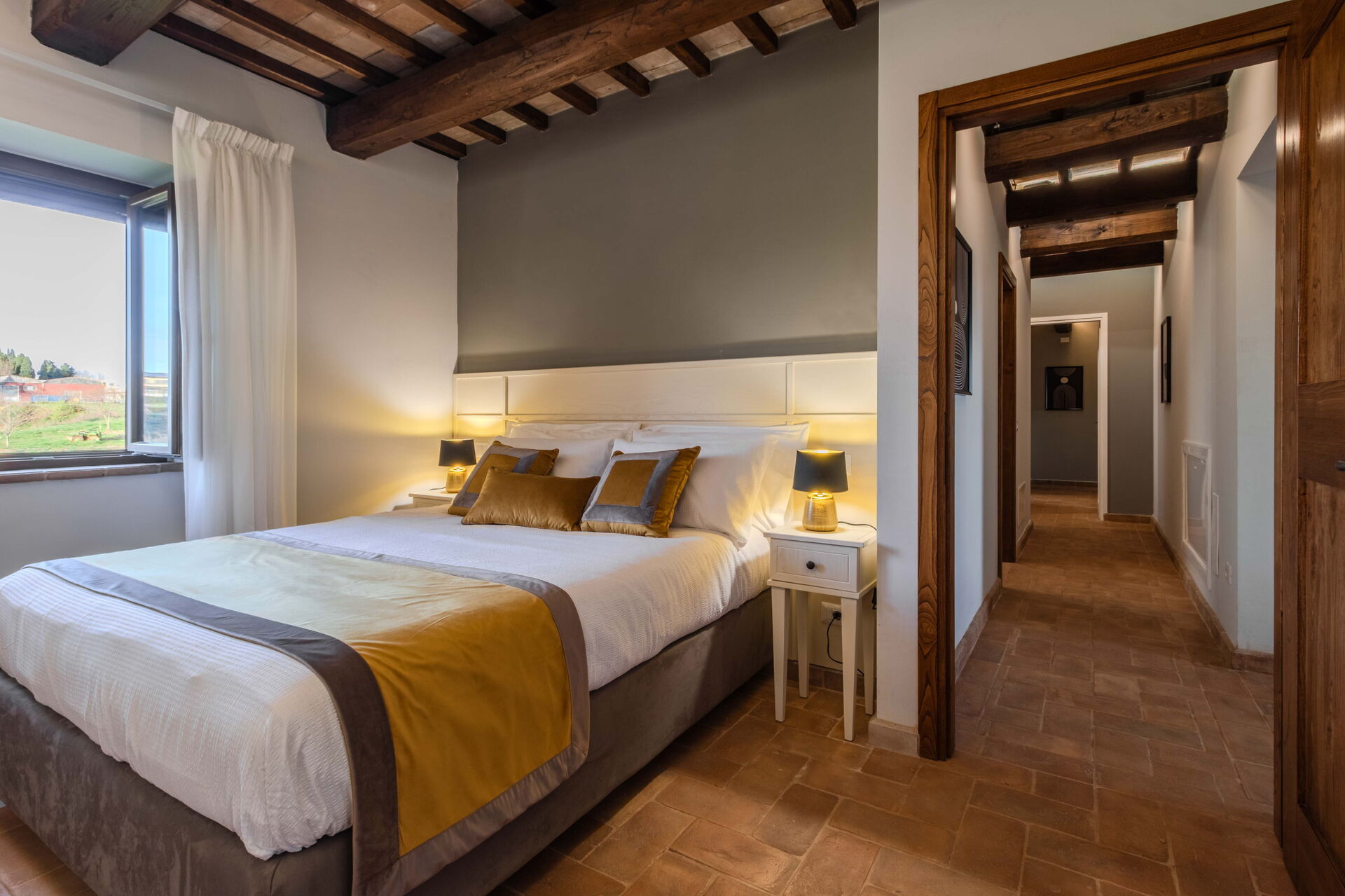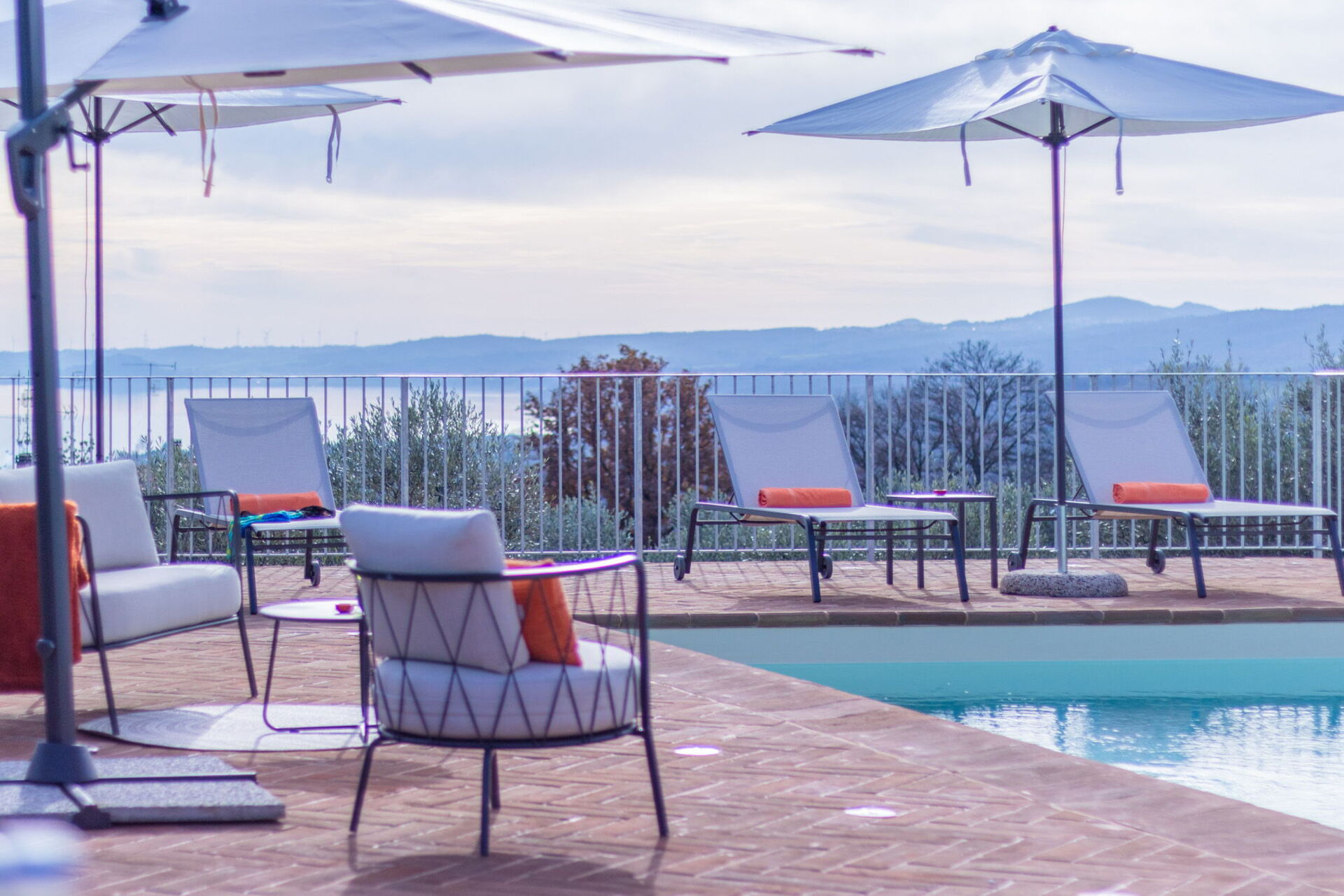 Die Zimmer sind einladend, komfortabel und ideal für einen angenehmen Urlaub in Italien. Im Außenbereich verfügt die Tenuta Poggio Guiano über einen gepflegten, ca. 2.000 Quadratmeter großen Garten mit einem wunderschönen Schwimmbad, das den Gästen exklusiv zur Verfügung steht, mit Blick auf den Bolsenasee. Das Schwimmbad befindet sich in Panoramalage und ist zusammen mit der Veranda, die zum Essen im Freien einlädt, der ideale Ort, um sonnige Sommertage zu verbringen, zu entspannen und sich in Gesellschaft von Freunden und der Familie abzukühlen.