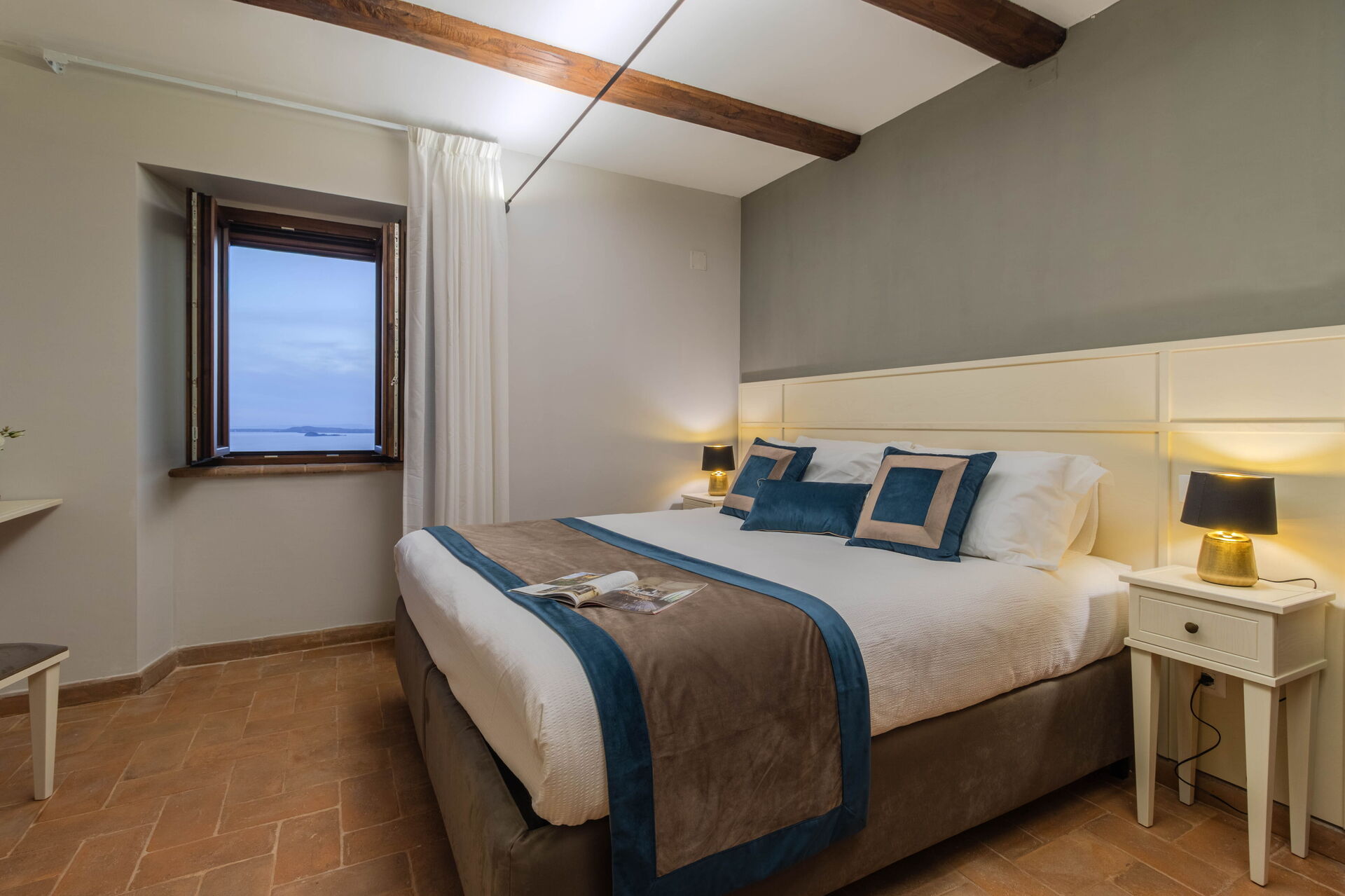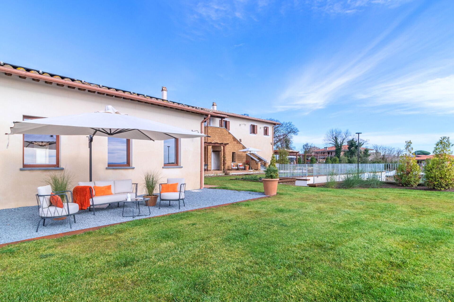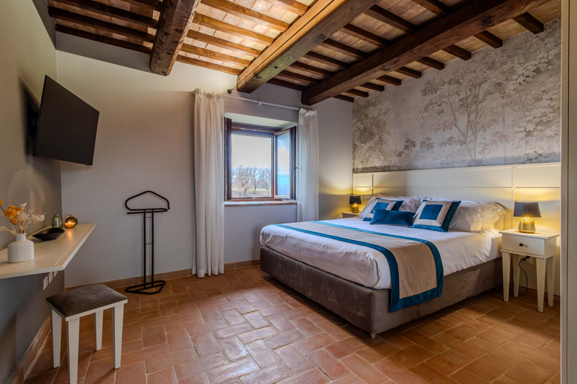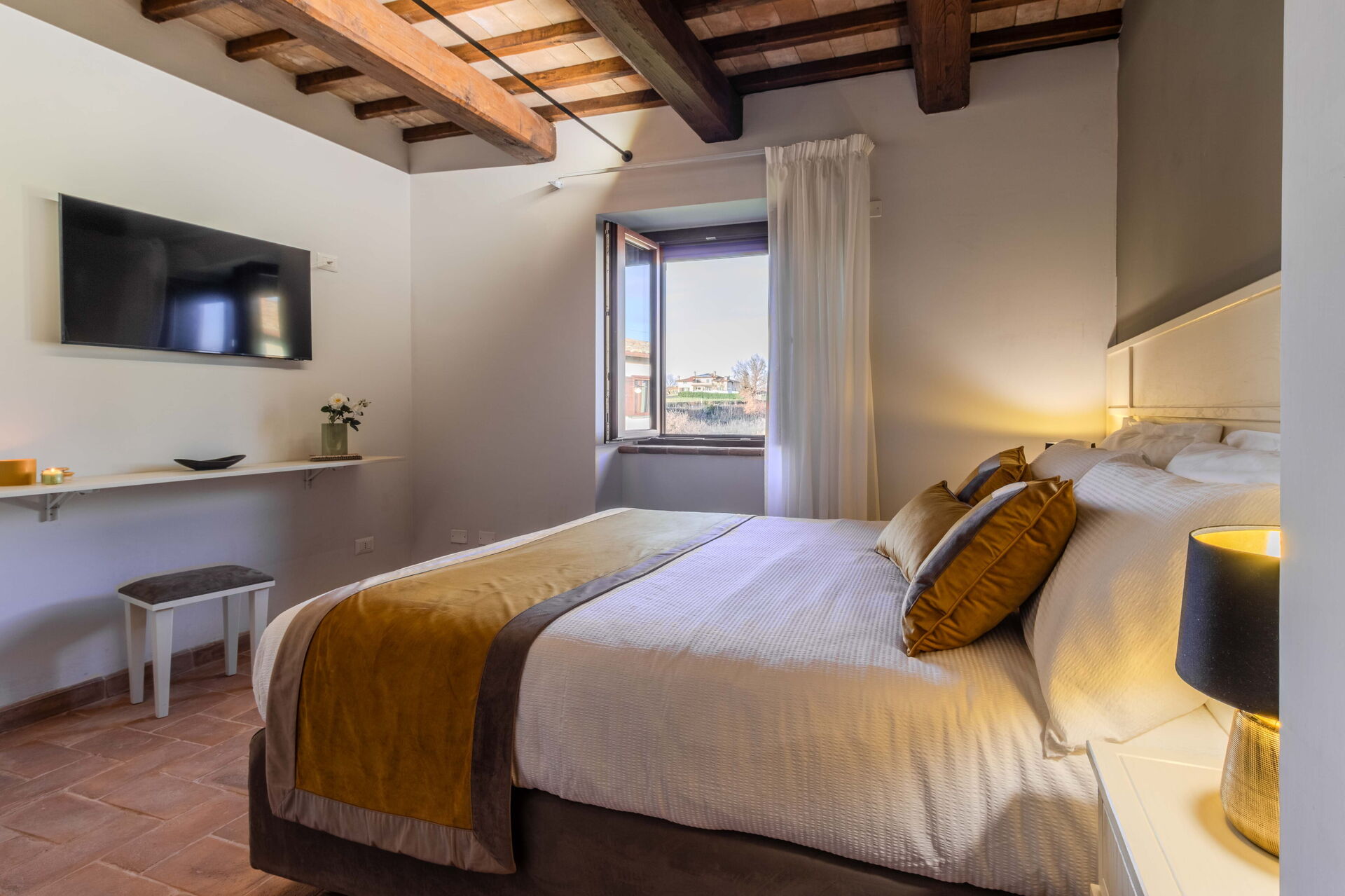 Die Zimmer sind einladend, komfortabel und ideal für einen angenehmen Urlaub in Italien. Im Außenbereich verfügt die Tenuta Poggio Guiano über einen gepflegten, ca. 2.000 Quadratmeter großen Garten mit einem wunderschönen Schwimmbad, das den Gästen exklusiv zur Verfügung steht, mit Blick auf den Bolsenasee. Das Schwimmbad befindet sich in Panoramalage und ist zusammen mit der Veranda, die zum Essen im Freien einlädt, der ideale Ort, um sonnige Sommertage zu verbringen, zu entspannen und sich in Gesellschaft von Freunden und der Familie abzukühlen.