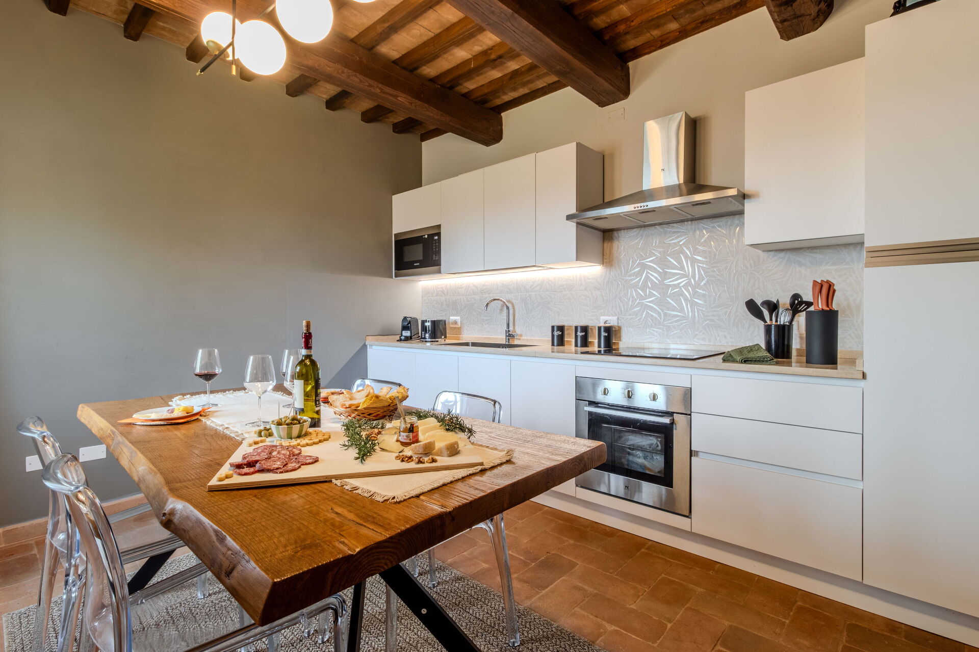 Die Tenuta Poggio Guiano besteht aus fünf separaten Wohneinheiten und einem Nebengebäude mit einem großen Wohnzimmer, ideal zum Entspannen mit Freunden. Eine voll ausgestattete Küche mit Essbereich lädt zum gemeinsamen Kochen und Essen ein. Mit seinen 10 Schlafzimmern und 7 Badezimmern bietet die Tenuta Poggio Guiano Platz für bis zu 20 Personen.