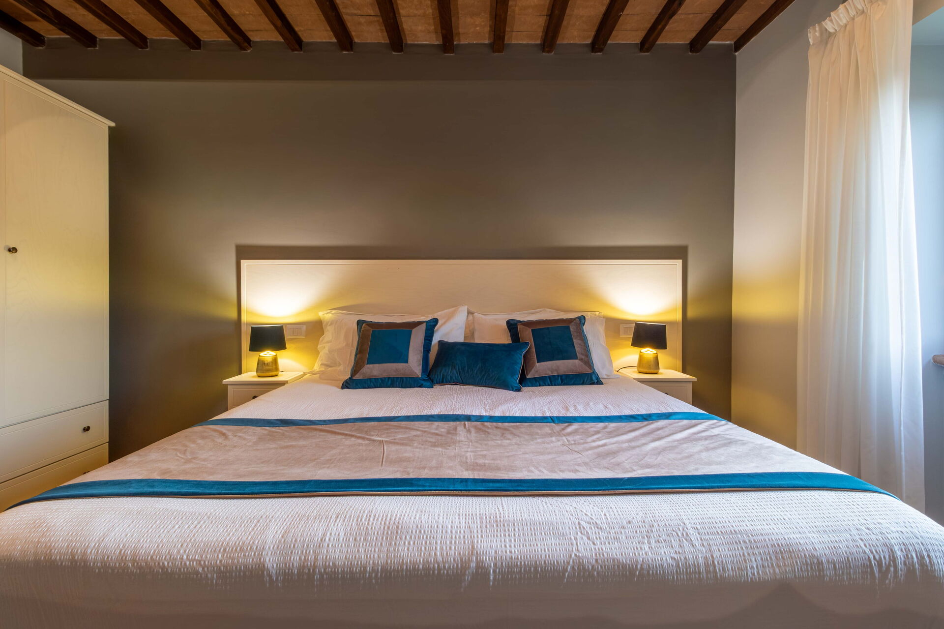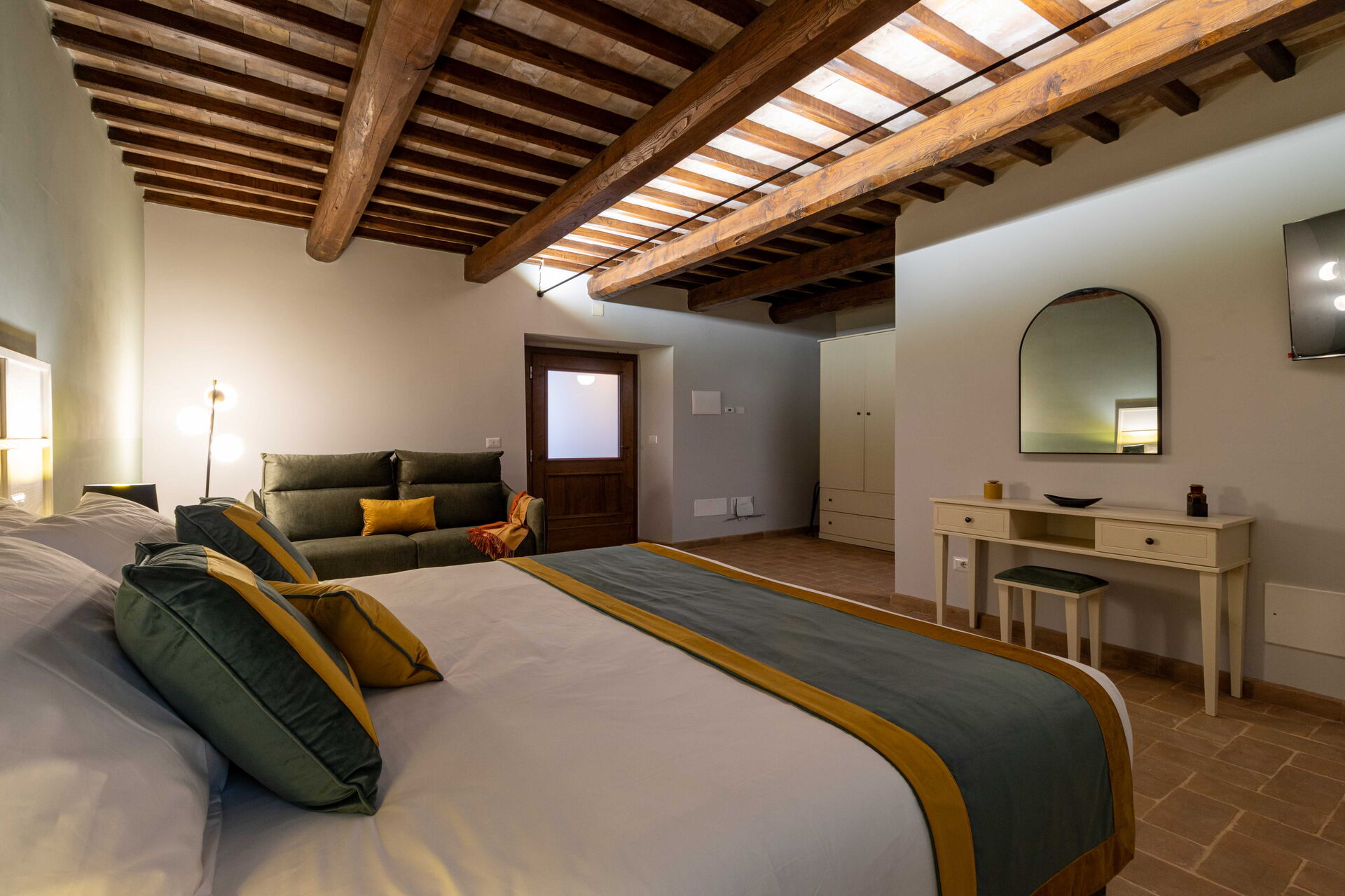 Erdgeschoss (nicht mit den anderen Wohneinheiten verbunden): Doppelzimmer (Kingsize-Bett, das auf Anfrage in zwei Einzelbetten geteilt werden kann) mit privatem Badezimmer mit ebenerdiger Dusche (ideal für Gäste mit eingeschränkter Mobilität und für Gäste mit Behinderung). Ein Doppelschlafsofa ist auf Anfrage verfügbar.
