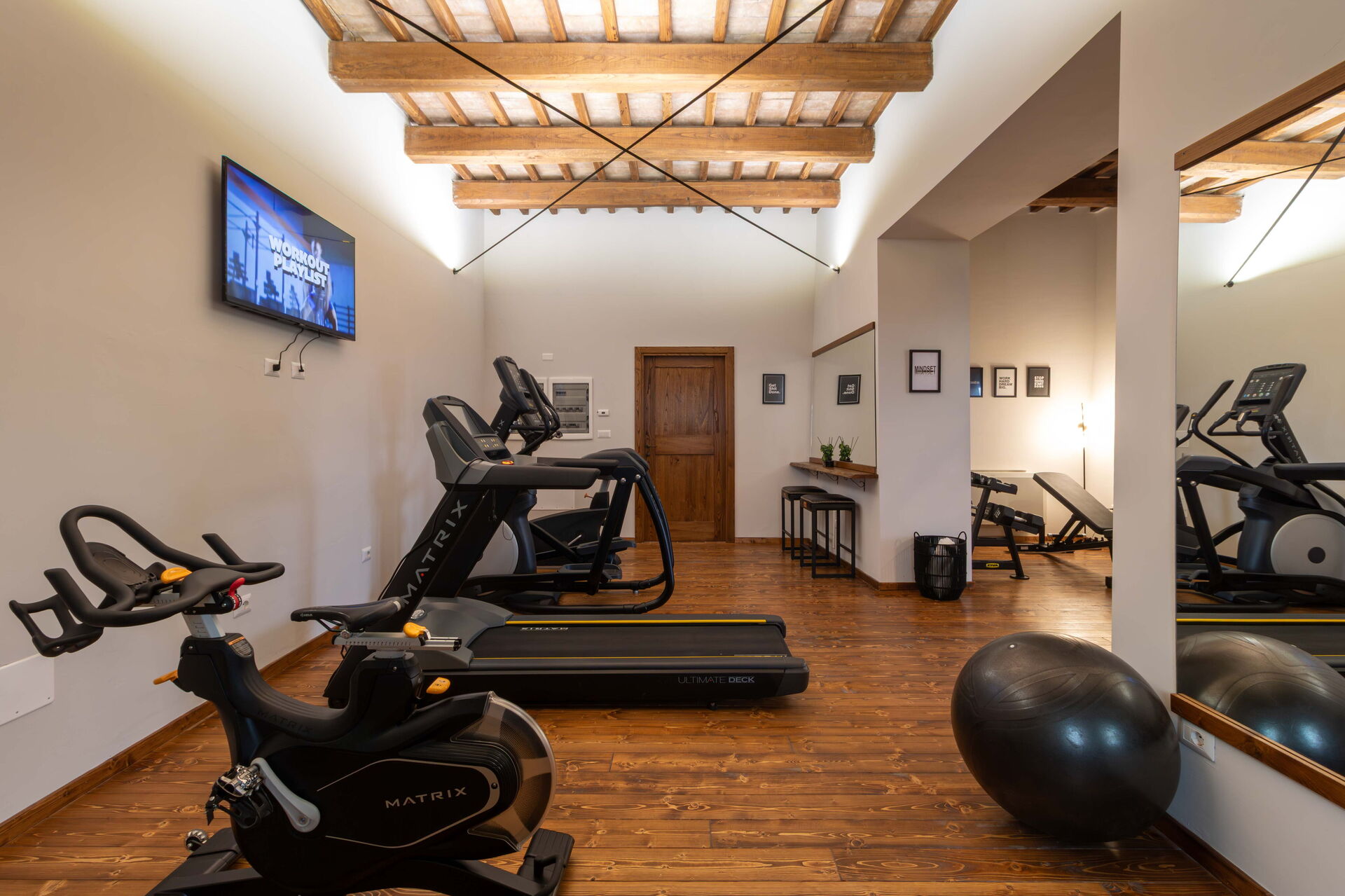 - Fitnessraum mit Fitnessgeräten, WC und Erlebnisdusche