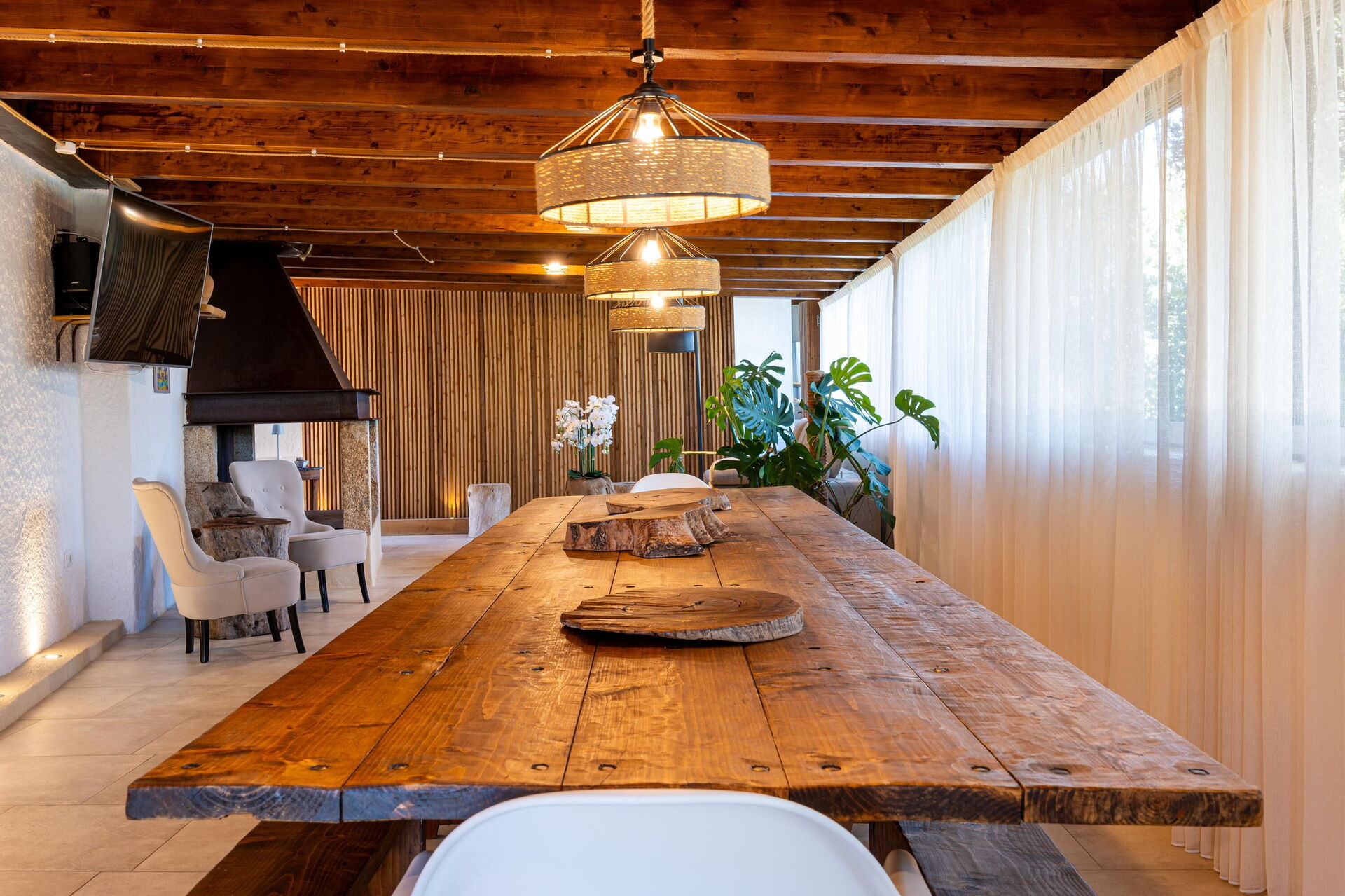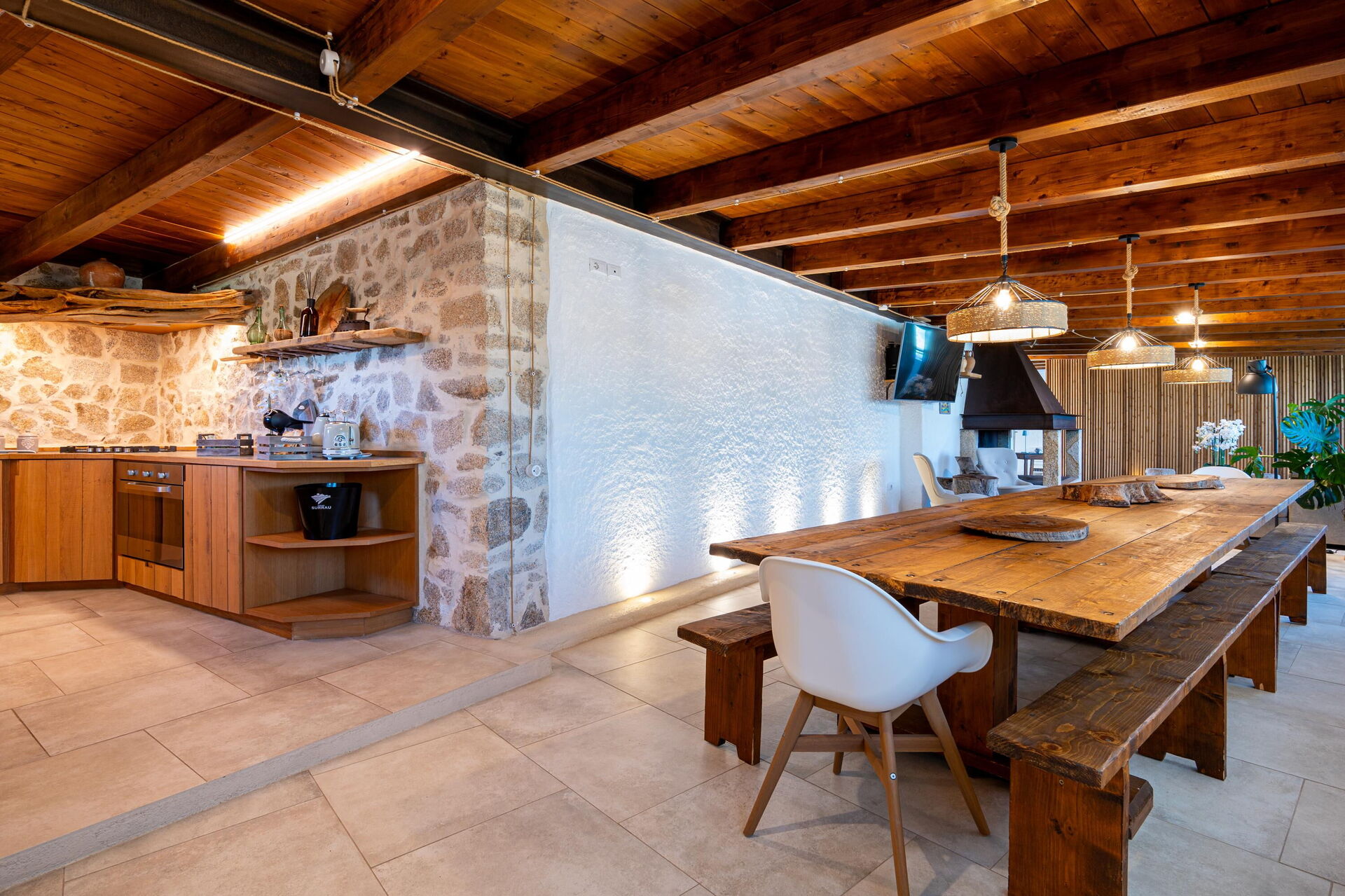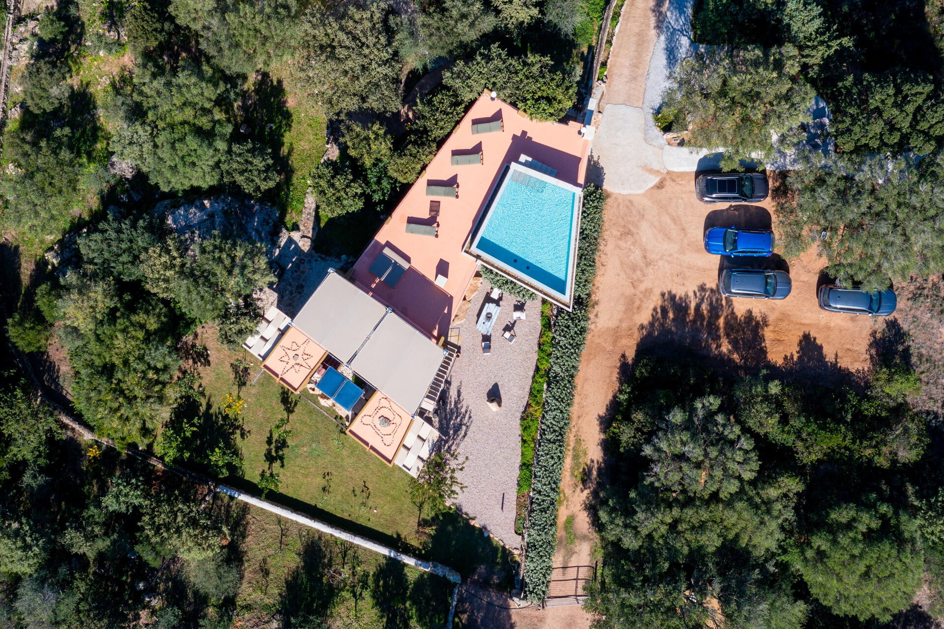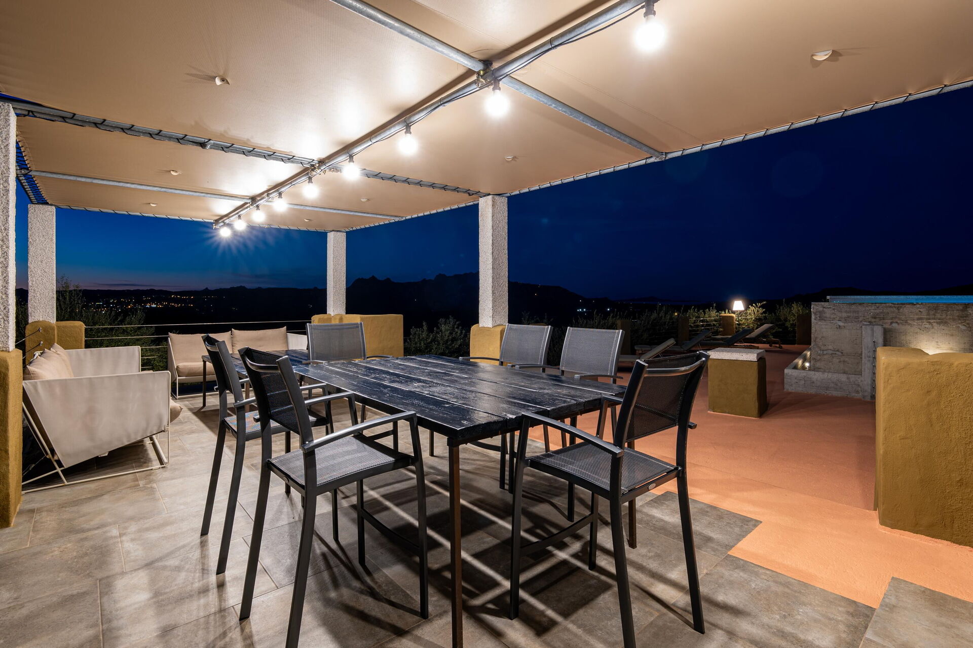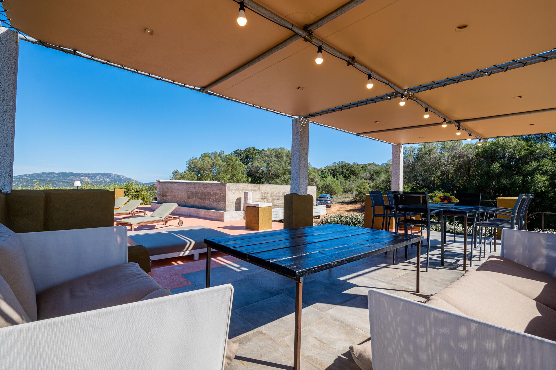 Die Panorama-Außenbereiche bieten zahlreiche Gemeinschaftsbereiche, die die Stärke des Anwesens darstellen: Es wurde beschlossen, das Schwimmbad auf der Terrasse im ersten Stock zu positionieren, um einen schönen Blick auf die umliegende Landschaft bis hin zum Meer zu haben; Auf der Terrasse hat man die Möglichkeit, sich auf der großen Sonnenterrasse zu entspannen und im Freien unter dem großen Pavillon zu essen.