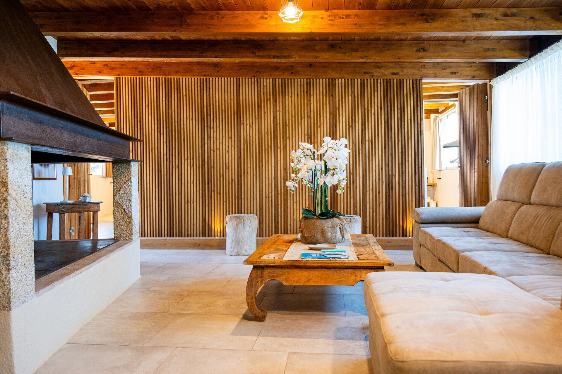 Erdgeschoss: Wohnzimmer mit Kamin und Essbereich, Küche (Herd, Backofen, Kühlschrank, Gefrierschrank, Geschirrspüler, Mikrowelle, Espressomaschine), Doppelzimmer (Klimaanlage) mit privatem Bad mit Dusche, Doppelzimmer (Klimaanlage), 2 Badezimmer mit Dusche.