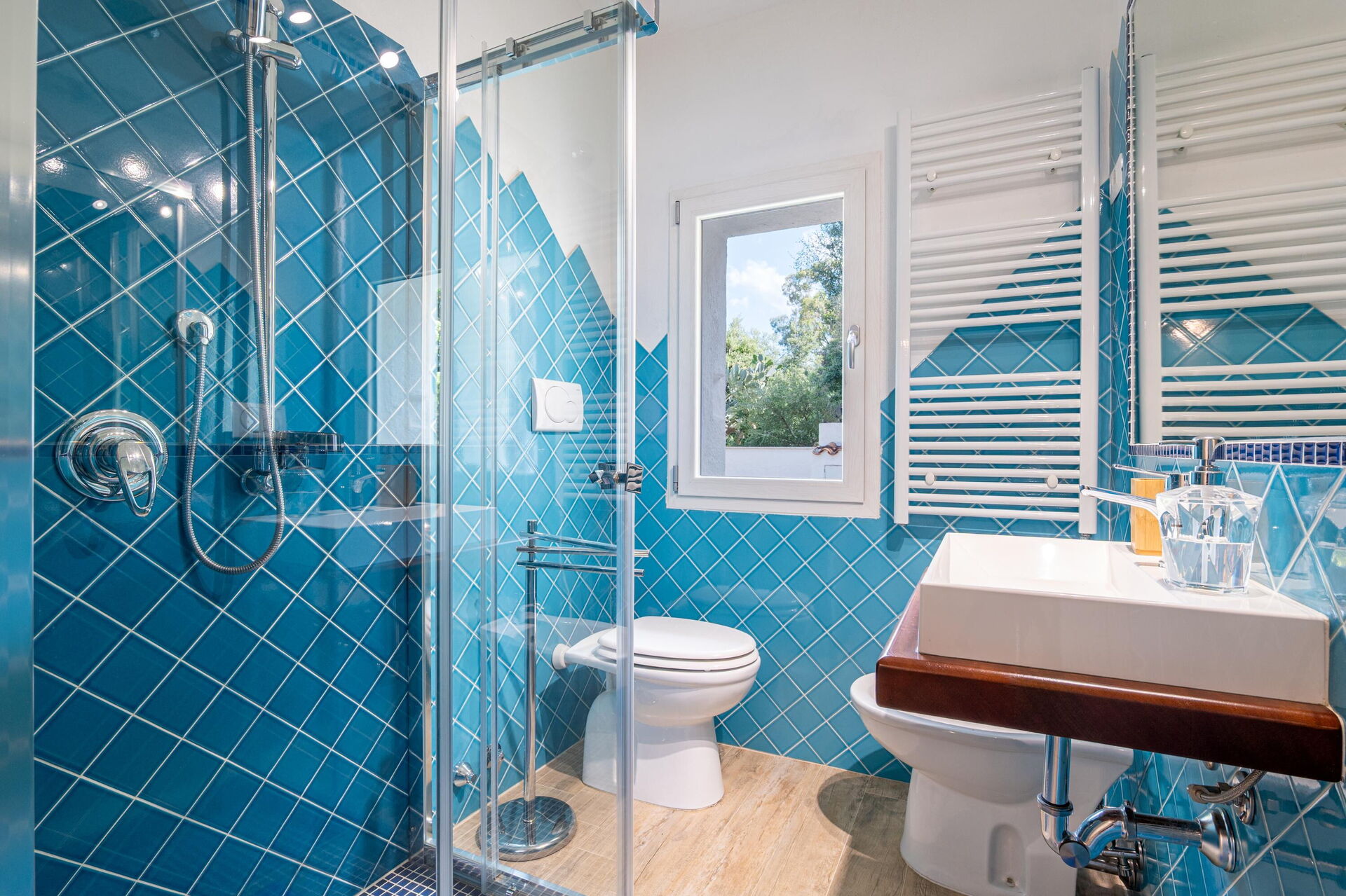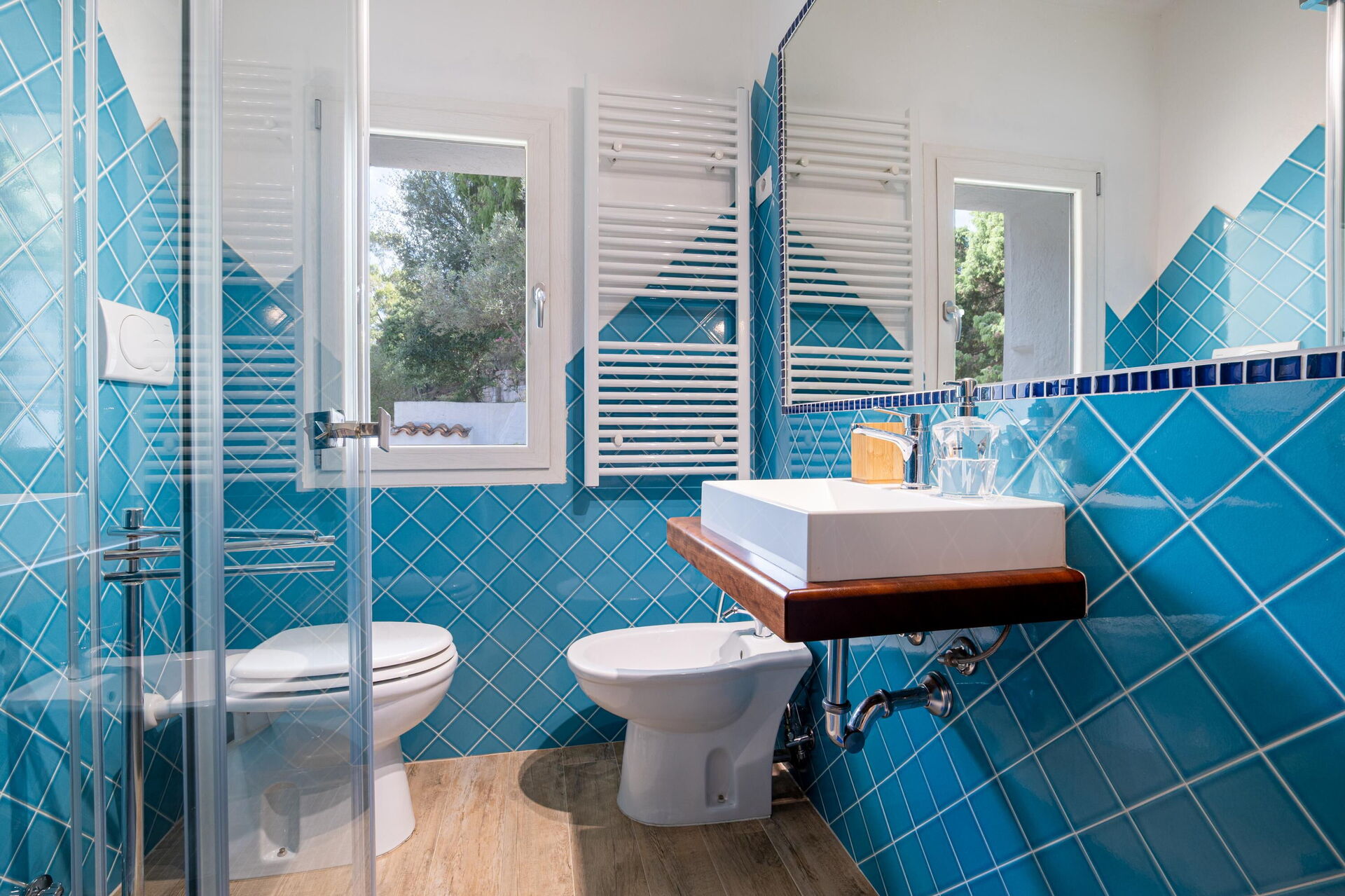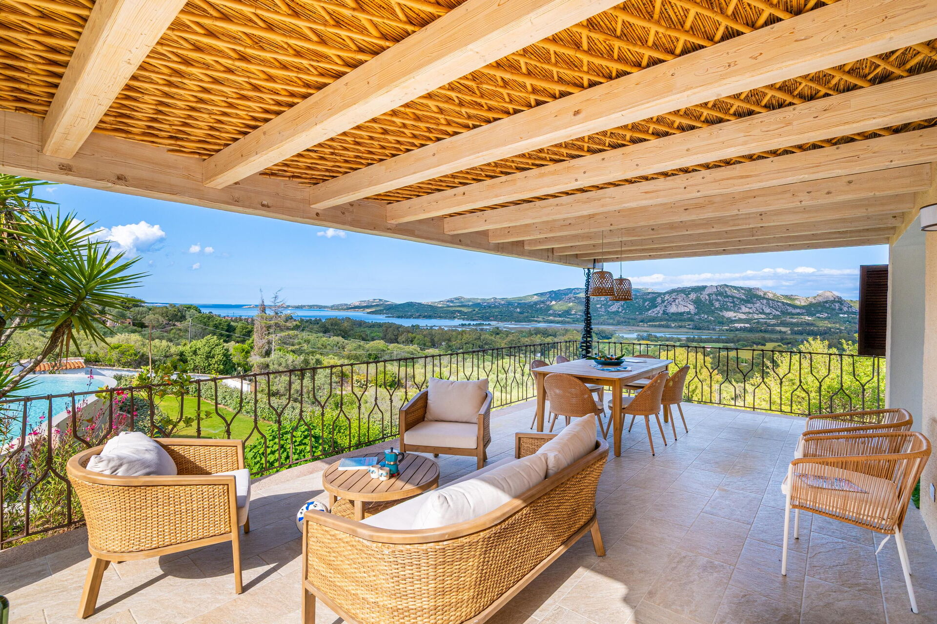 Die weitläufigen Außenbereiche bieten zahlreiche Möglichkeiten, einen angenehmen Aufenthalt mit der Familie oder Freunden zu genießen. Die Gäste können sich auf der Terrasse mit Essbereich im Freien oder am großen Schwimmbad mit Meerblick entspannen – ideal für unvergessliche Momente unter der sardischen Sonne.
