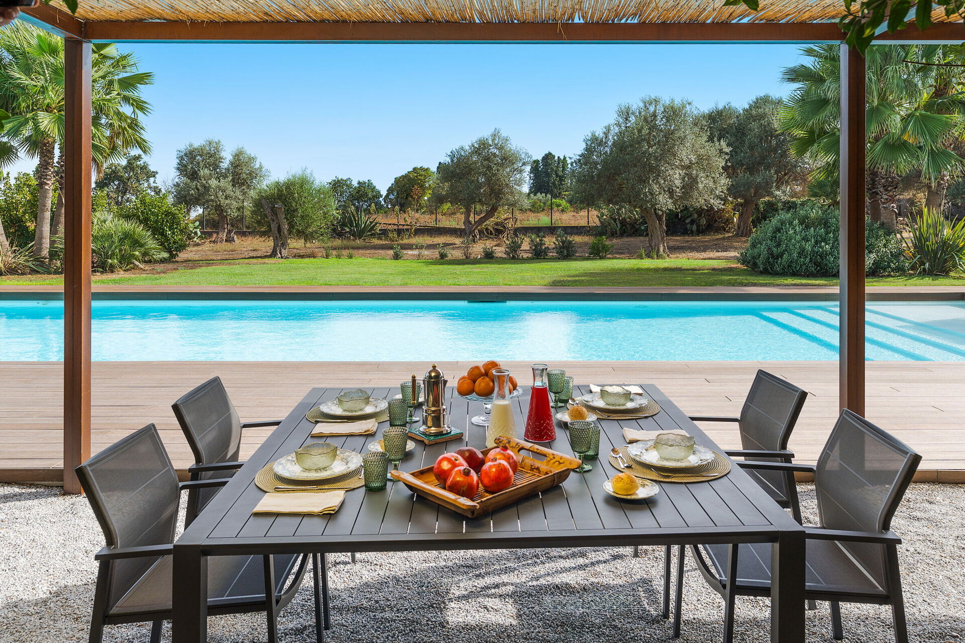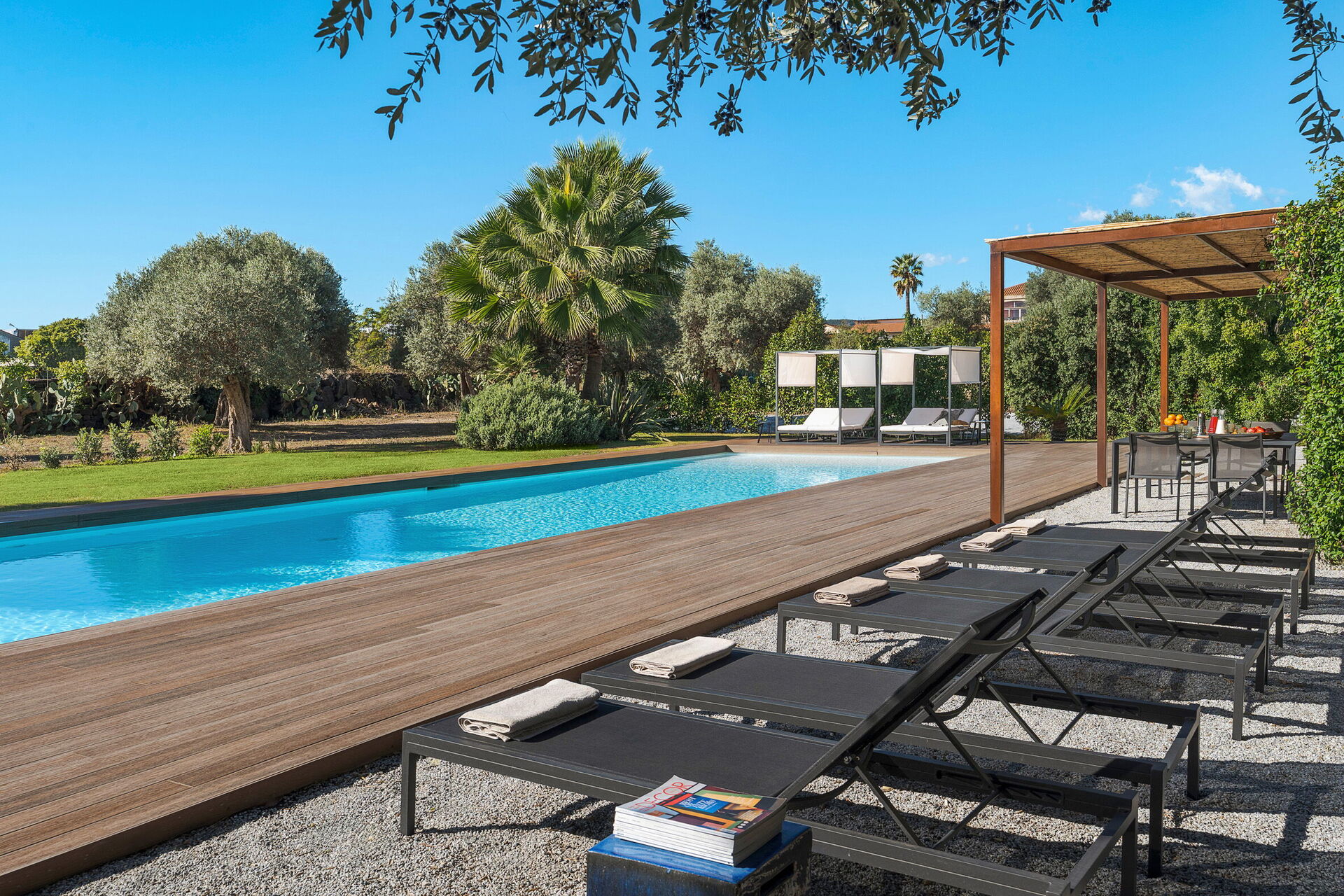 Die Schönheit von Muna Retreat setzt sich im Außenbereich fort: Der wunderschöne Garten mit typisch sizilianischen Pflanzen bietet ein großes privates Salzwasserschwimmbad. Die Liegen und Sonnenschirme am Schwimmbad laden zum Entspannen ein und bieten den Gästen die Möglichkeit, die Düfte und die Sonne Siziliens zu genießen.