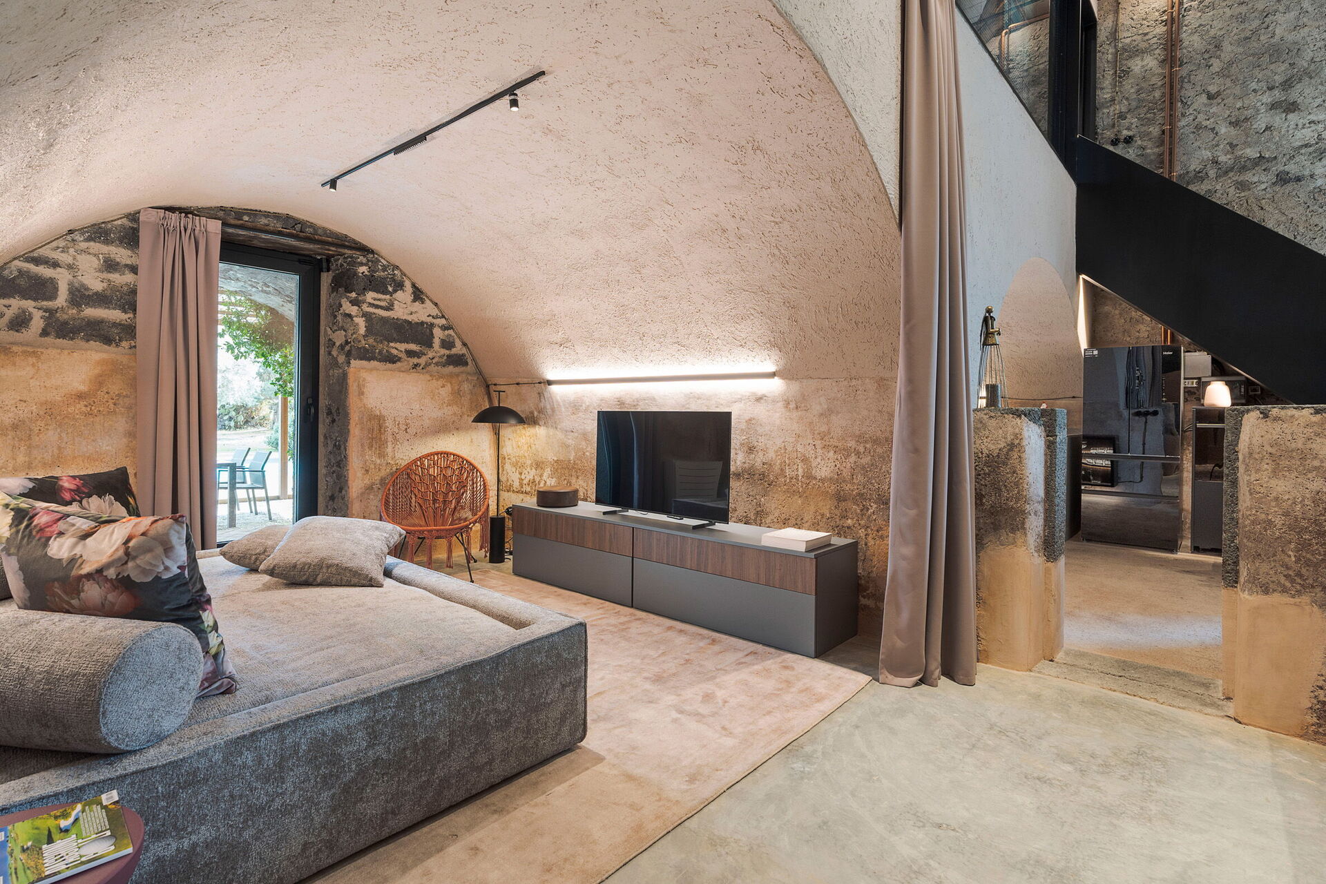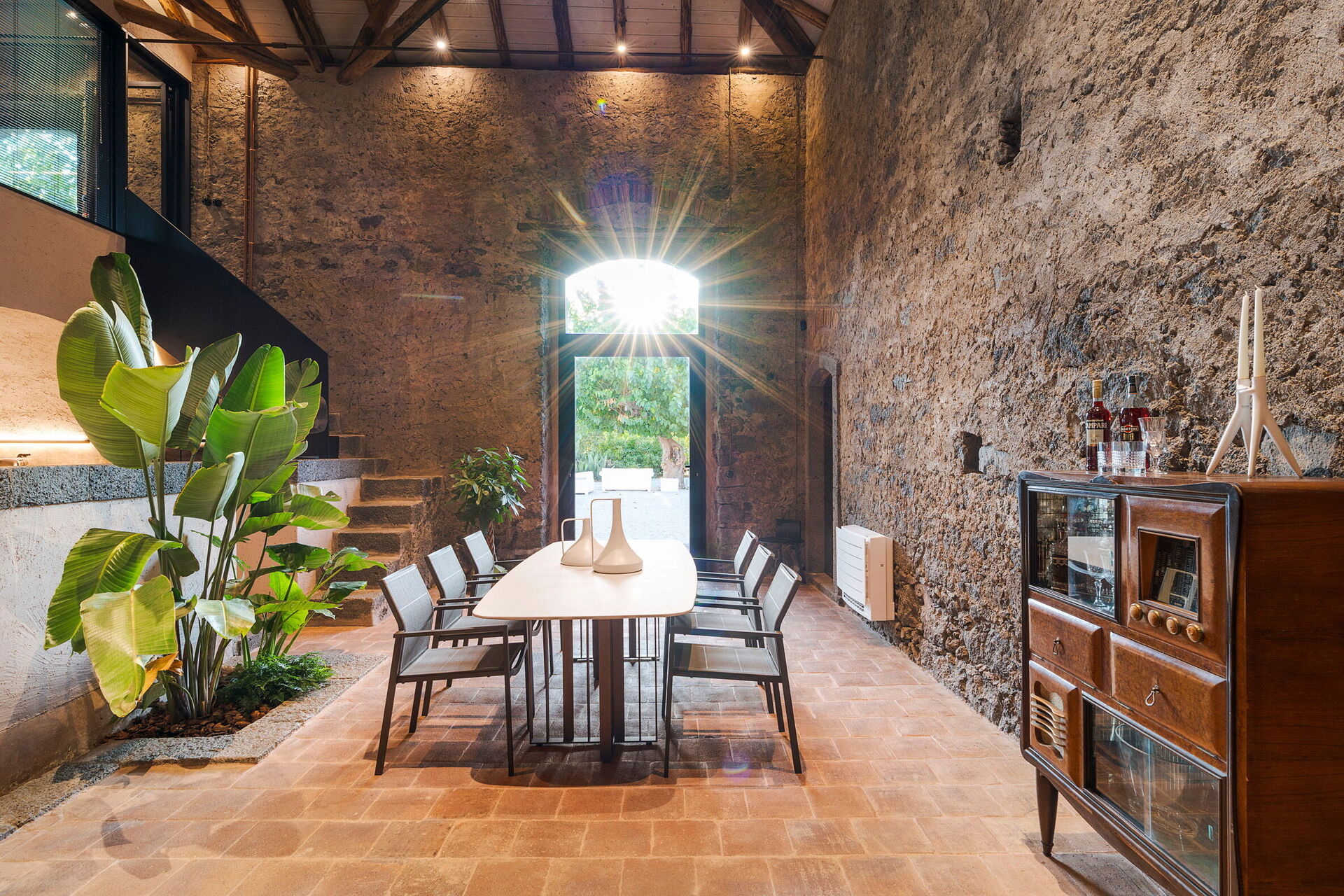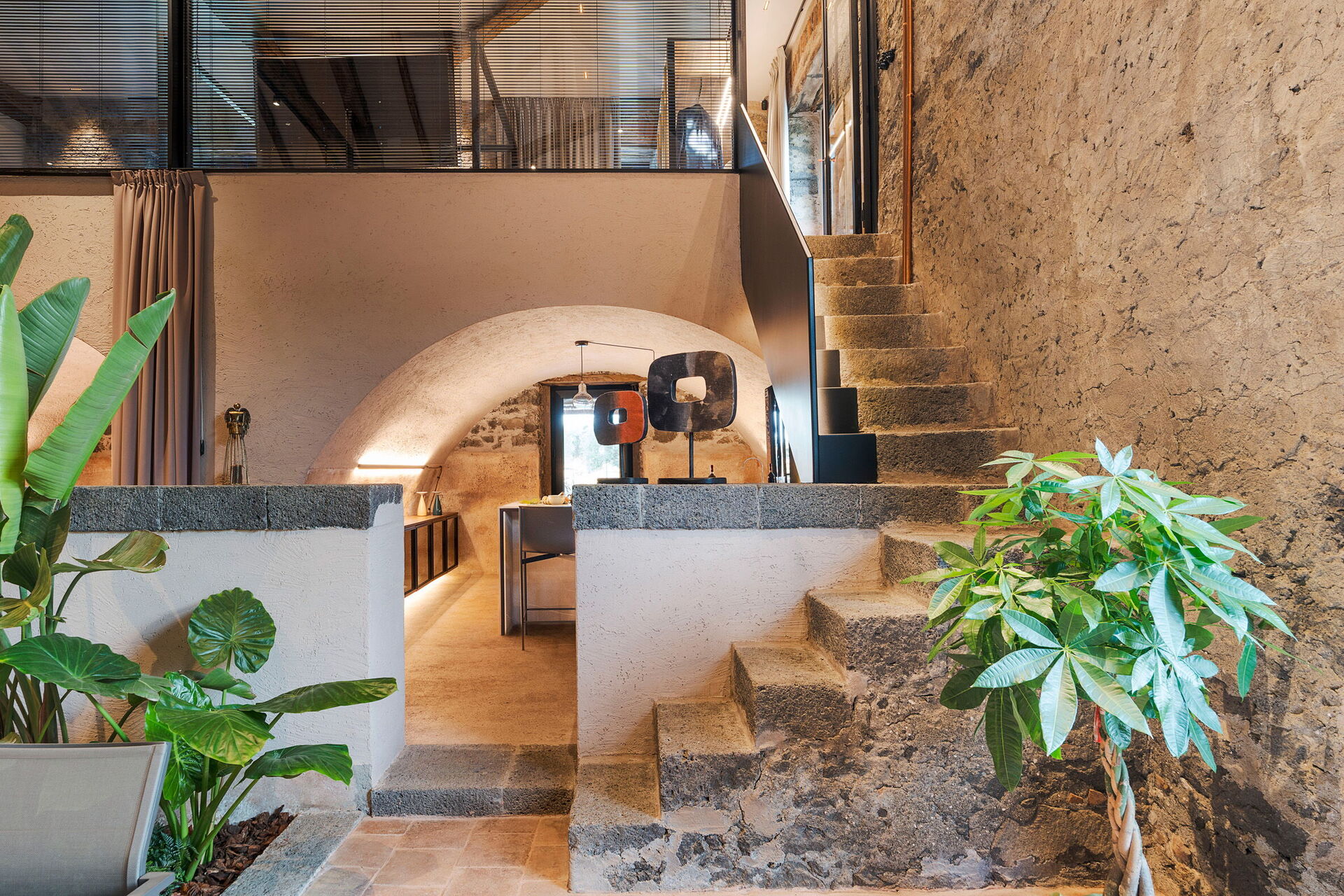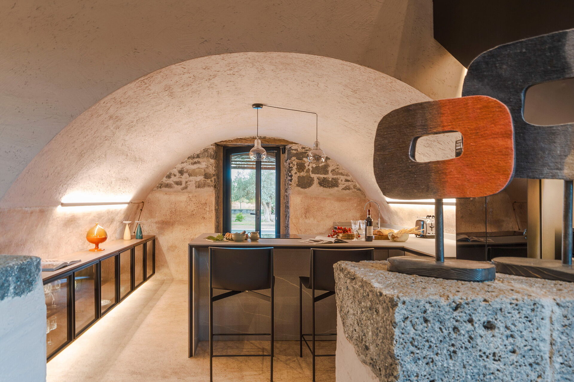 Das typische Landhaus wurde fachmännisch renoviert und in ein exklusives Ferienhaus umgewandelt. Die Restaurierung bewahrte die ursprüngliche Struktur und verbindet sie mit einem modernen, funktionalen Stil. Damit ist Muna Retreat die perfekte Wahl für einen Urlaub in Sizilien. Mit drei Schlafzimmern (eines davon auf einer hellen Galerie) bietet es bequem Platz für bis zu sechs Personen. Die Innenräume sind charmant und geschmackvoll mit viel Liebe zum Detail eingerichtet. Grauer Stein und Holz prägen die gesamte Gestaltung von Innen- und Außenbereich. Traditionelle sizilianische Architektur findet man überall wieder: Balkendecken, Steintreppen und große Backsteinbögen, die die Wände zieren oder die verschiedenen Bereiche voneinander trennen.