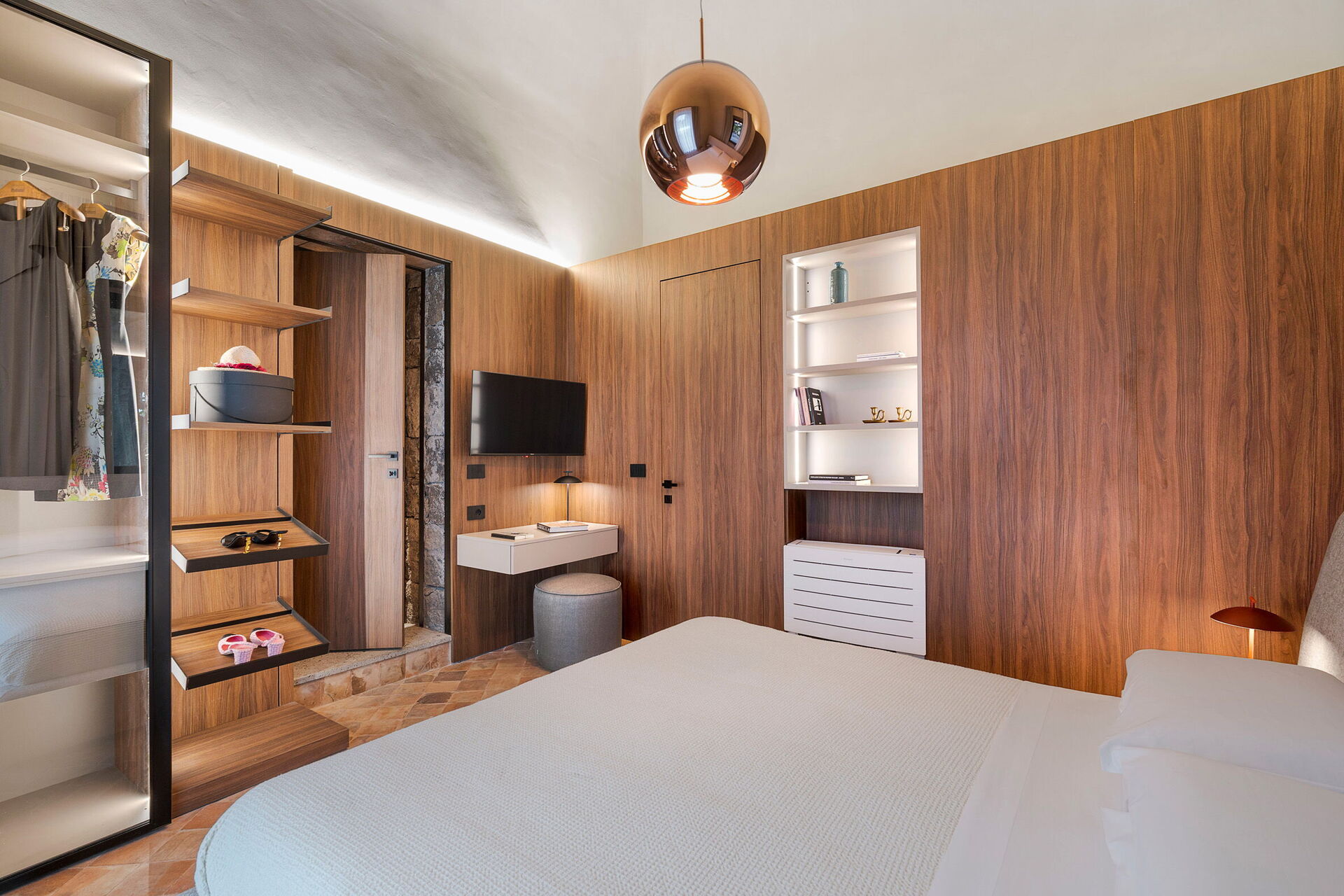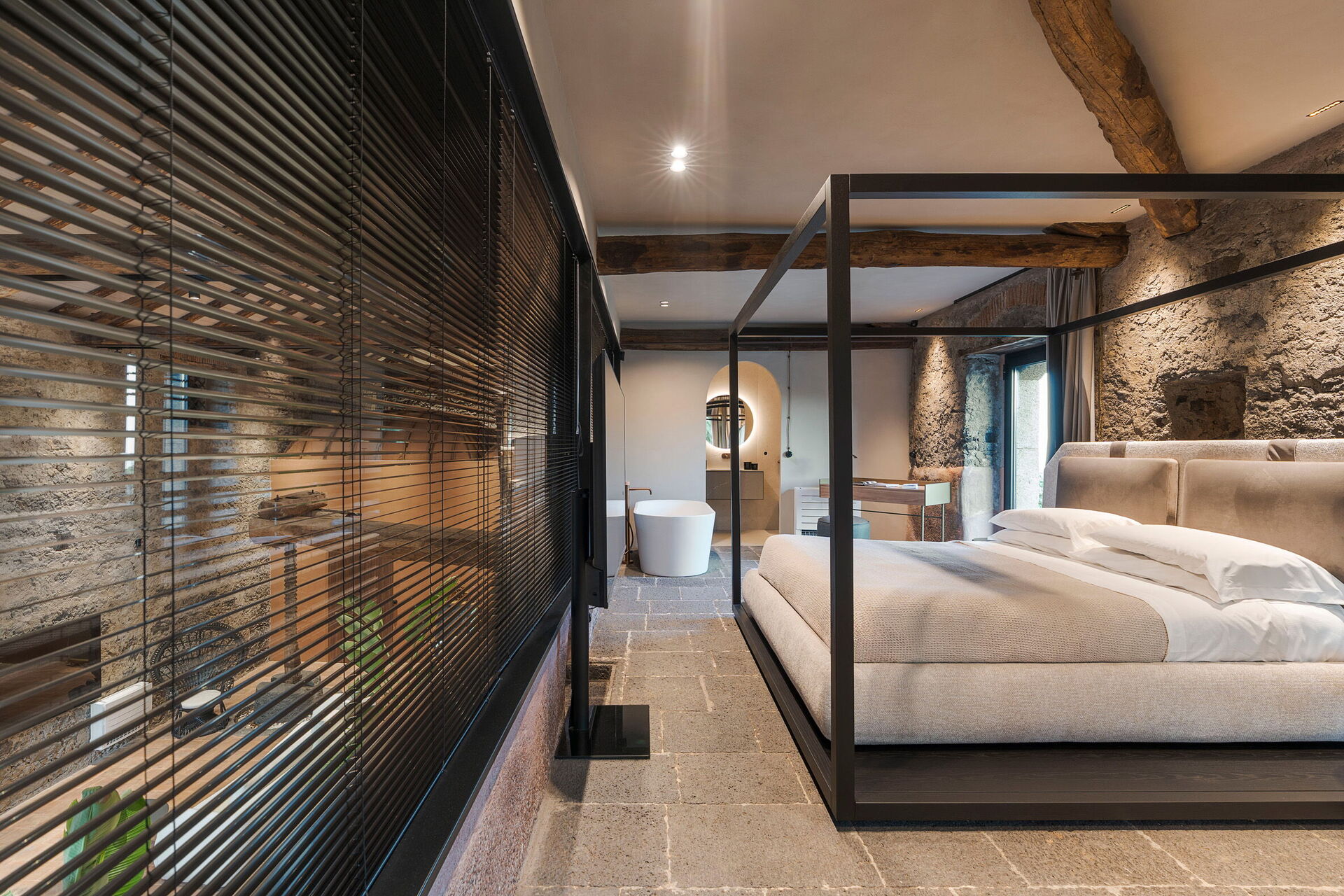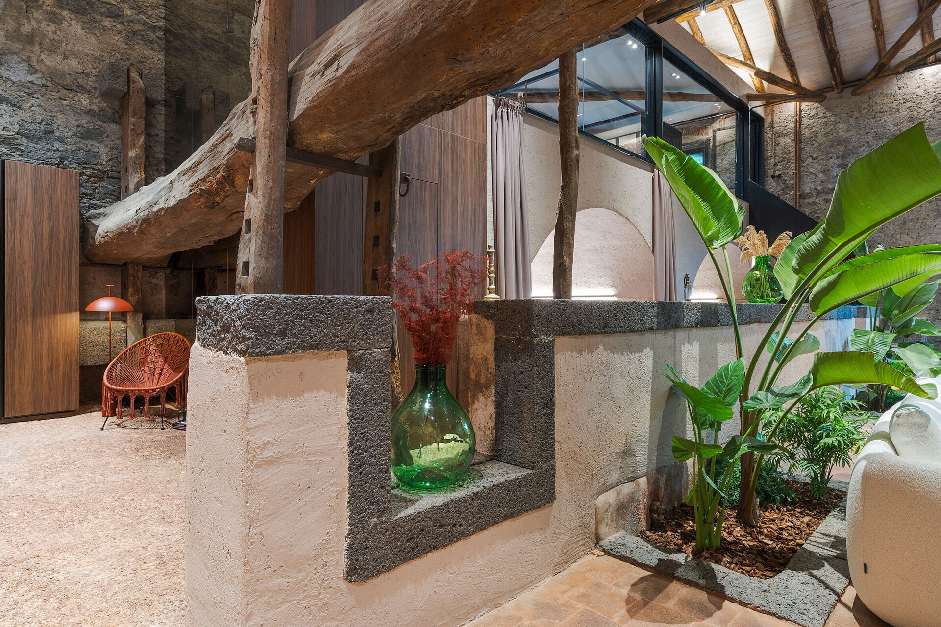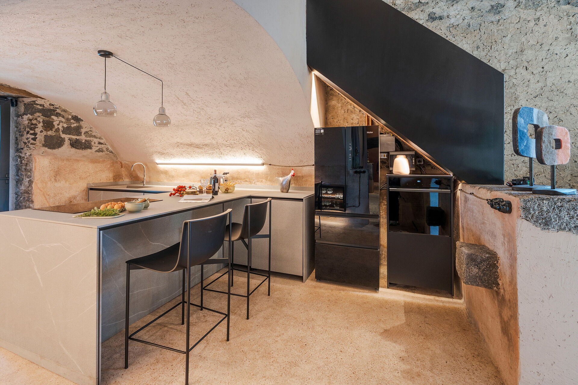 Das typische Landhaus wurde fachmännisch renoviert und in ein exklusives Ferienhaus umgewandelt. Die Restaurierung bewahrte die ursprüngliche Struktur und verbindet sie mit einem modernen, funktionalen Stil. Damit ist Muna Retreat die perfekte Wahl für einen Urlaub in Sizilien. Mit drei Schlafzimmern (eines davon auf einer hellen Galerie) bietet es bequem Platz für bis zu sechs Personen. Die Innenräume sind charmant und geschmackvoll mit viel Liebe zum Detail eingerichtet. Grauer Stein und Holz prägen die gesamte Gestaltung von Innen- und Außenbereich. Traditionelle sizilianische Architektur findet man überall wieder: Balkendecken, Steintreppen und große Backsteinbögen, die die Wände zieren oder die verschiedenen Bereiche voneinander trennen.